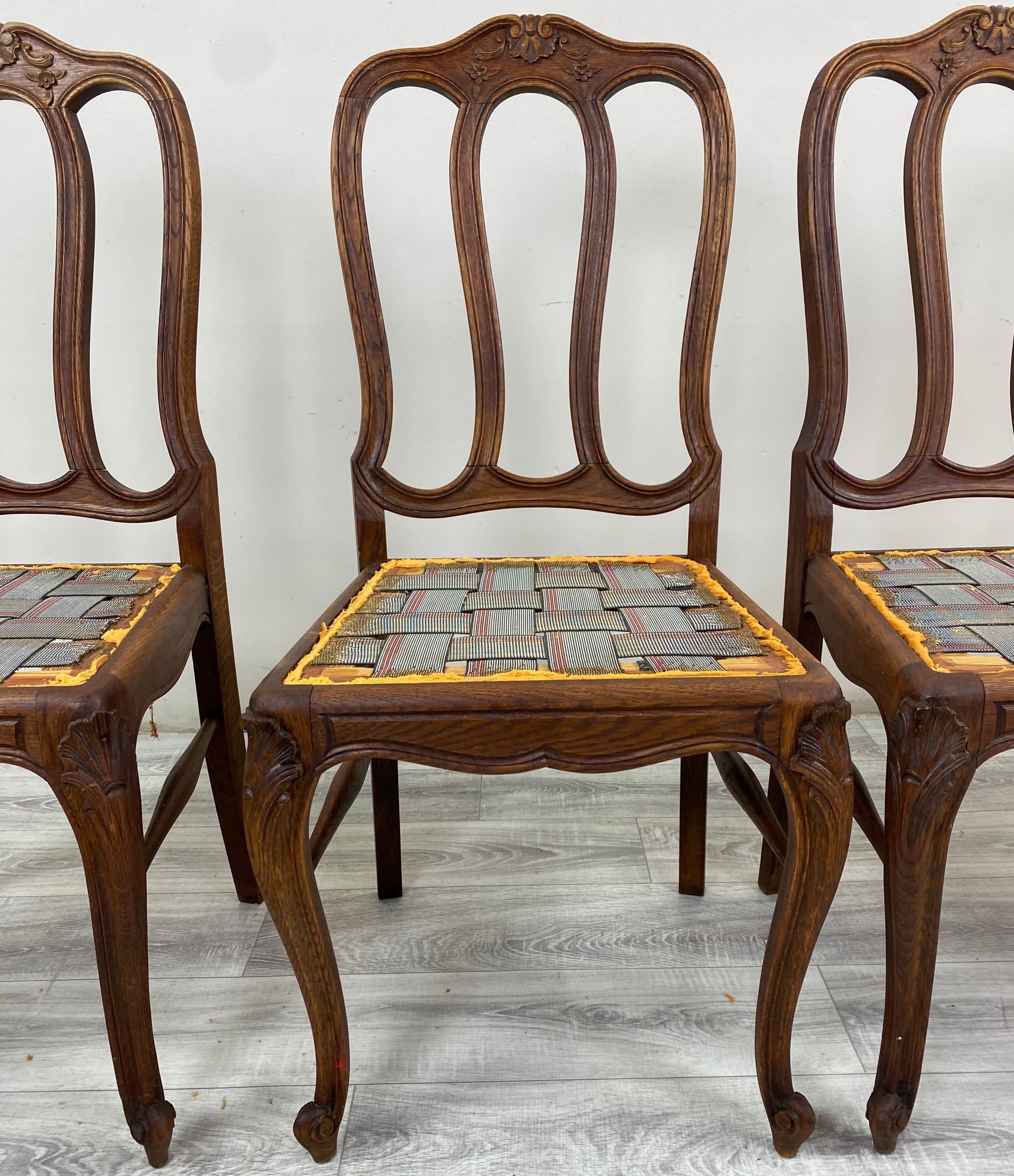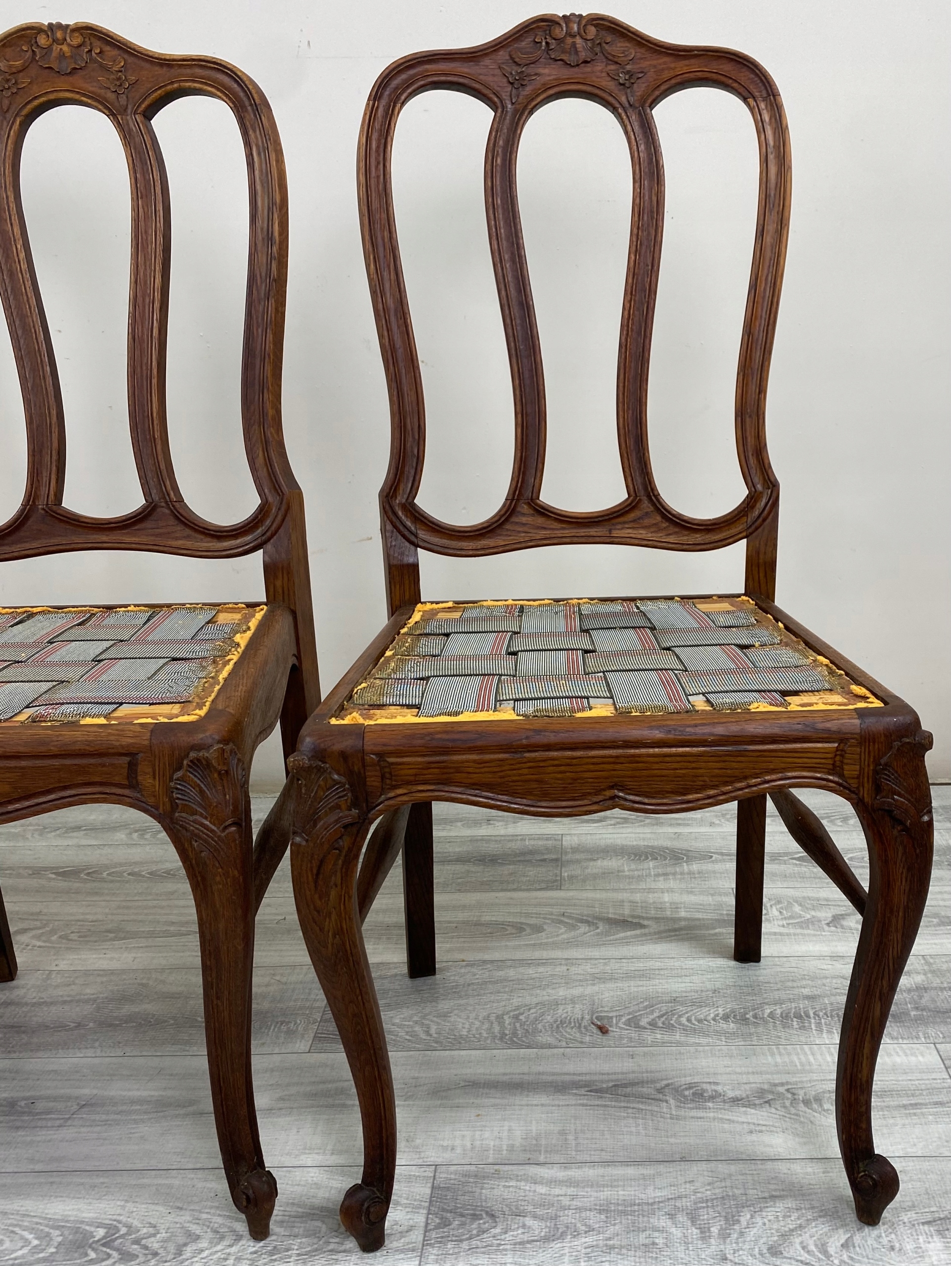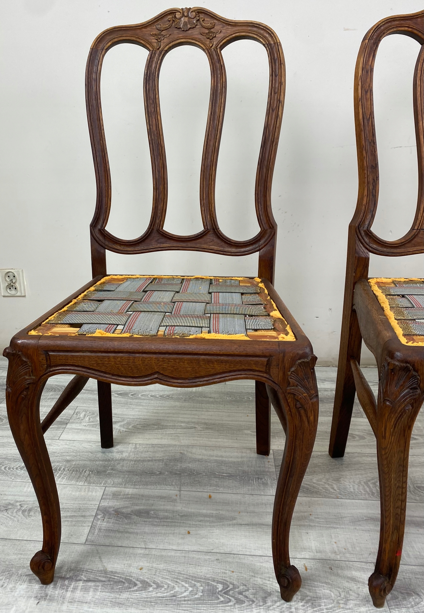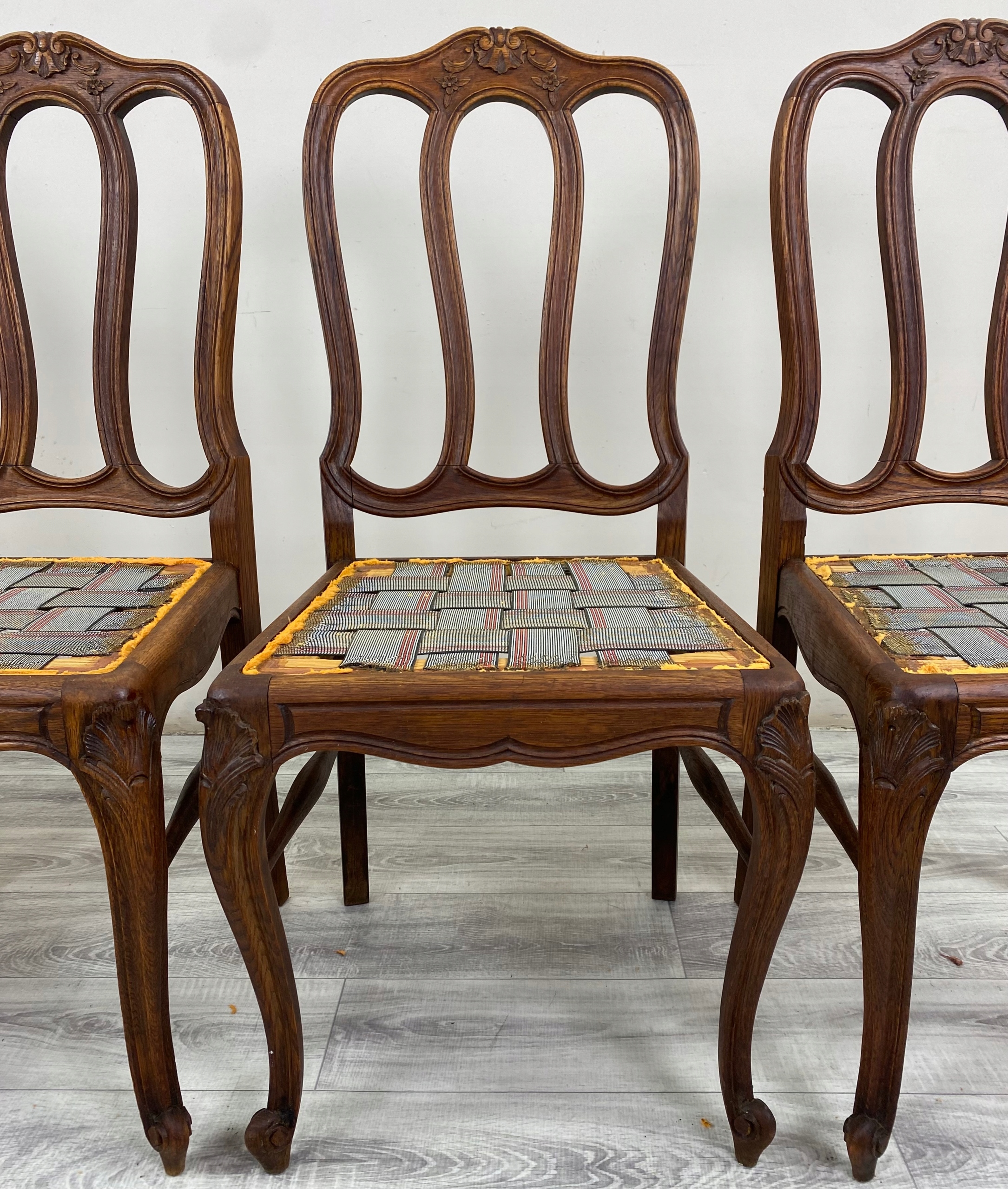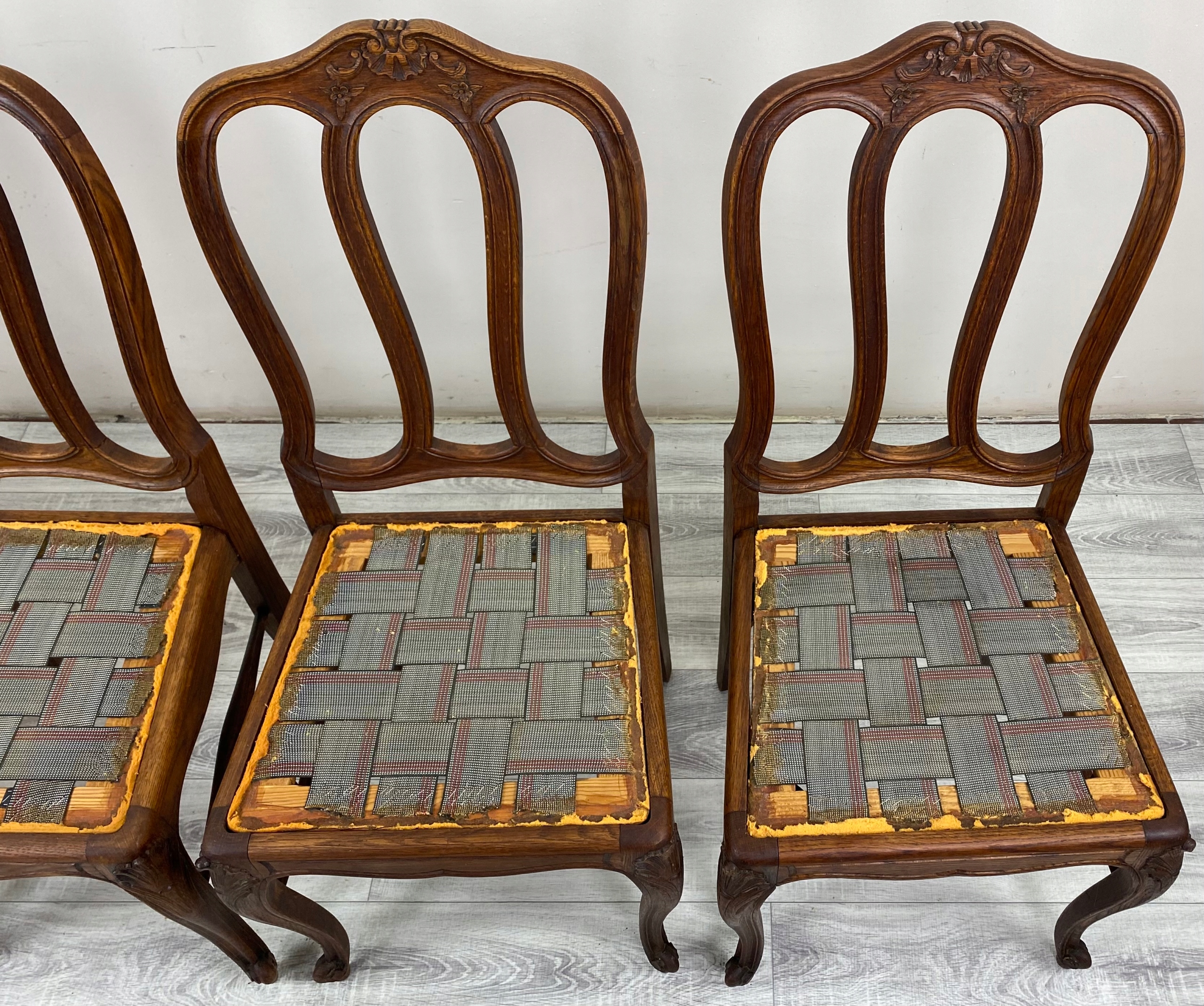 Стулья имеют элегантный декоративный характер — отлично подходят для ремонта и замены обивки. После ремонта могут выглядеть очень стильно в классическом или эклектичном интерьере.