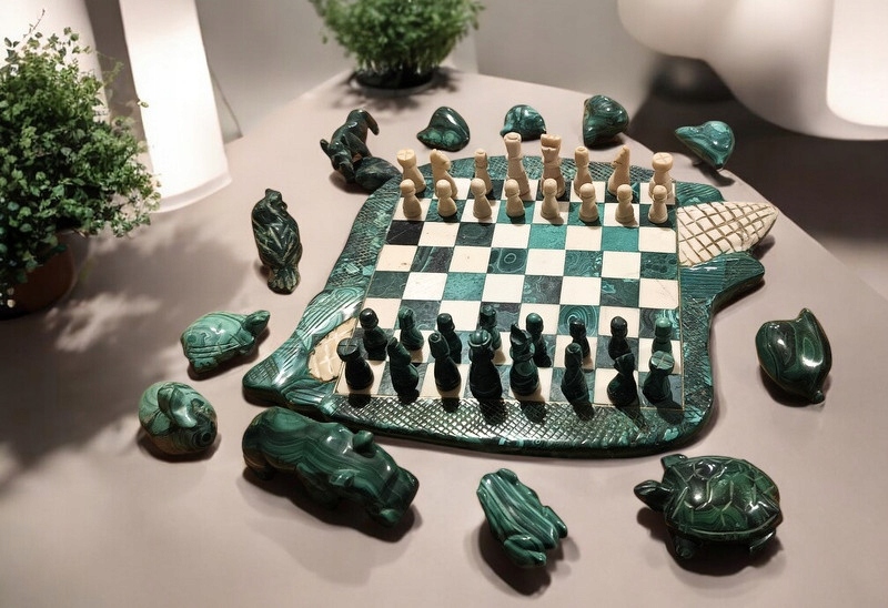 Стильные мраморные шахматы на мраморной доске + животные в классе