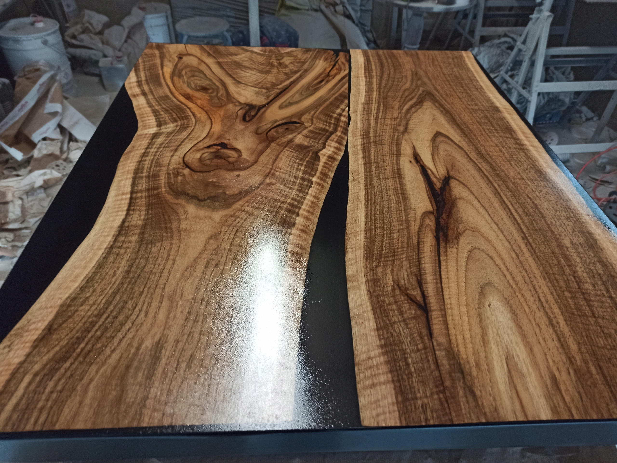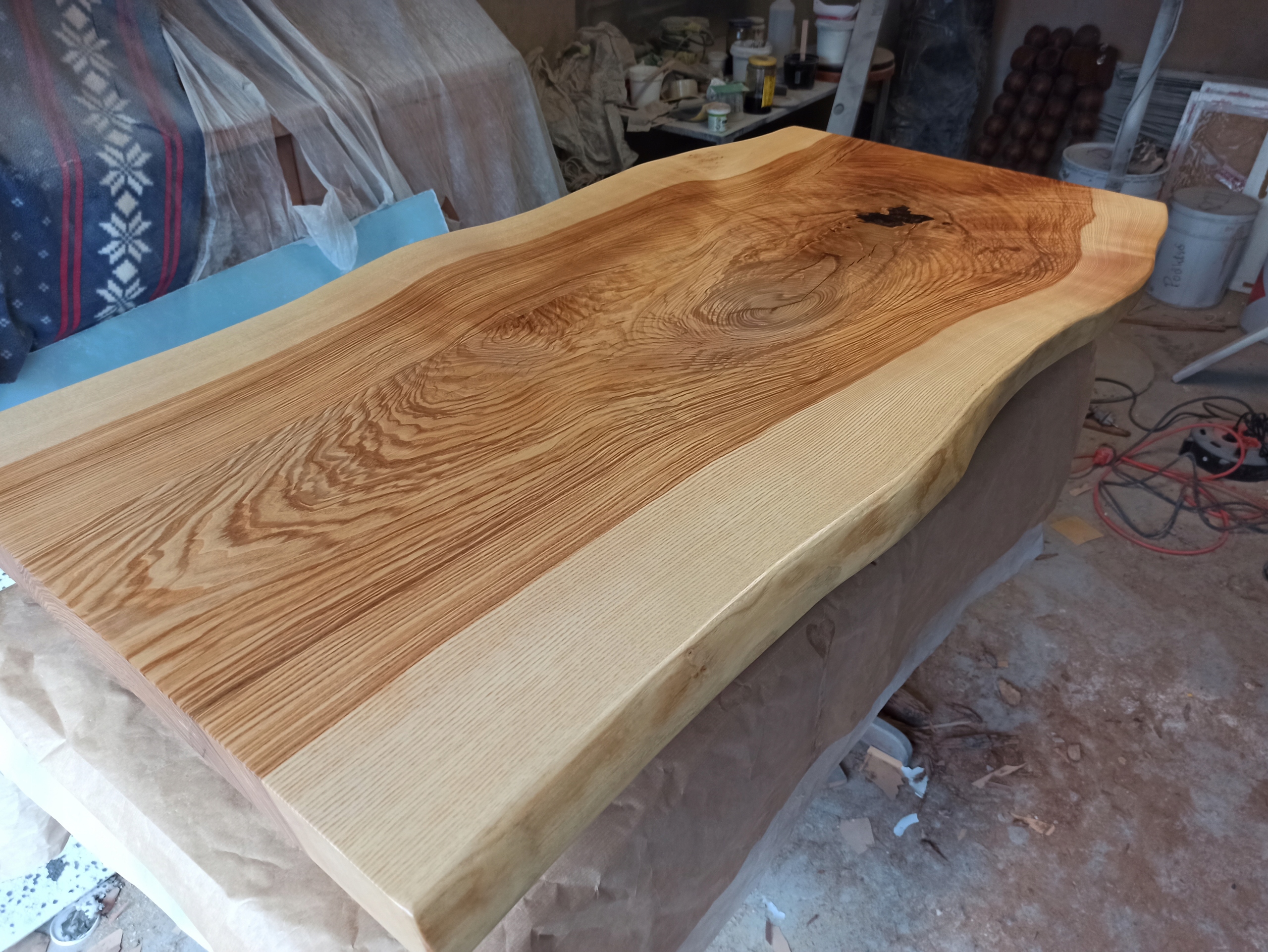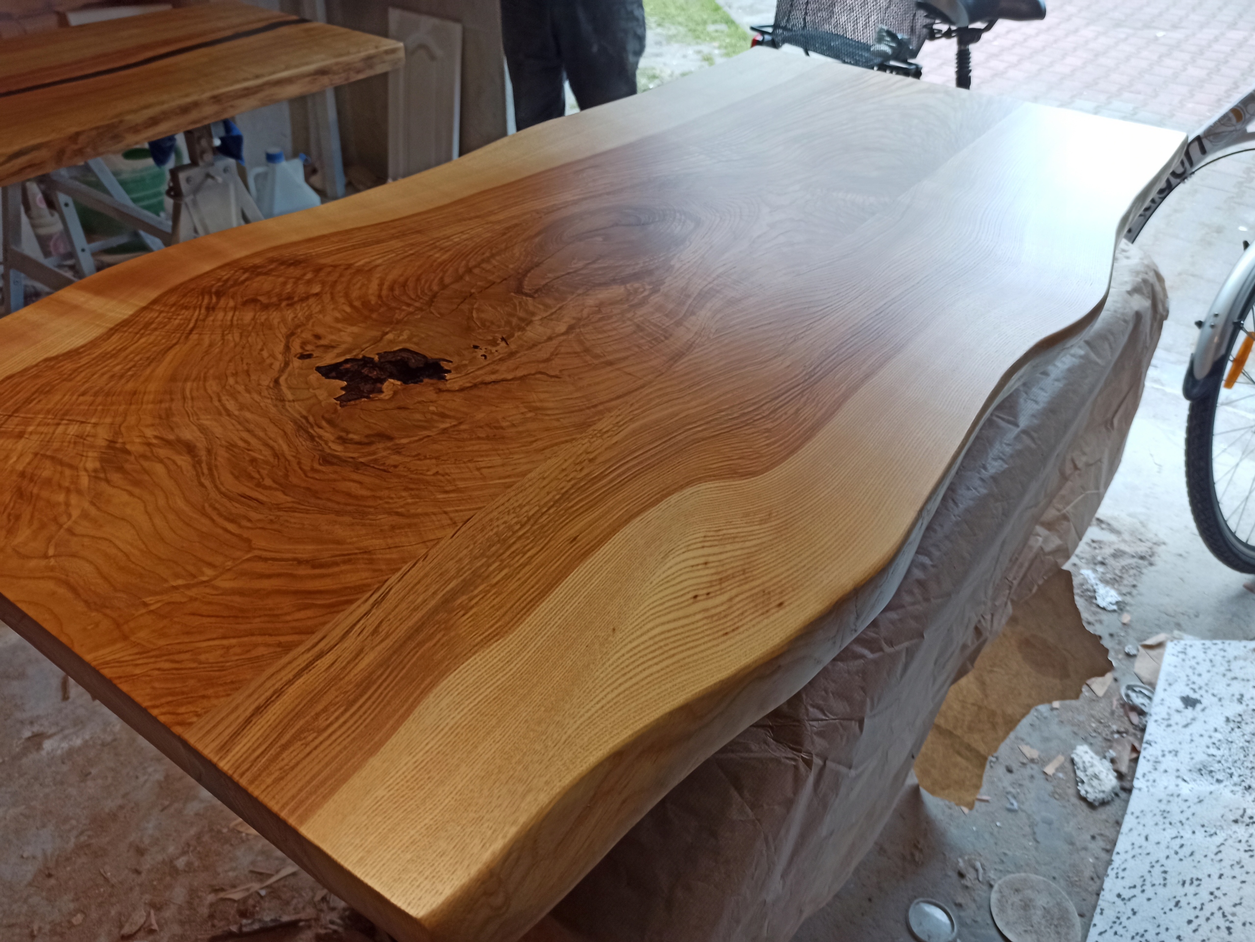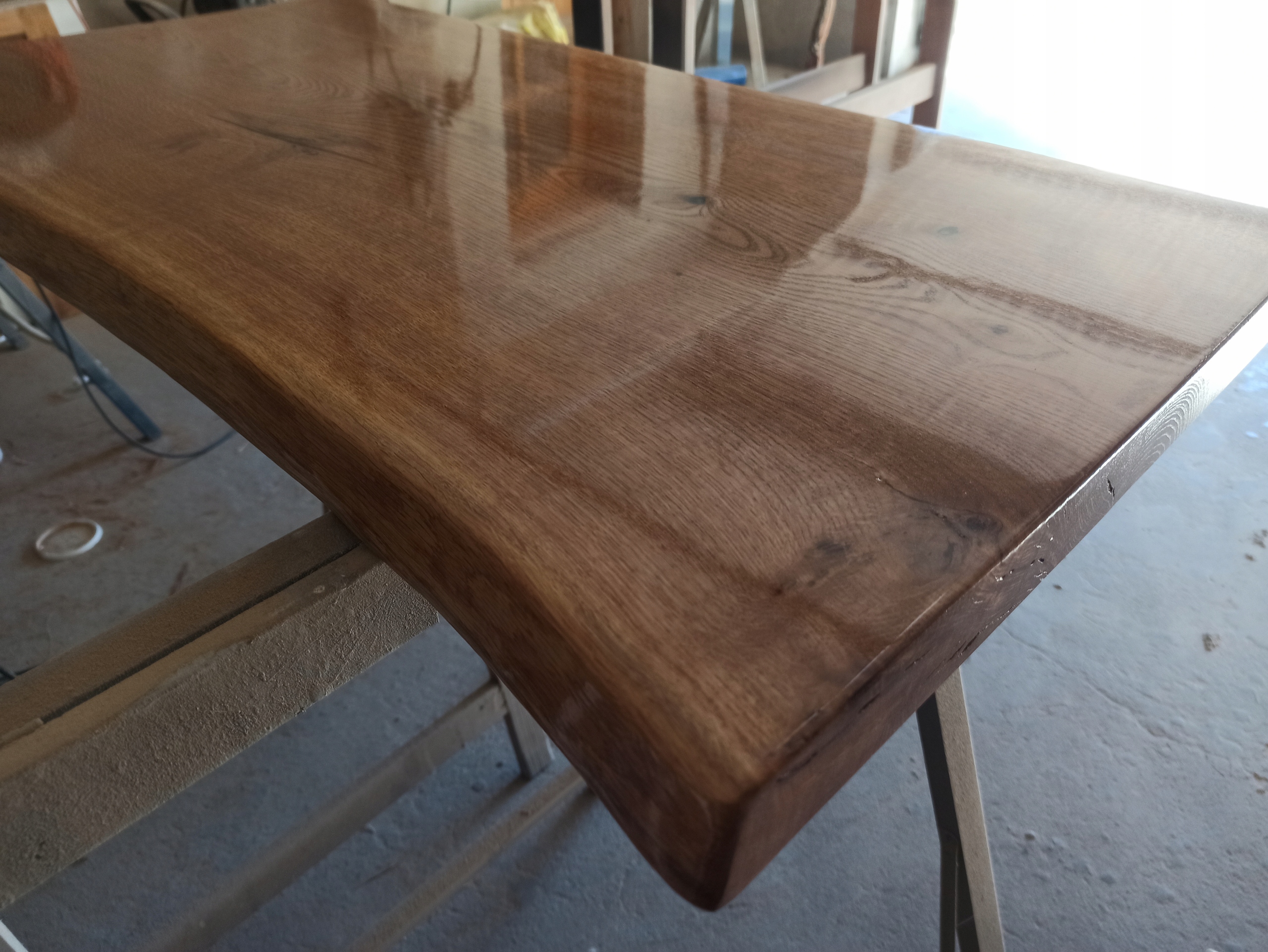 Залит эпоксидной смолой, промаслен, покрыт лаком, натуральный