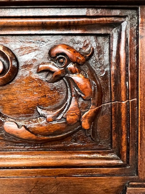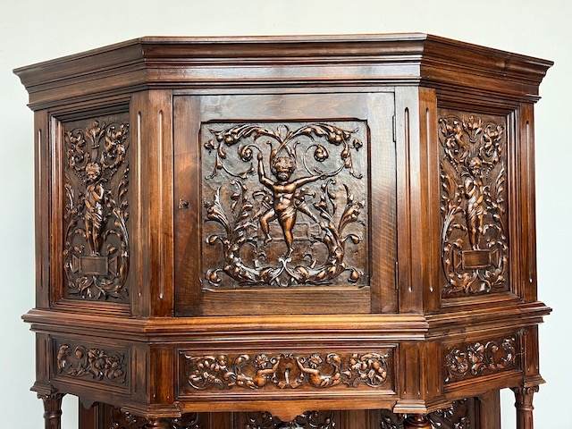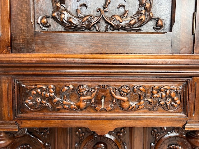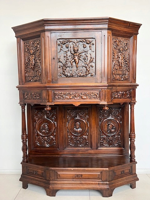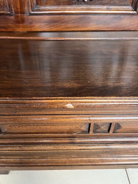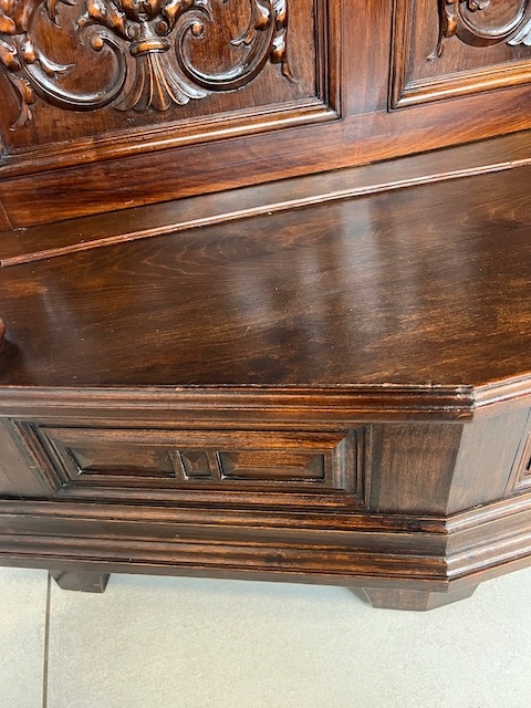 Стильный комод из древесины дуба. Гламурный; богато украшен. Его состояние показано на подробных фотографиях. В верхней части находится шкаф с одной полкой. Внизу есть один ящик. Он может служить, например, барной стойкой или вешалкой для белья. Это не только функциональный предмет мебели, но, прежде всего, красивое украшение стильного интерьера. Замки функциональные и поставляются с двумя разными ключами. Комод готов к установке.