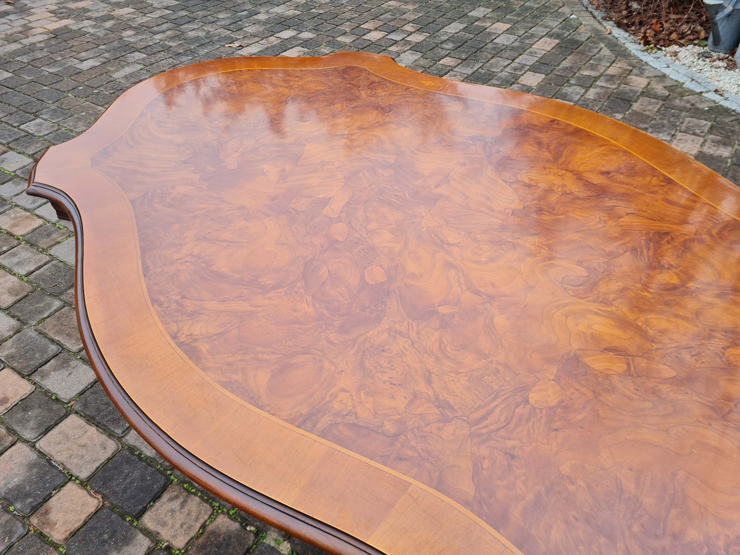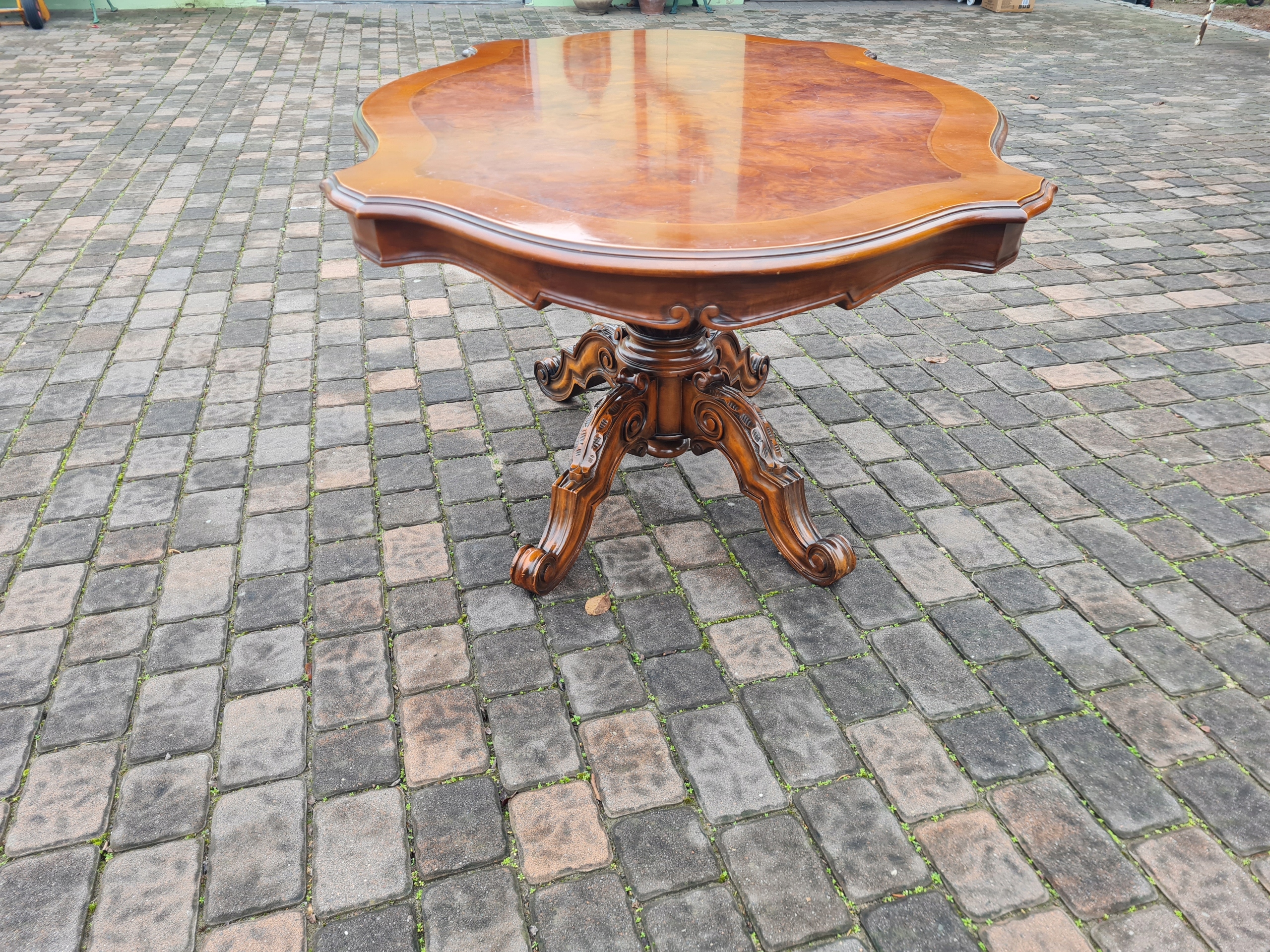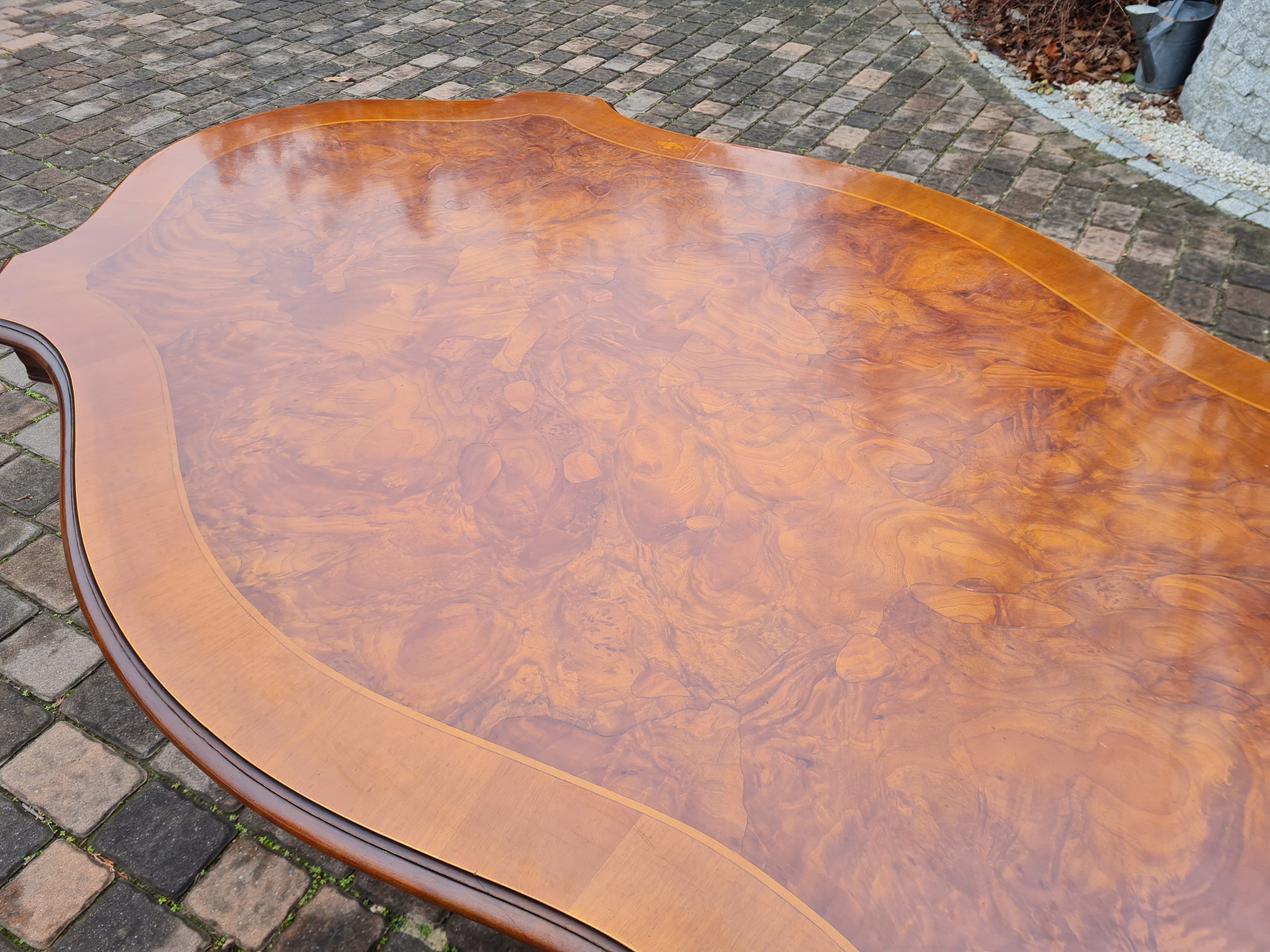 Стильный, красиво оформленный стол из ореха.
