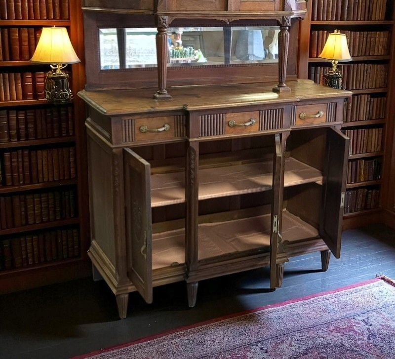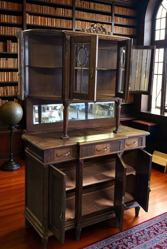 мебель с межвоенного периода прошлого века. Он состоит из двух частей в темном ореховом цвете. Несмотря на годы, я оцениваю состояние. В нижней части шкаф с одной полкой и над ней три ящика, над глазурованной частью, также разделена на полку, закрытая дверью с овальным и прямоугольным кристаллическим стеклом с помощью ручного измельчения. Он имеет тонкую корону в форме лука, и все стоит на ногах. По моему мнению, мебель определенно должна использоваться с деликатными признаками возраста, так называемые «зуб времени»; Без необходимости ремонтировать. Это выглядит чрезвычайно эффективно. К сожалению, у меня нет ключей. h1>