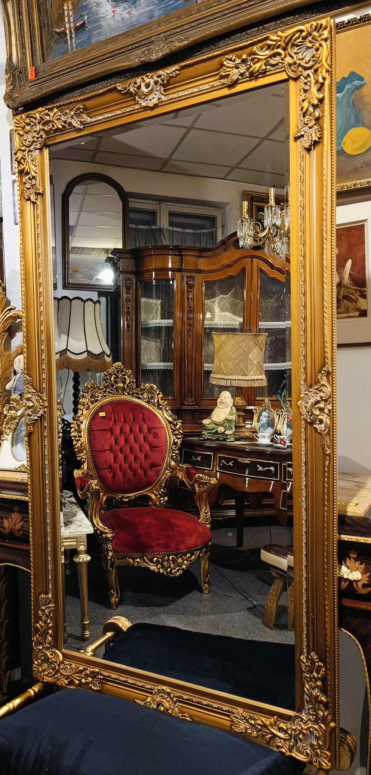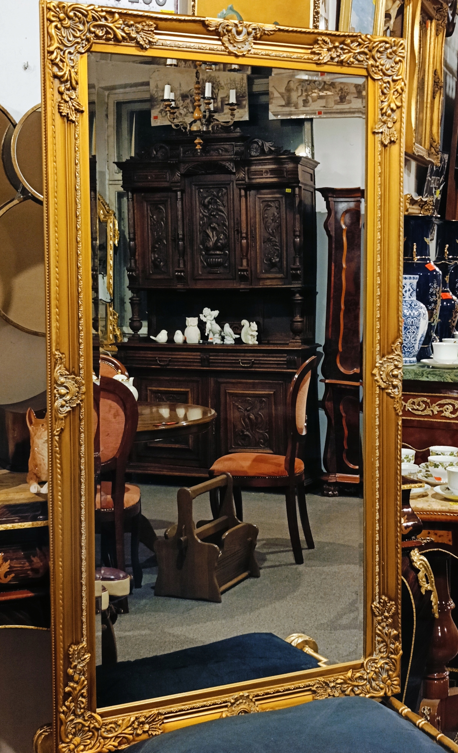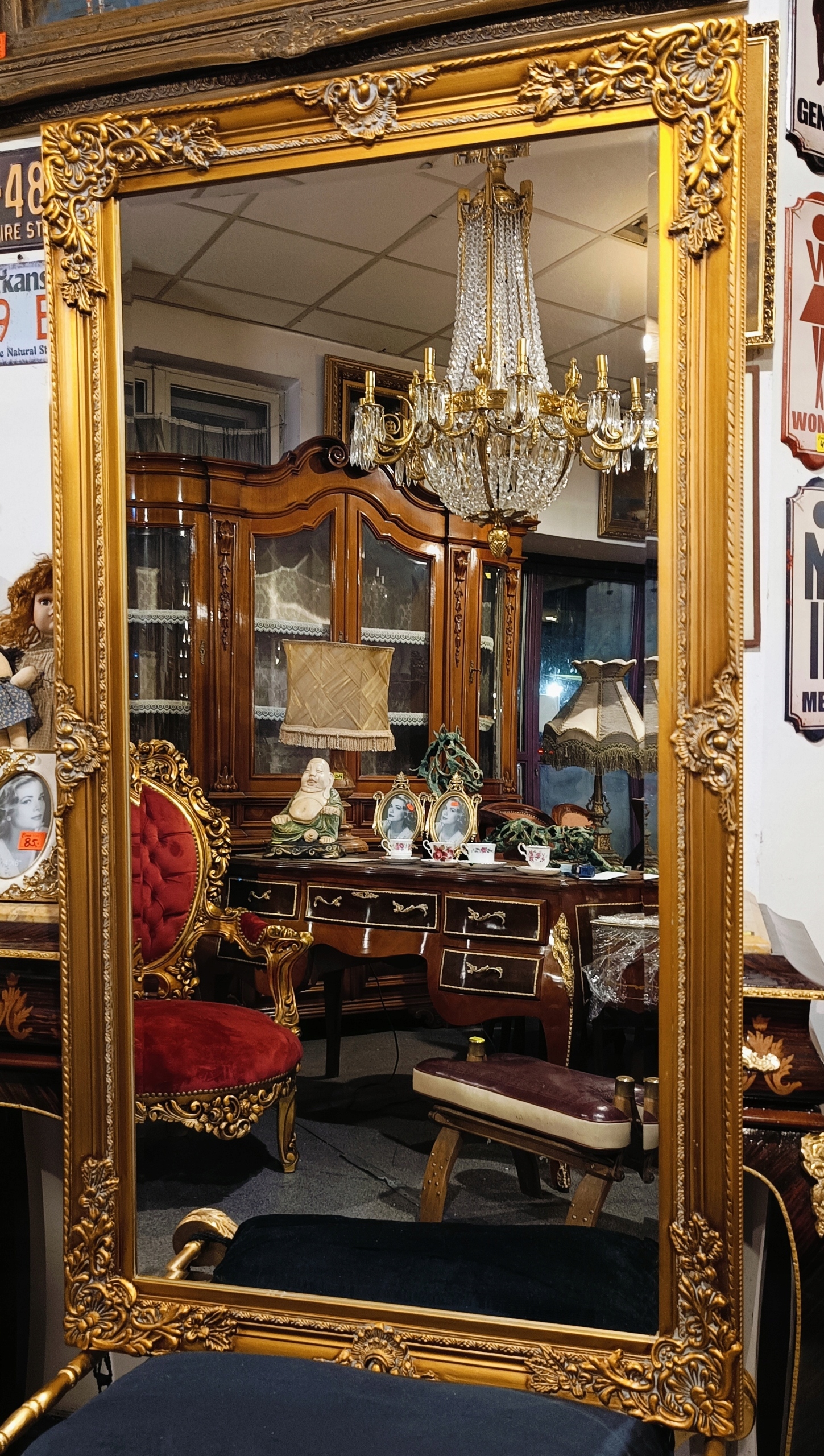 красивое и эффективное кристаллическое зеркало (канальное стекло) в прекрасной деревянной раме цвета старого золота; украшен отличными декорами. Они наслаждаются своей изощренностью и оригинальностью. Я оцениваю состояние как очень хорошее.