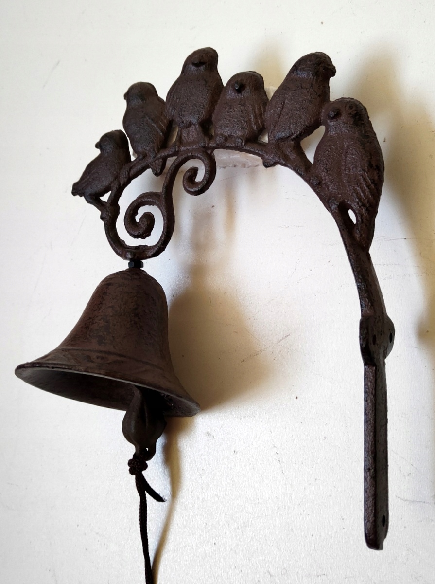 Стильный чугунный колокольчик для птичьего домика.