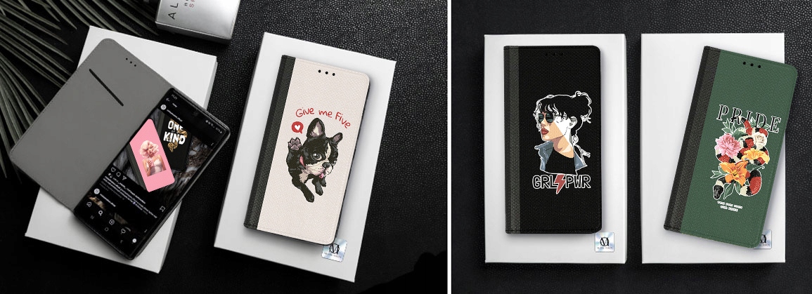 ◉ Магнитная застежка, удерживающая футляр на месте. Чехол не раскроется при падении и не повредит ваш смартфон!