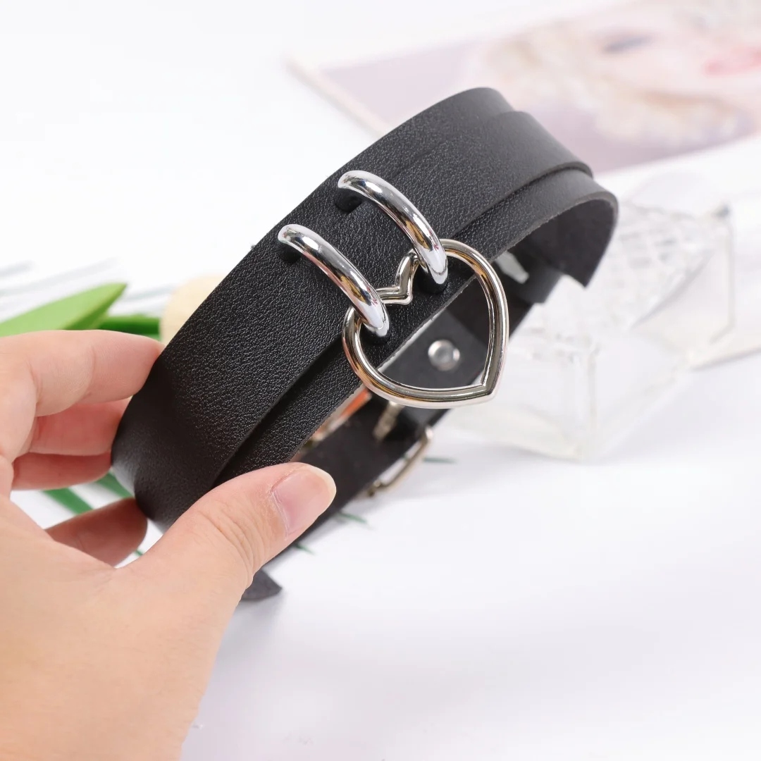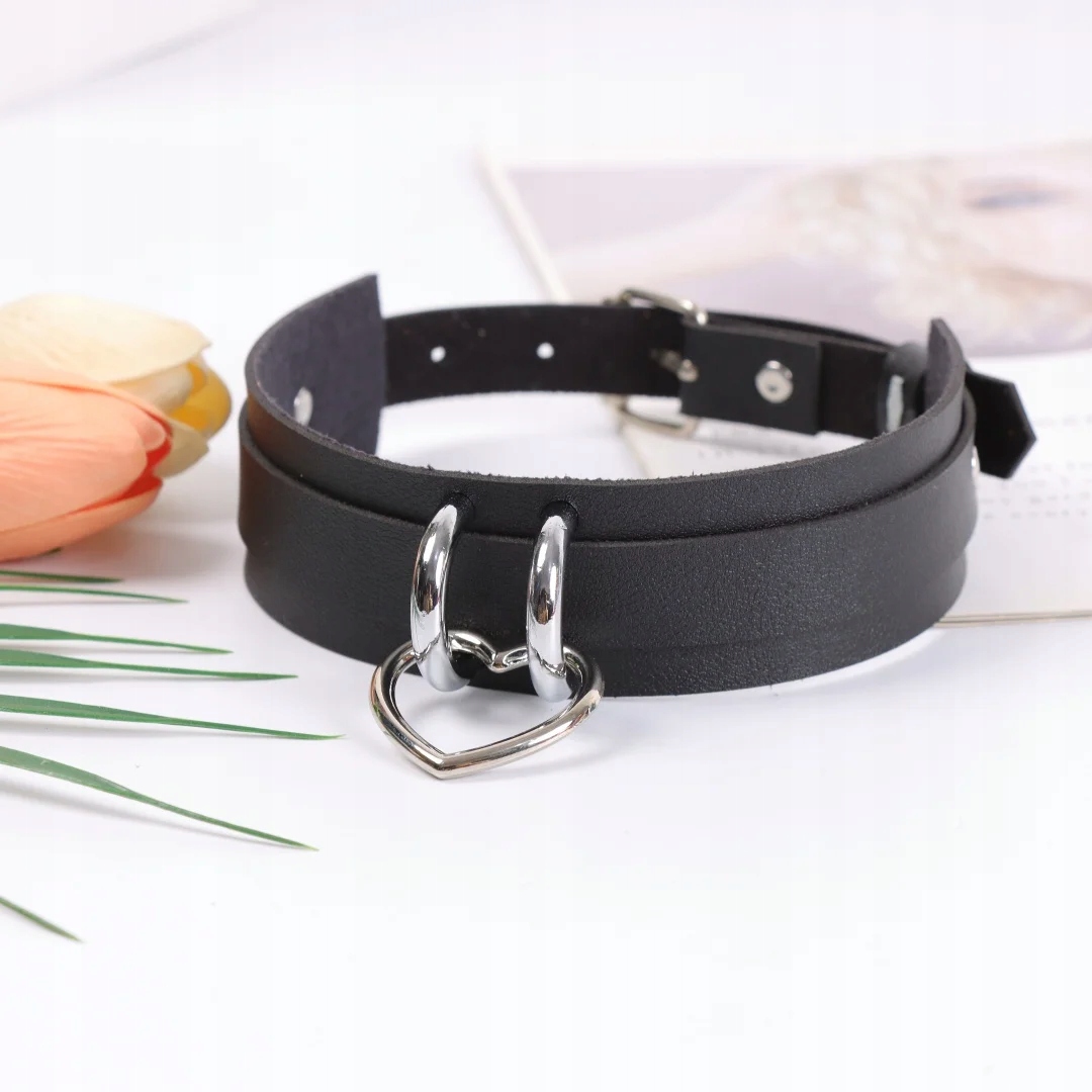 Стильное черное бдсм-колье с сердечком