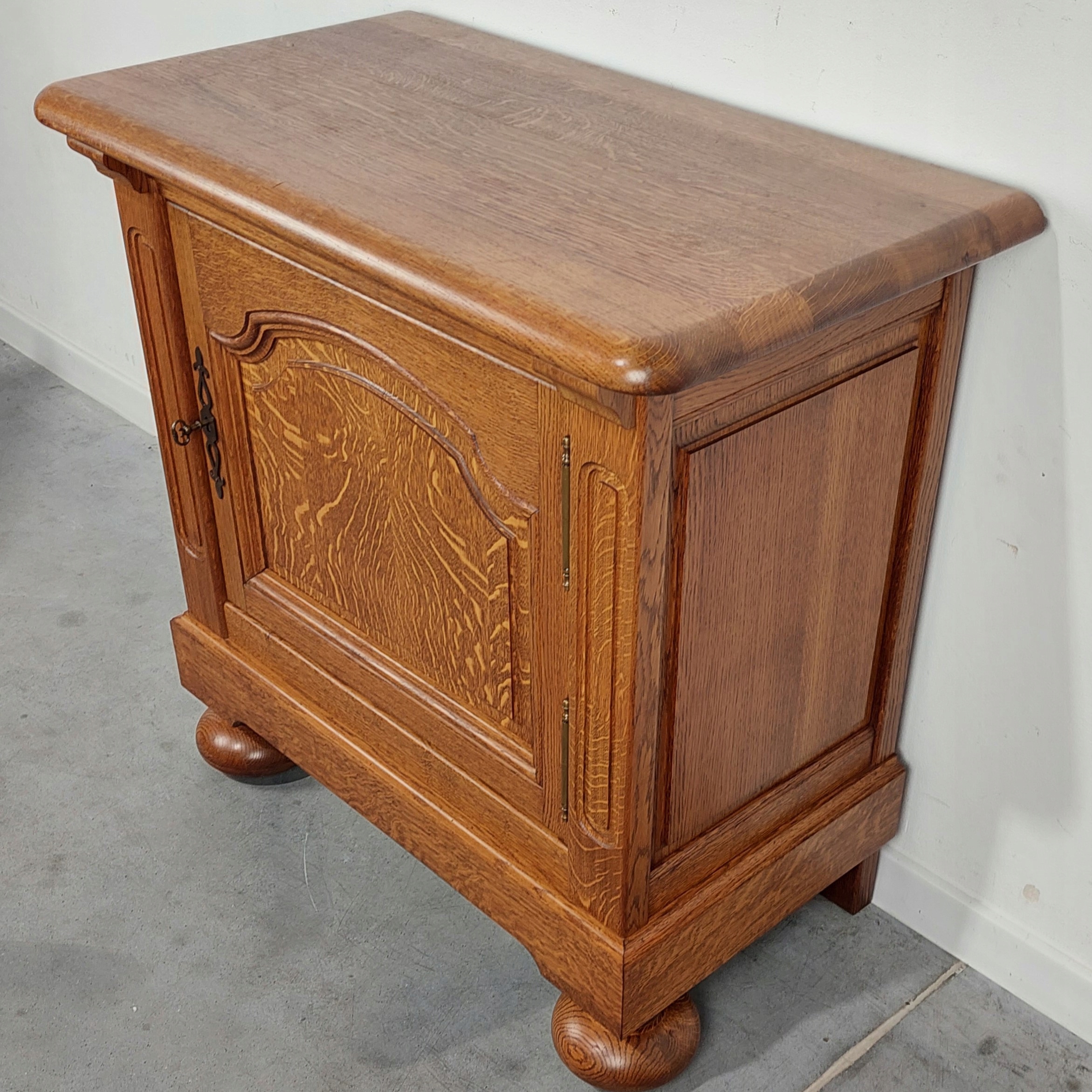 Стильная голландская отличная черта из твердого дуба, привезенная из Нидерландов. Мебель будет работать в качестве телевизионного шкафа, она может быть успешно адаптирована к раковине. Эффективный ключ замка в наборе. Мощная и твердая мебель. Существуют типичные признаки использования, то есть царапины ссадин, детали, показанные на изображениях