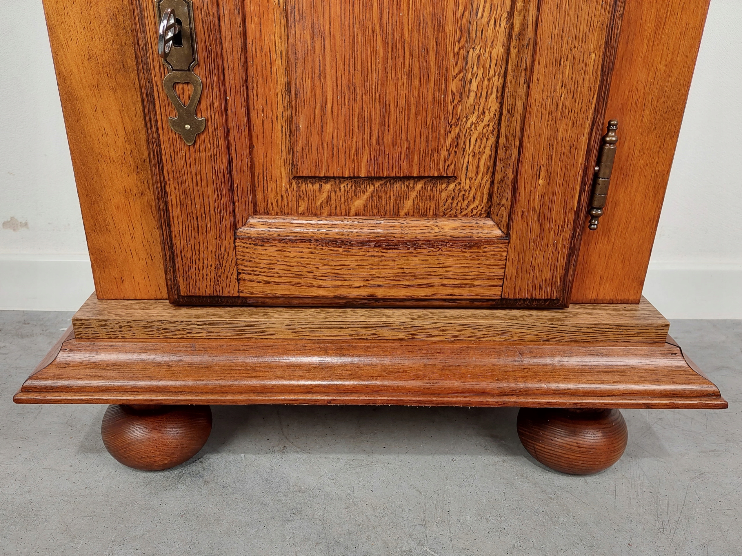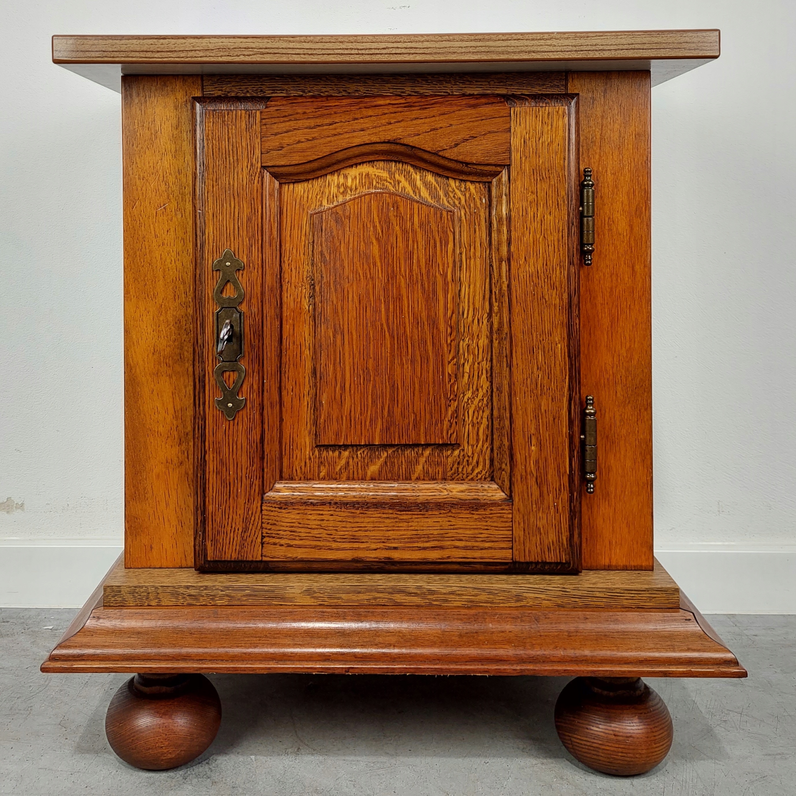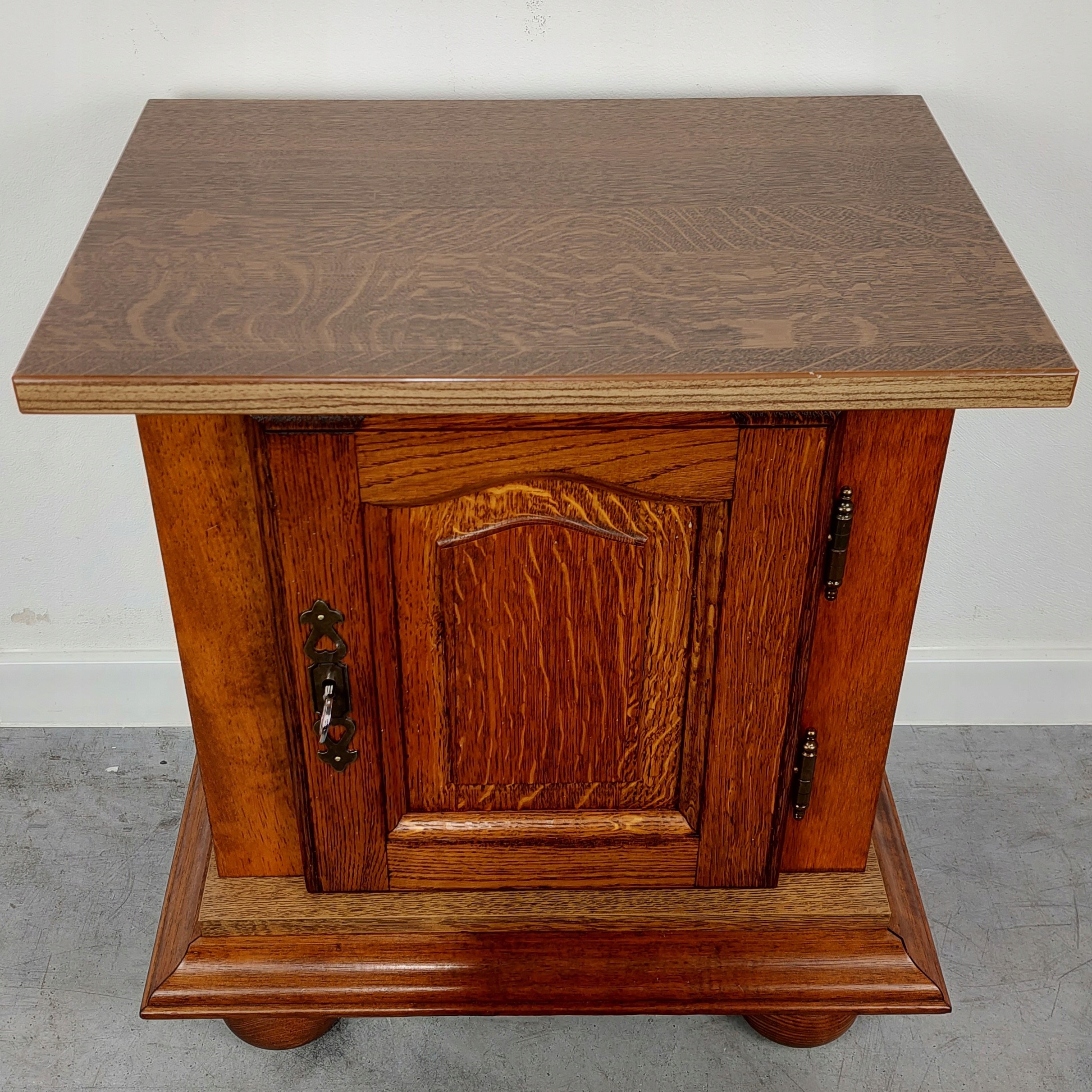 Стильный дуб голландский ночной шкаф. Структура ноги и переднего дуба, затем натуральный дубовый шпон. Функциональная блокировка, ключ в наборе. Мебель имеет типичные признаки использования, такие как небольшие царапины. Подробные фотографии ниже