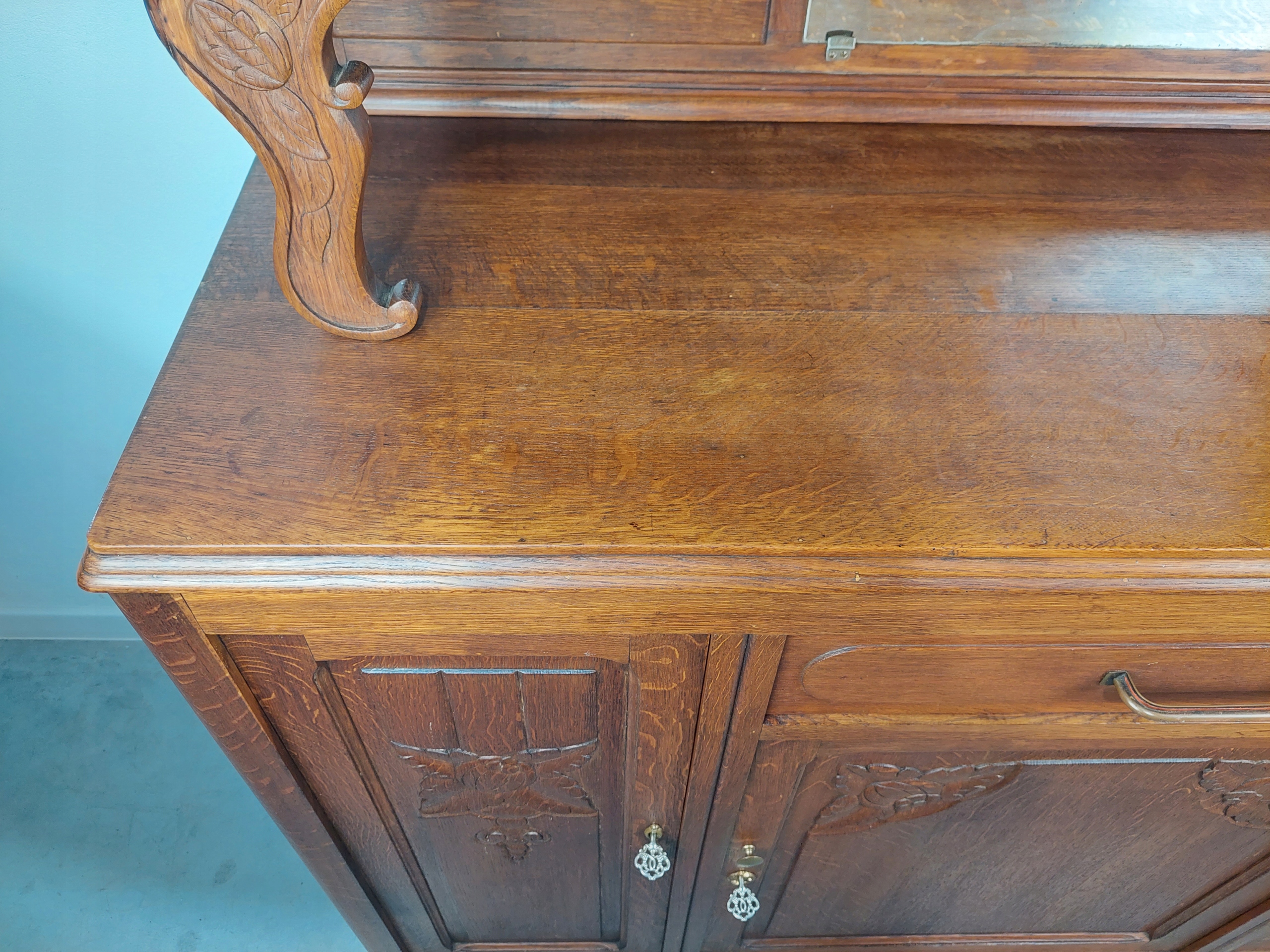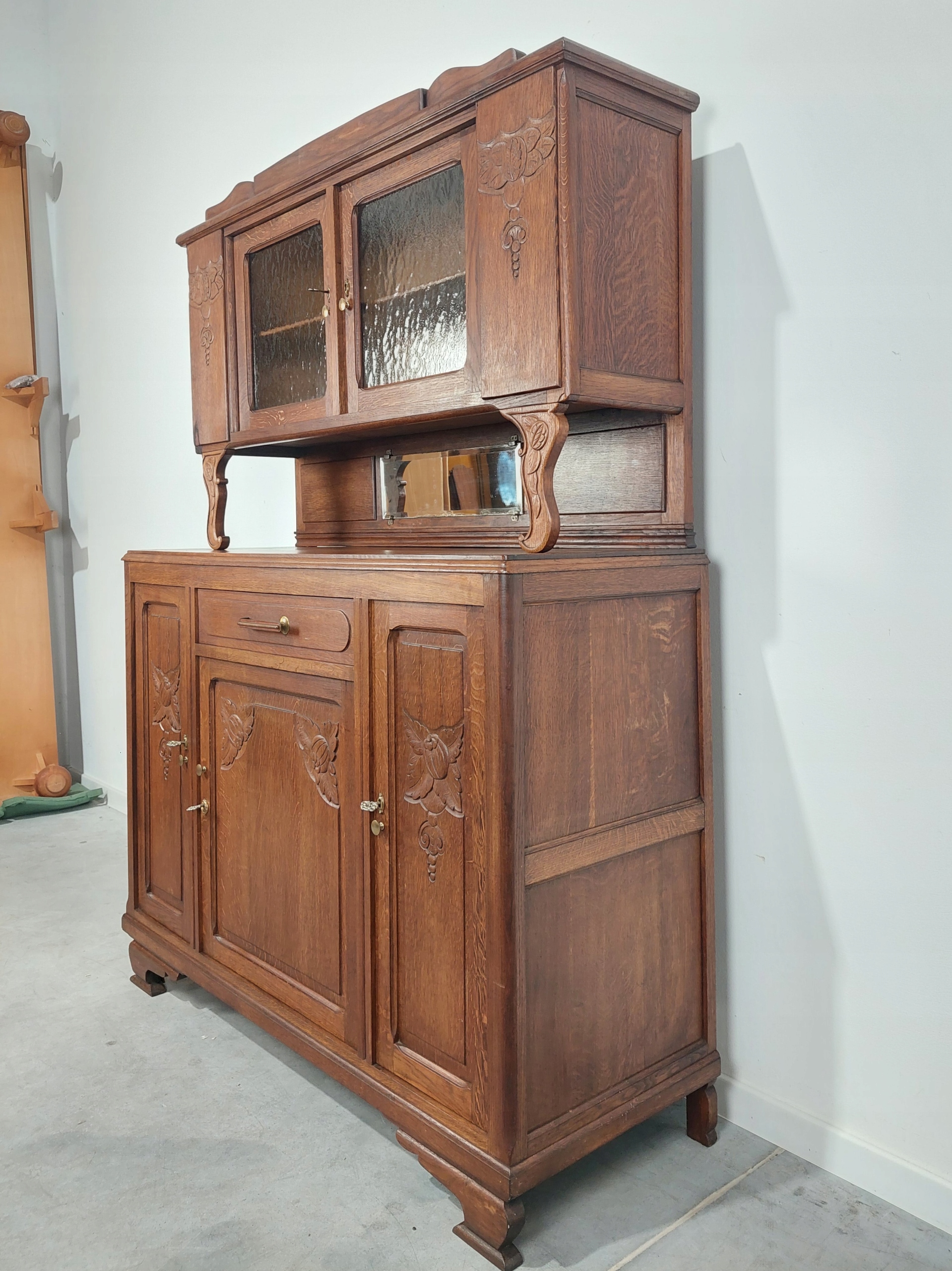 Стильный красивый буфет/ ар -деко, дуб, привезенный из Франции. Мы представляем вам буфет, его можно использовать в качестве комода после удаления расширения. Обложка сохранилась в хорошем состоянии. Эффективные замки, вы получаете 4 ключа в наборе. На столешнице видимых признаков использования, таких как царапины обесцвечивания. Зеркало хрустального канала, в хорошем состоянии, проскальзывает, за ним стоит ниша, которая отлично работает как хранение. Мебель в 2 элементах, установлена и скрученная на спине. Из -за возраста (около 70/80 лет) мебель показывает следы ремонта, следы продолжающейся левой стороны в расширении. Подробные фотографии ниже
