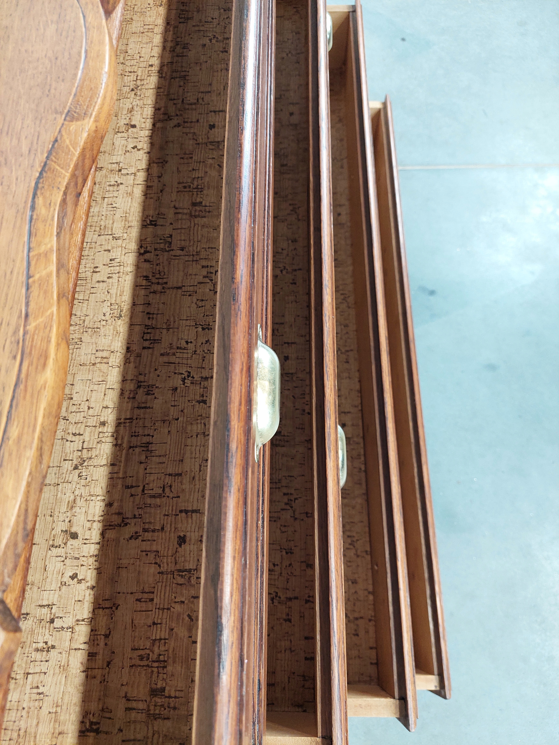 Стильный дубовый деревенский комод - нижнее белье, привезенное из Франции. Грудь ящиков в основном из твердого дуба. Интерьер ящиков, покрытых защитной фольгой, современные ручки. Комочий комод действительно большой и вместительный. Мебель имеет признаки использования, такие как небольшие функции. Подробные фотографии ниже