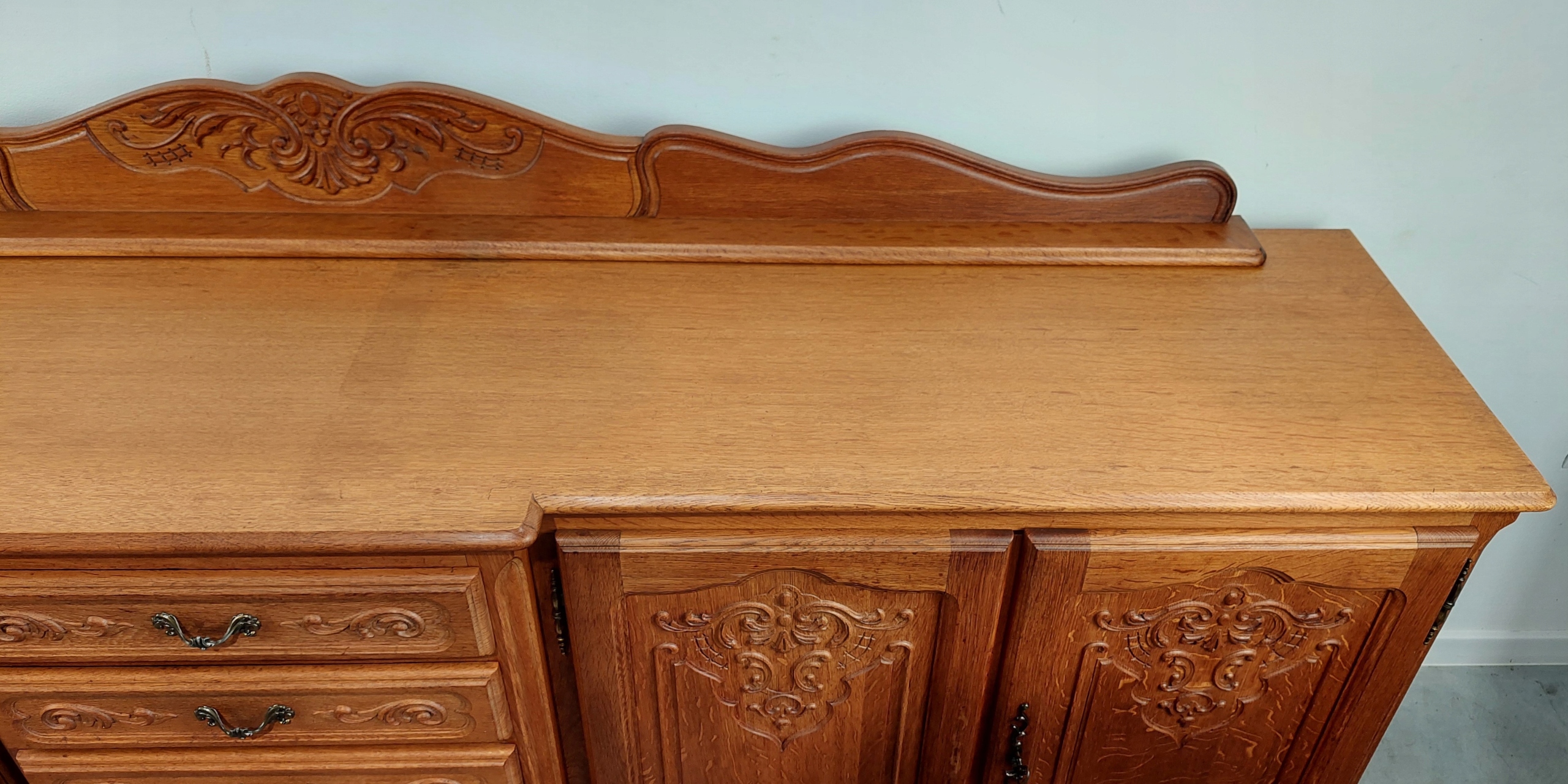 Стильный комод Ludwików dębowa, привезенный из Франции. XXL модель, до 261 см. Существуют следы использования, такие как царапины, ссадины, обесцвечивание. Нет фитингов на стороне двери. Подробности, показанные на изображениях