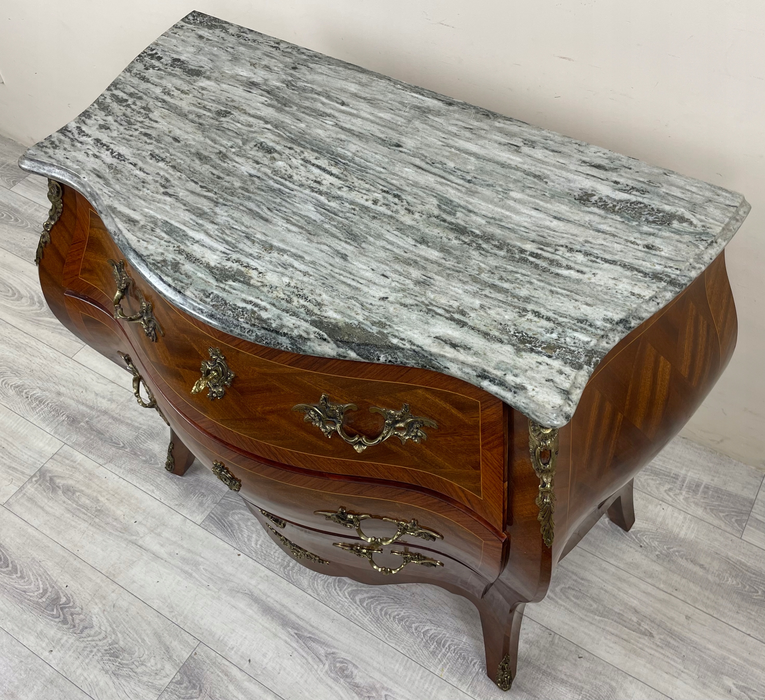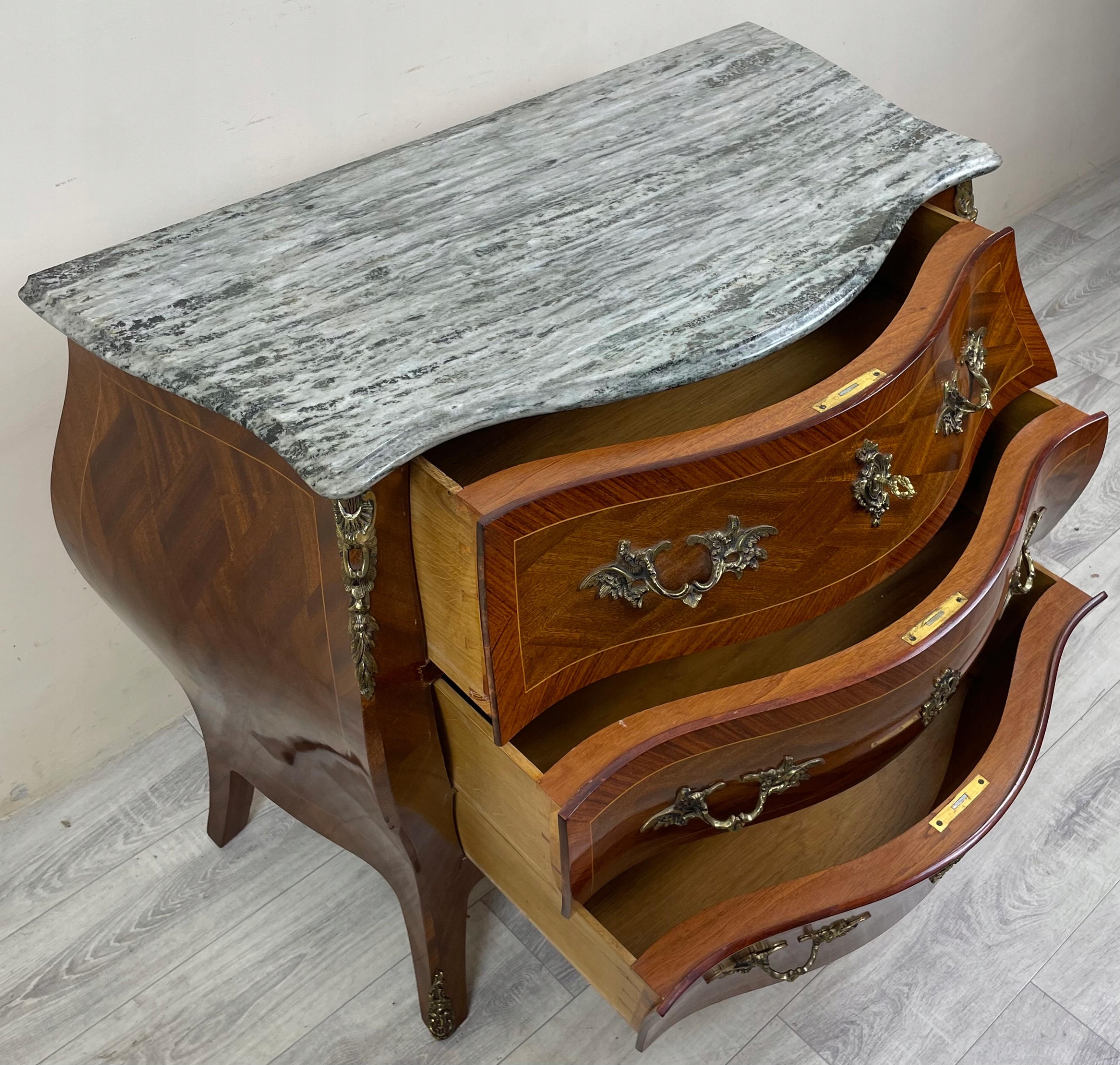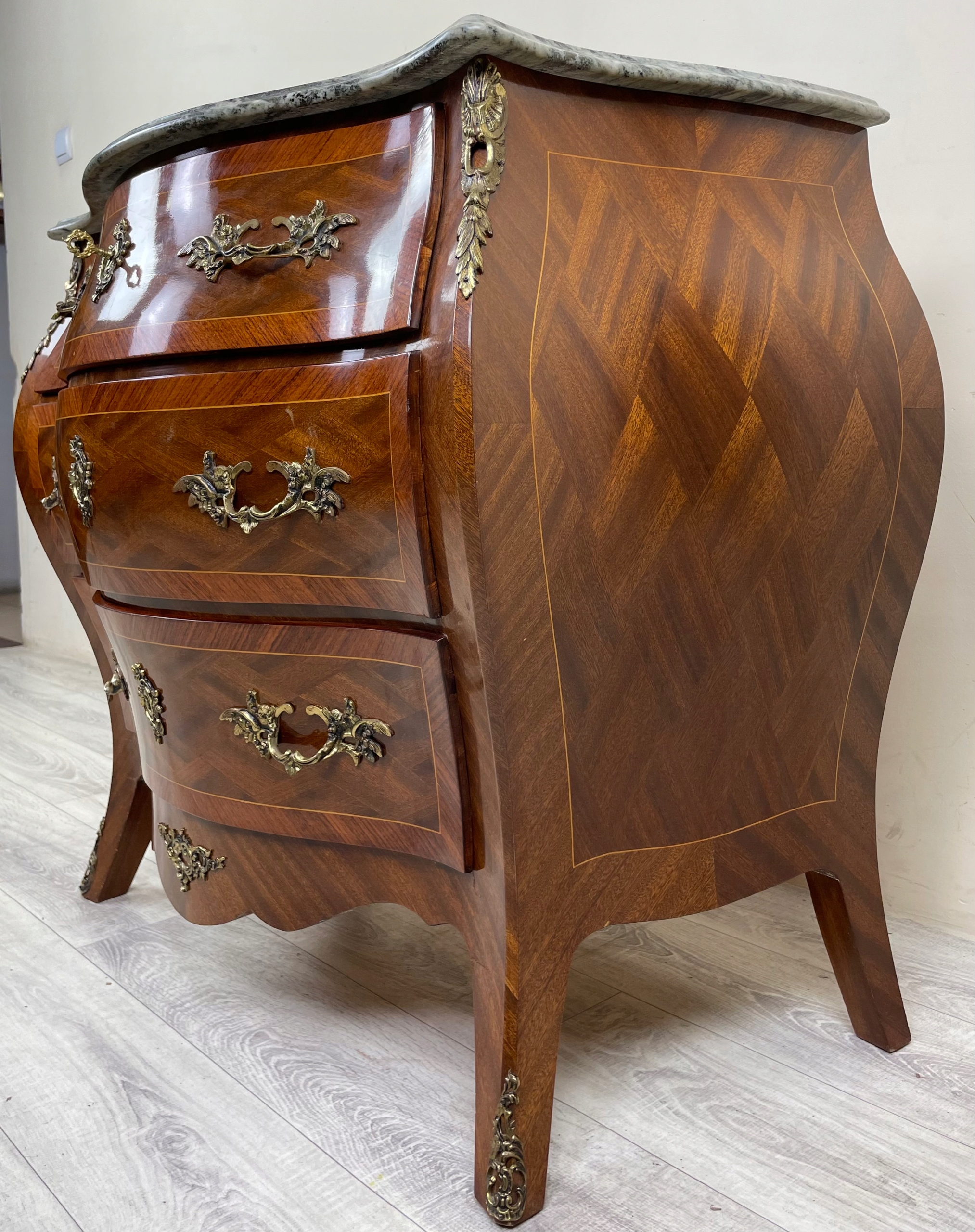 СТИЛЬНИЙ ФРАНЦУЗЬКИЙ БОЧОК Комод БАРОКО АМПІР МАРМОР ІНТАРСІЯ ФРАНЦІЯ H79