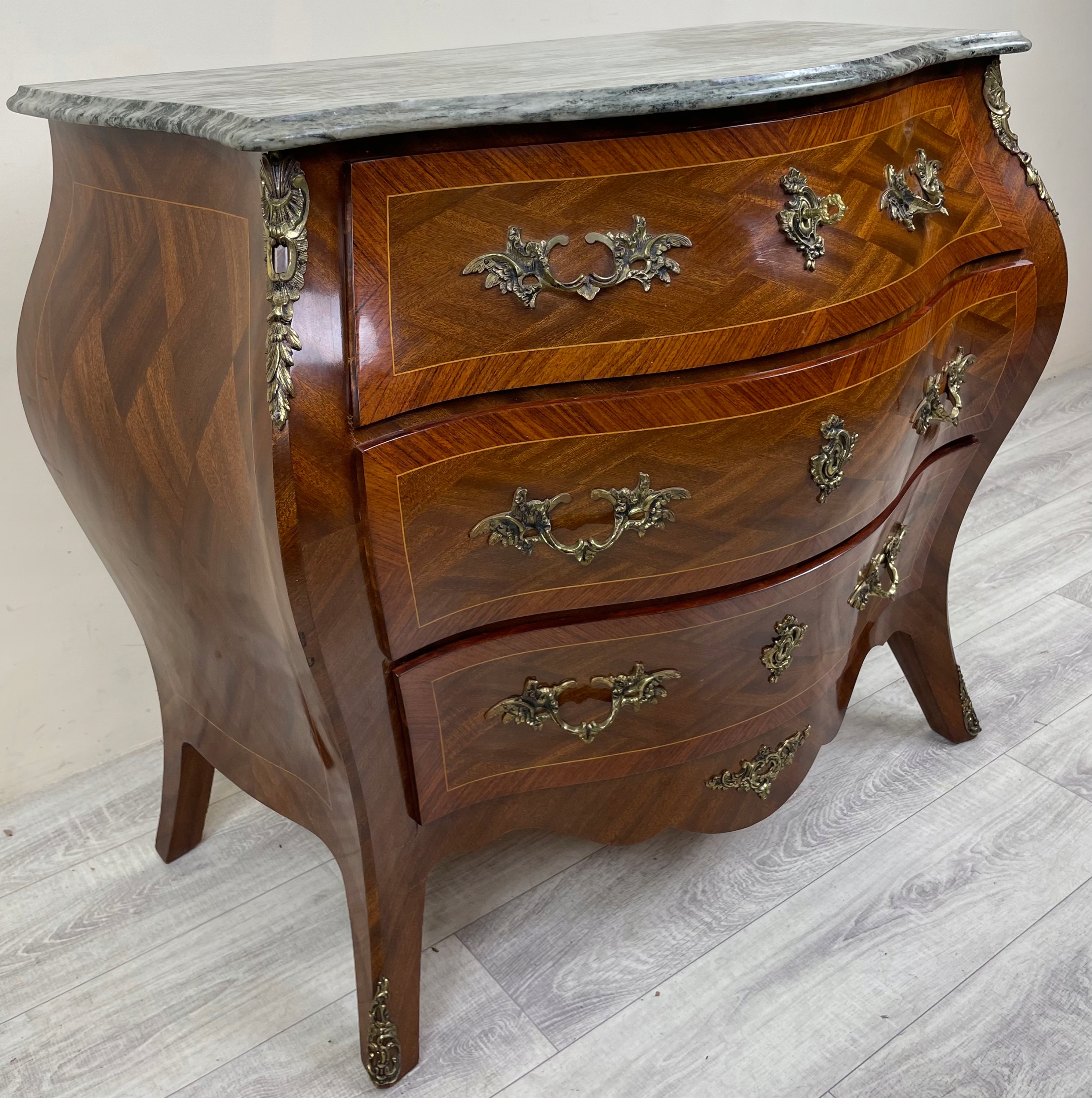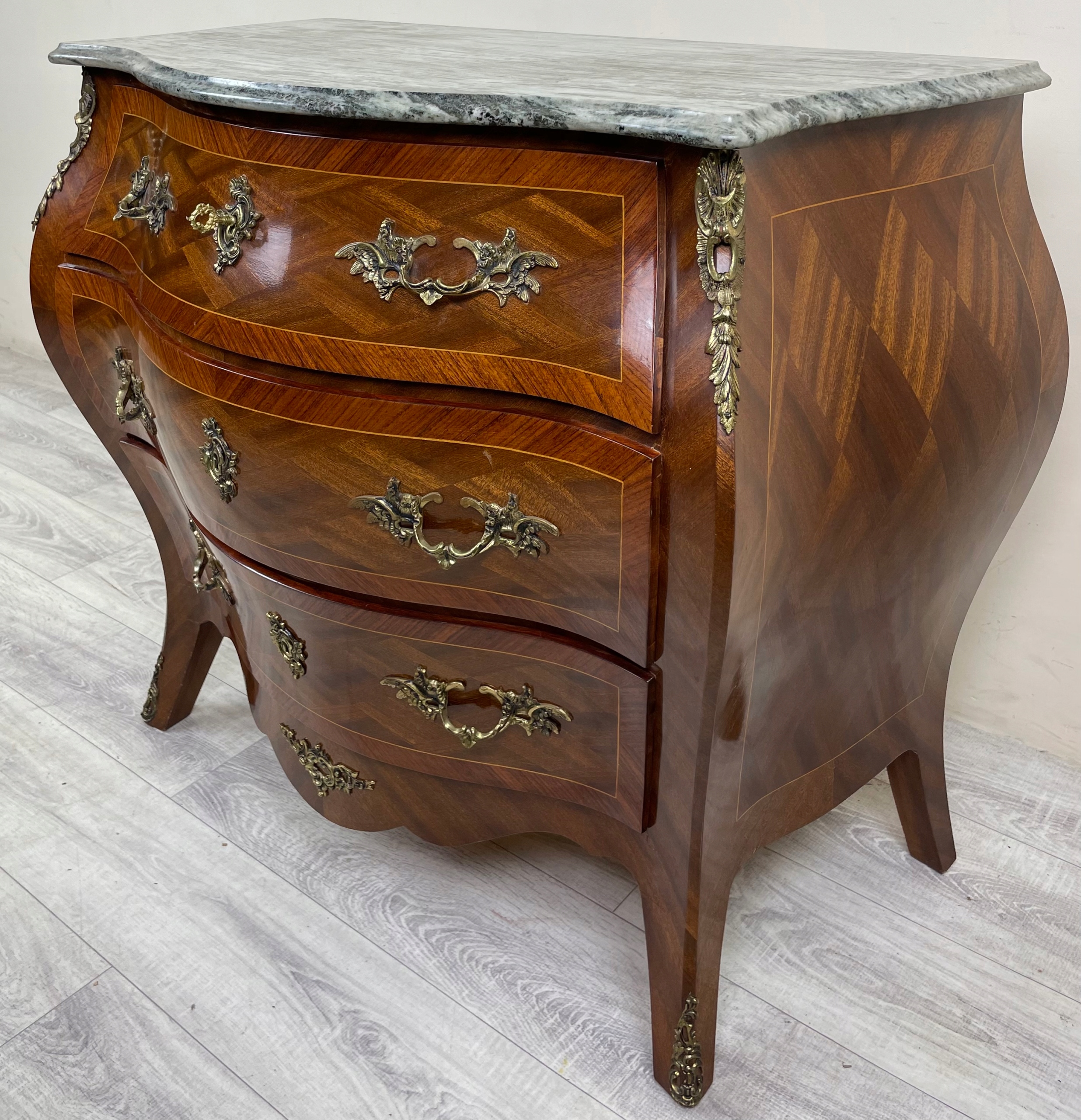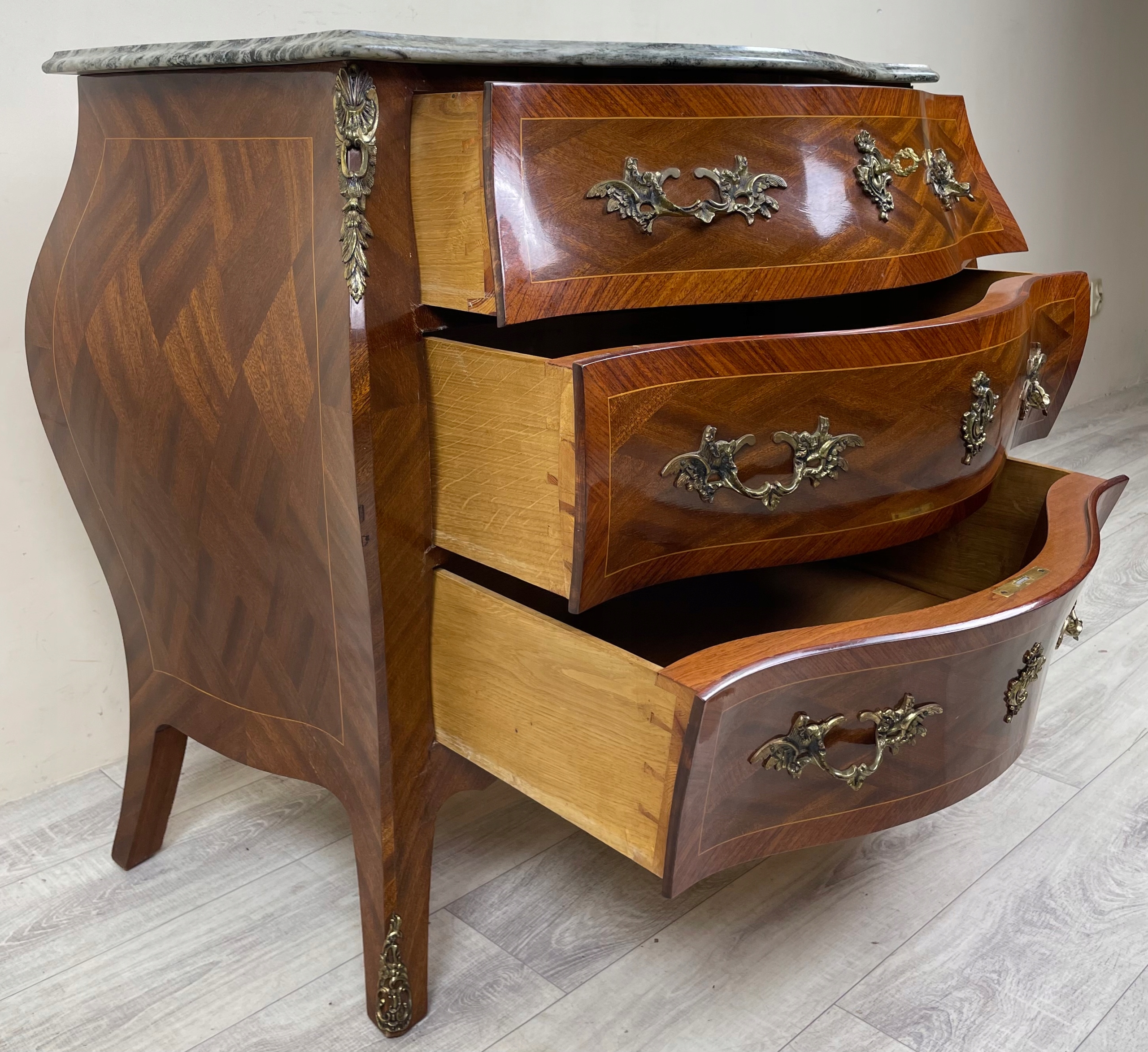 СТИЛЬНИЙ ФРАНЦУЗЬКИЙ БОЧОК Комод БАРОКО АМПІР МАРМОР ІНТАРСІЯ ФРАНЦІЯ H79