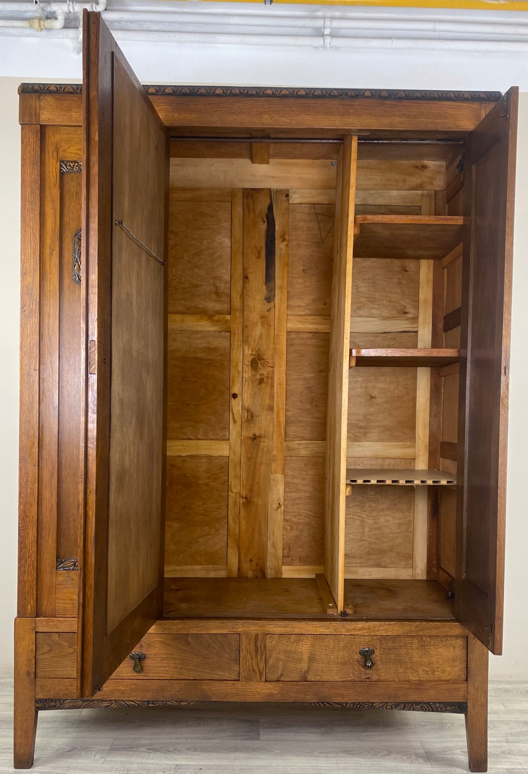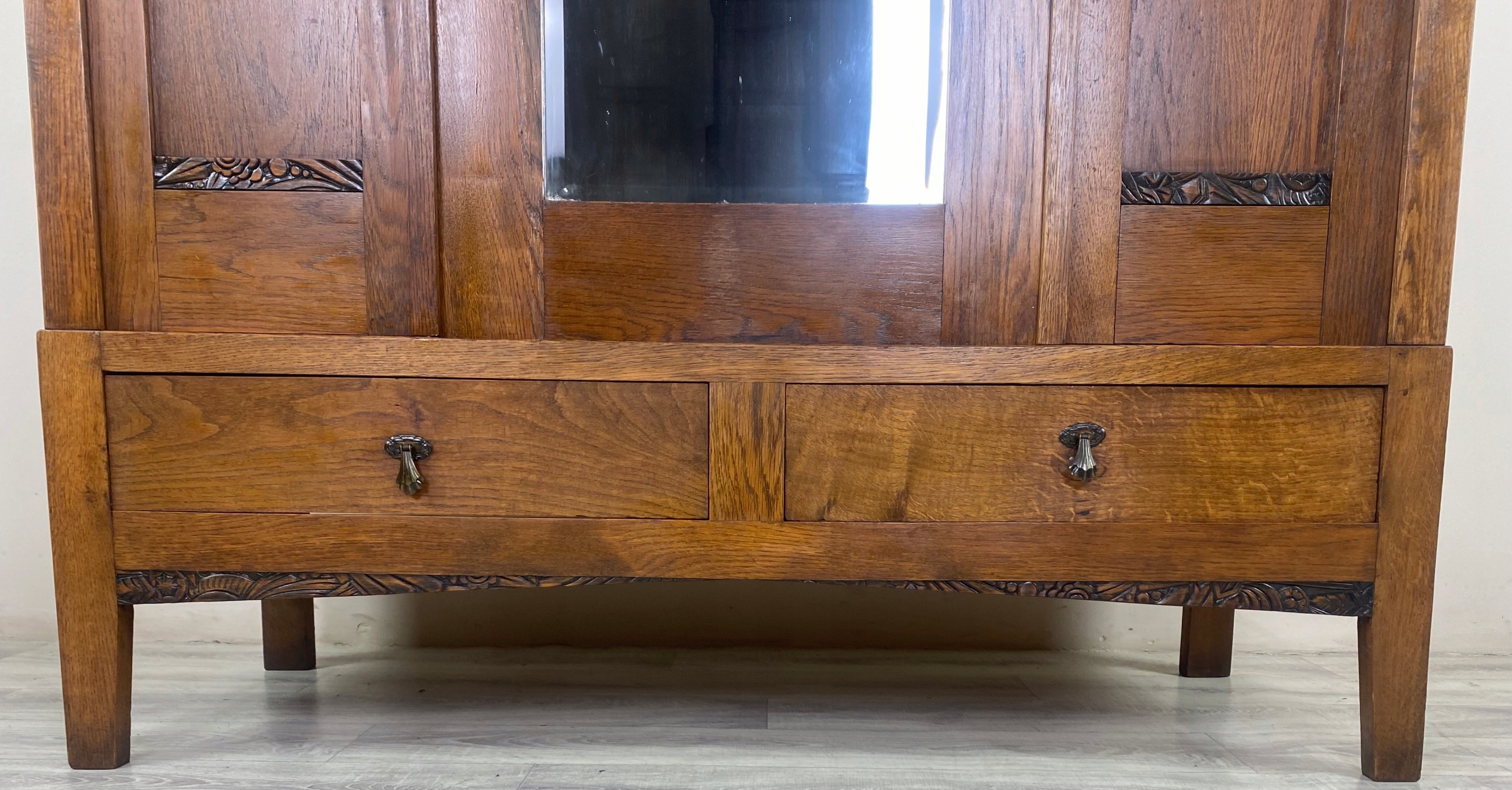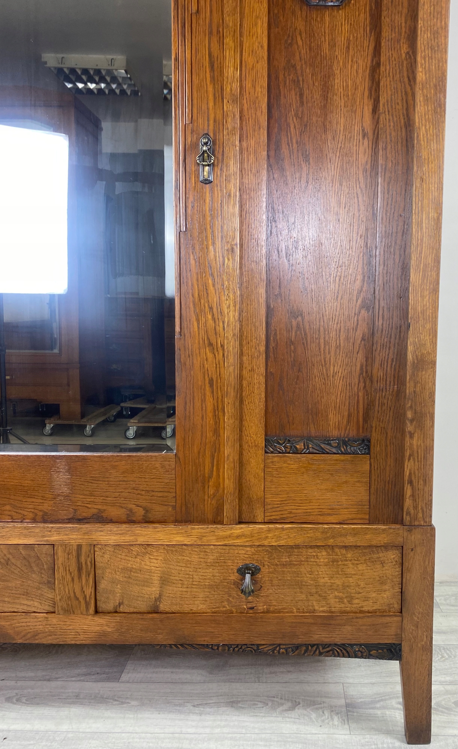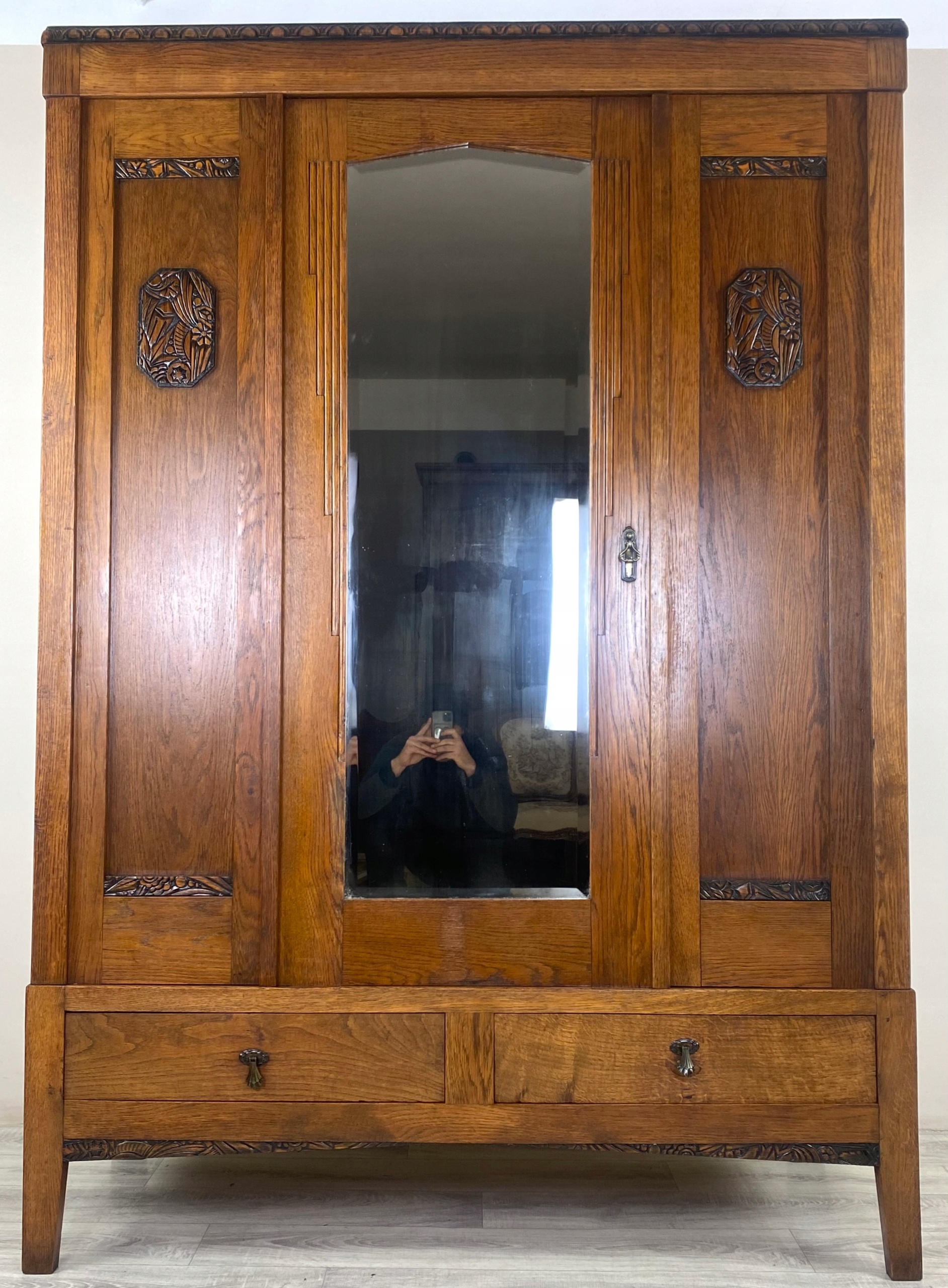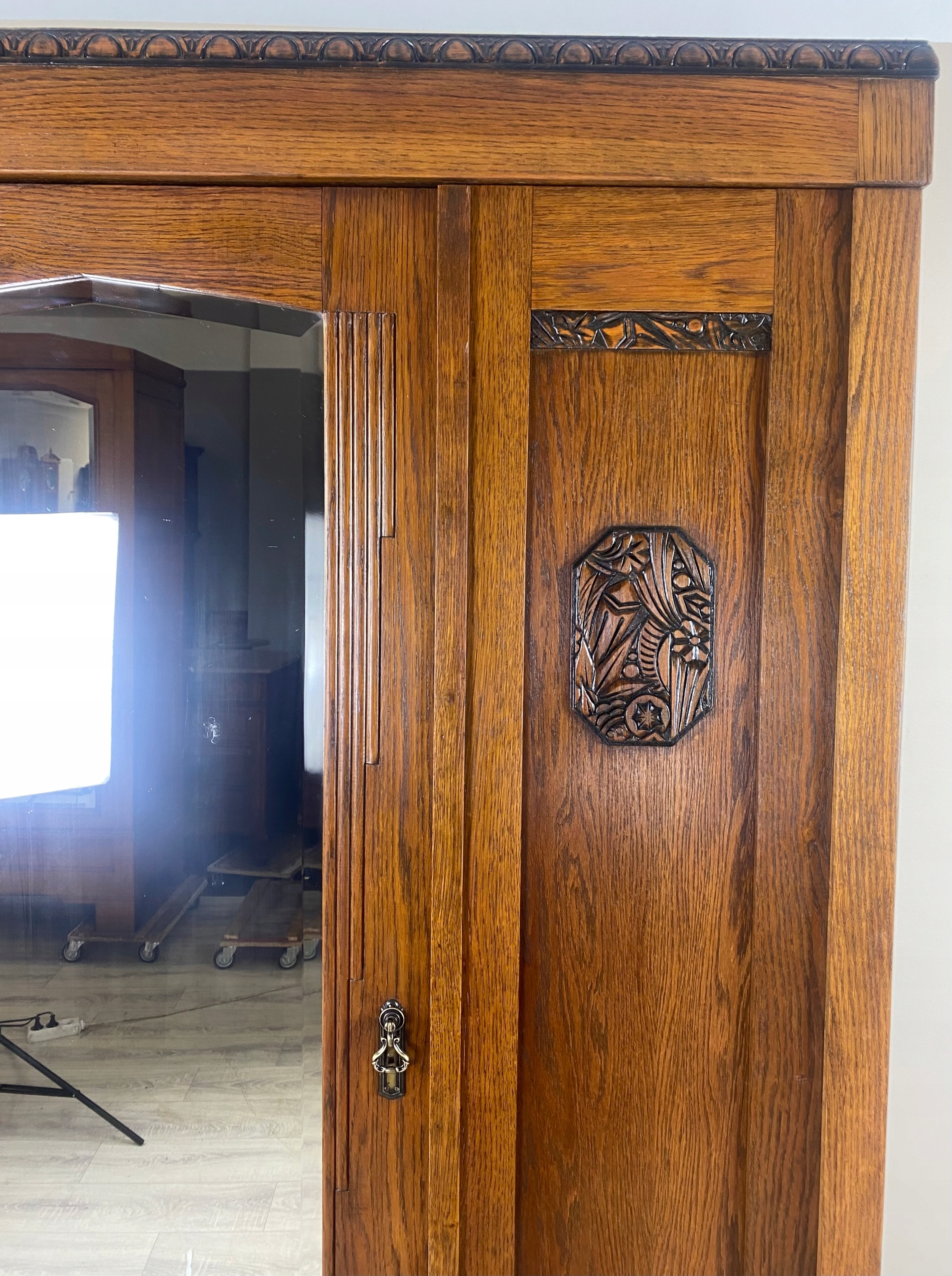 Стильный гардероб гардероба с зеркальным арт -деко отделением с твердым дубом Франция P12