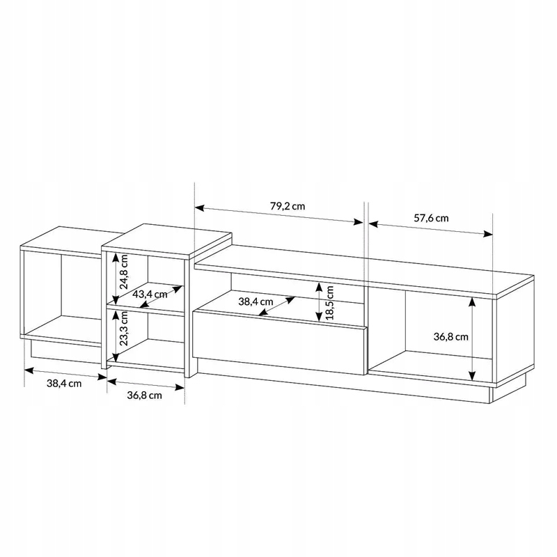 <р> Тумба под ТВ - 1 шт. <р> подвесная полка - 1 шт. <р> подвесной шкаф меньшего размера - 1 шт. <р> подвесной шкаф большего размера - 1 шт. <р> комод - 1 шт. <р> two-door chest of drawers - 1 pc. <р> журнальный столик - 1 шт.Размеры тумбы под телевизор: