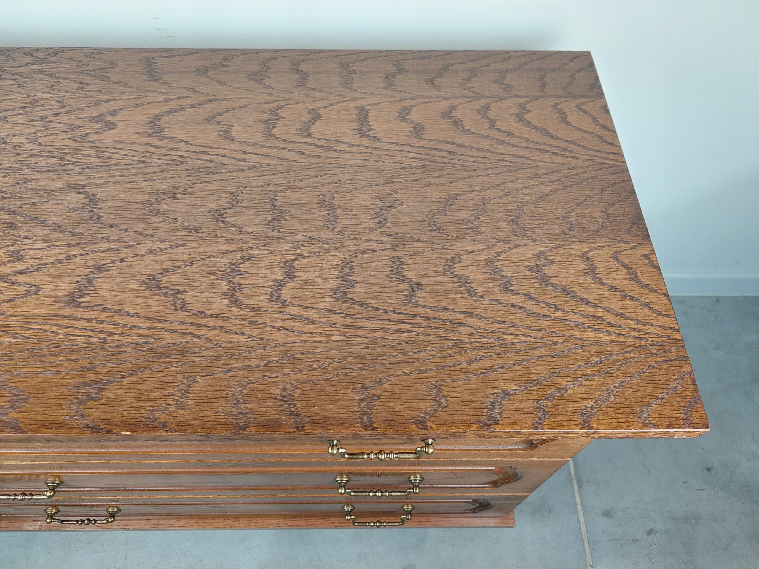 Стильный голландский сундук с ящиками - белье, привезенное из Нидерландов. Элементы строительства и фронтов - дуб, затем натуральный дубовый шпон. Мебель имеет признаки использования, такие как небольшие царапины, ссадины. Подробные фотографии ниже