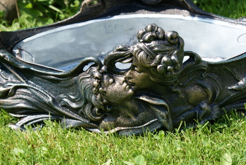 Предметом аукциона является цветочный горшок изящной формы. Изготовлен из чугуна и отделан как старинный. Сосуд можно использовать как навес для цветов или как горшок для растений (в комплект входит вставка - овальный горшок из оцинкованного листового металла).