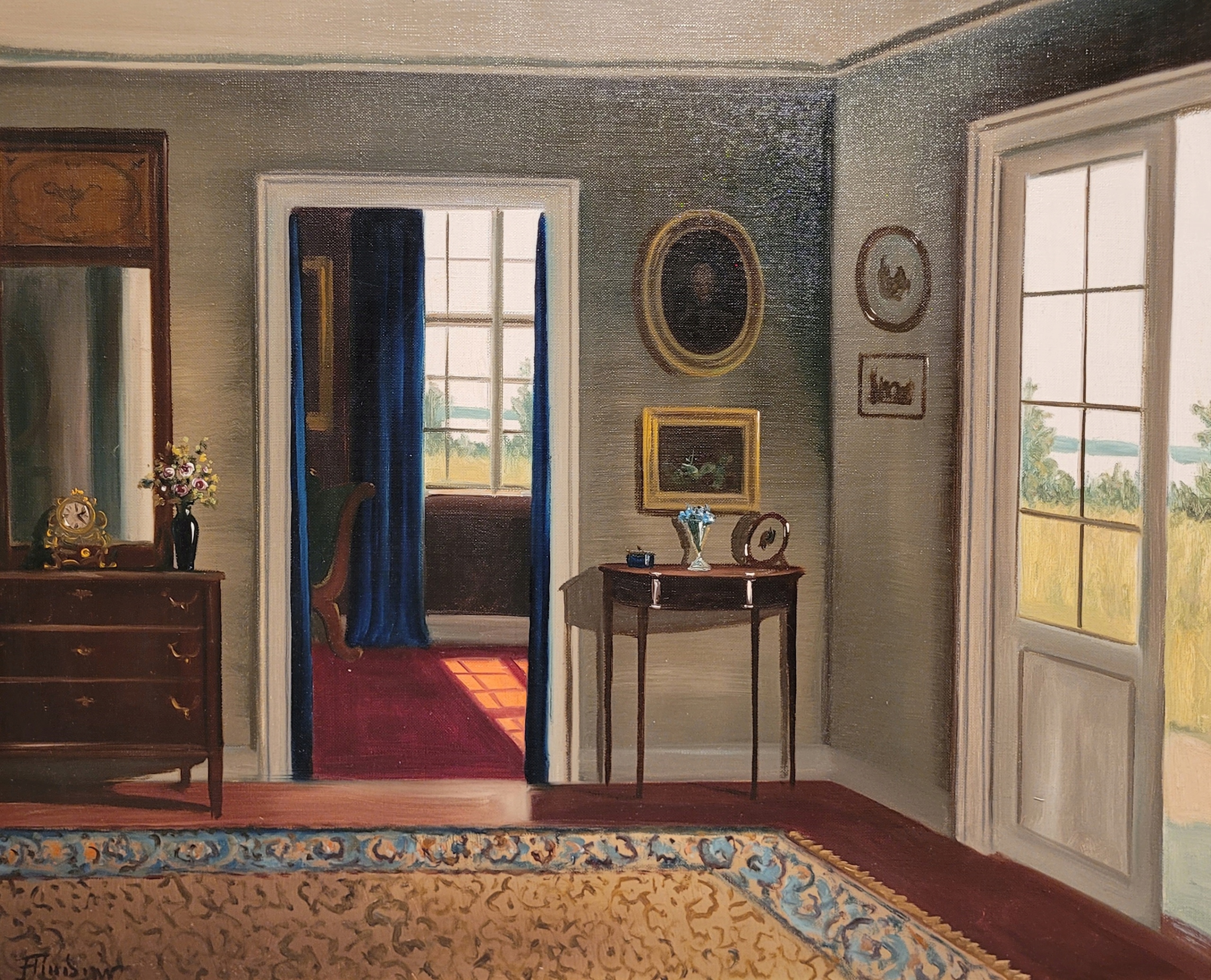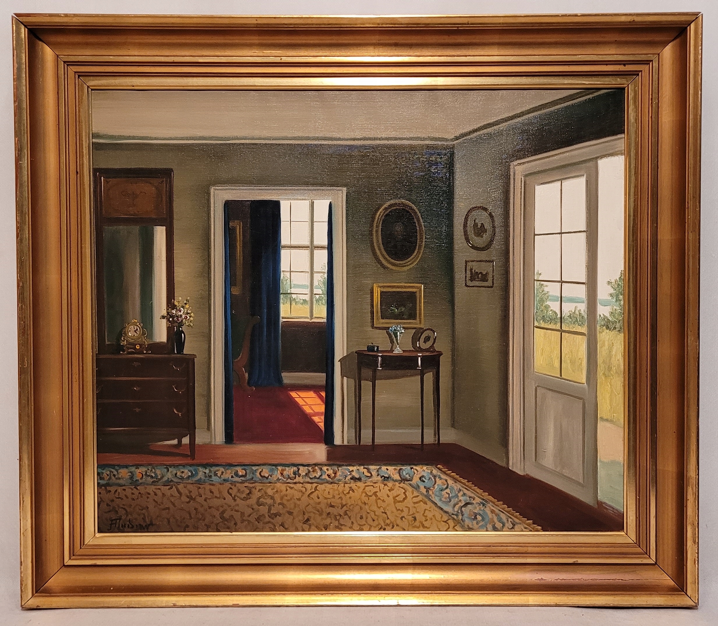 «Стильный интерьер», красивая, подписанная масляная картина.