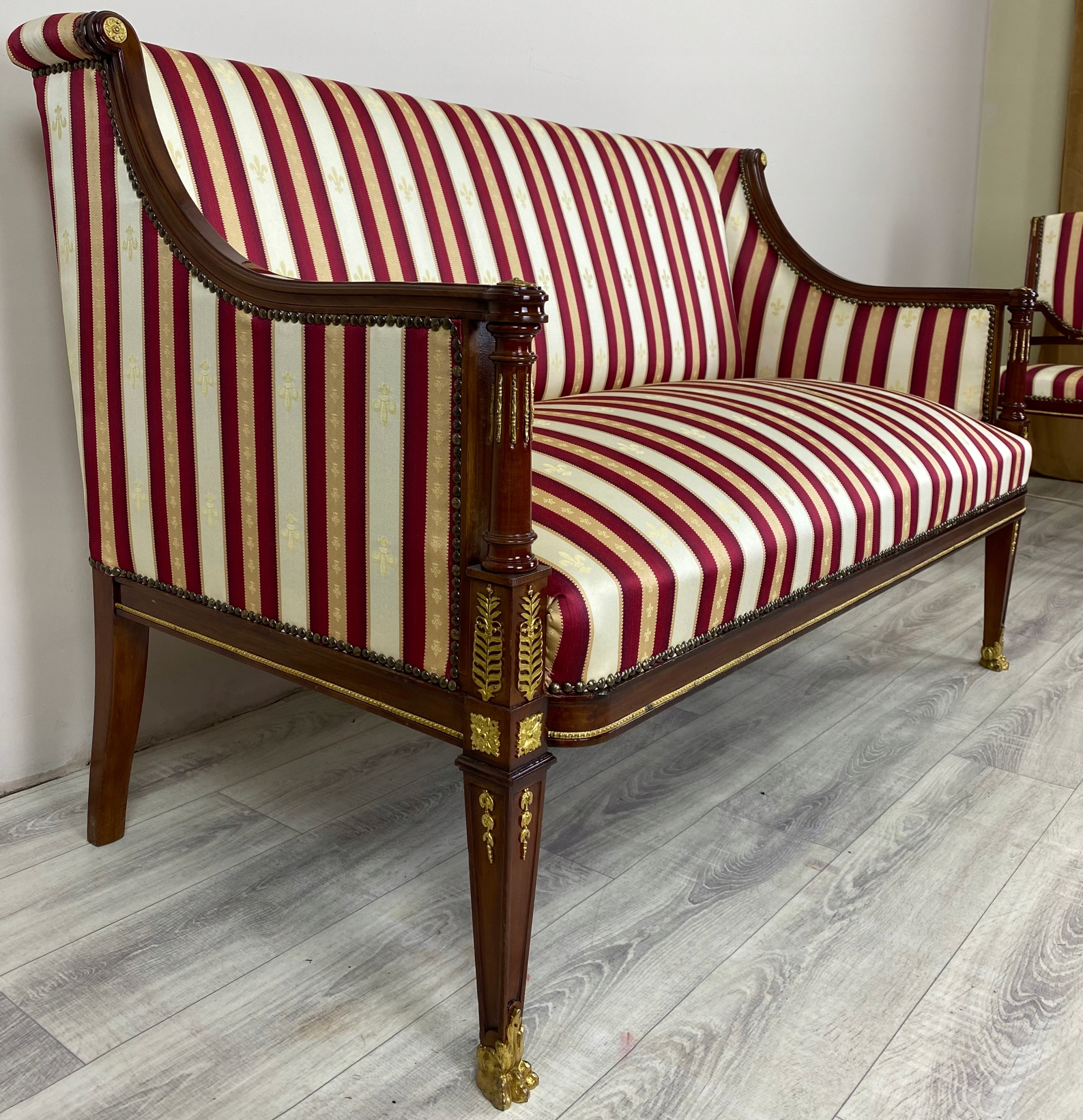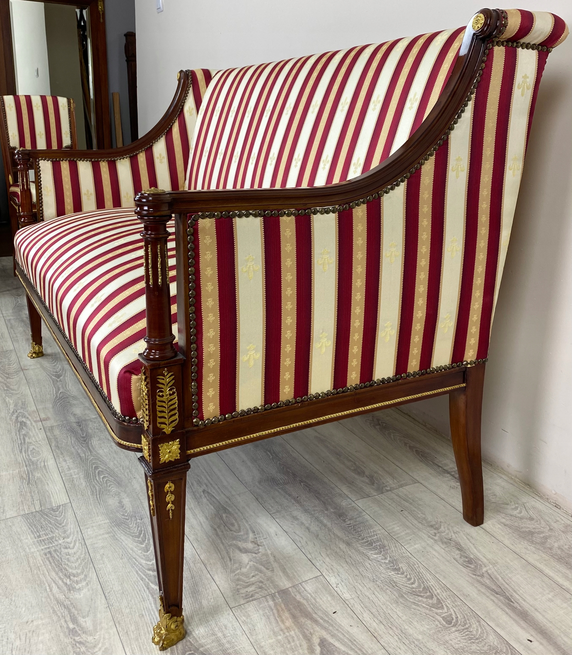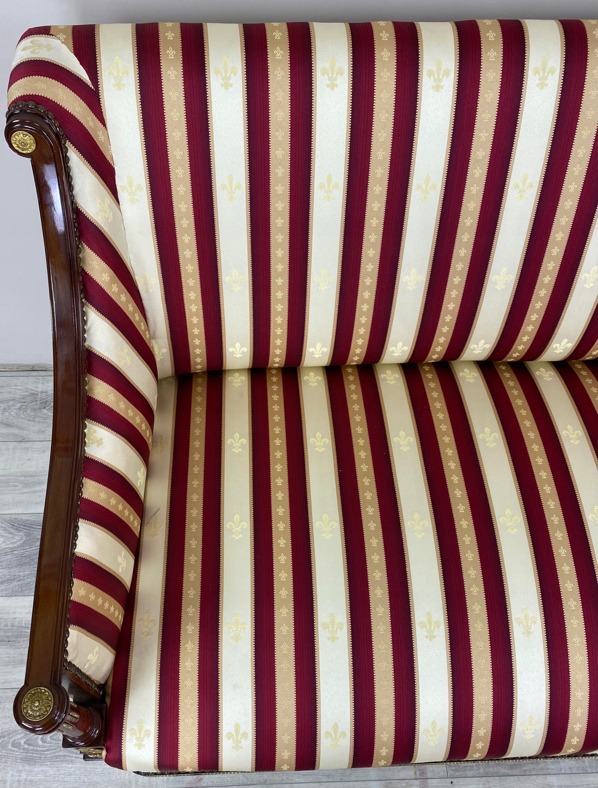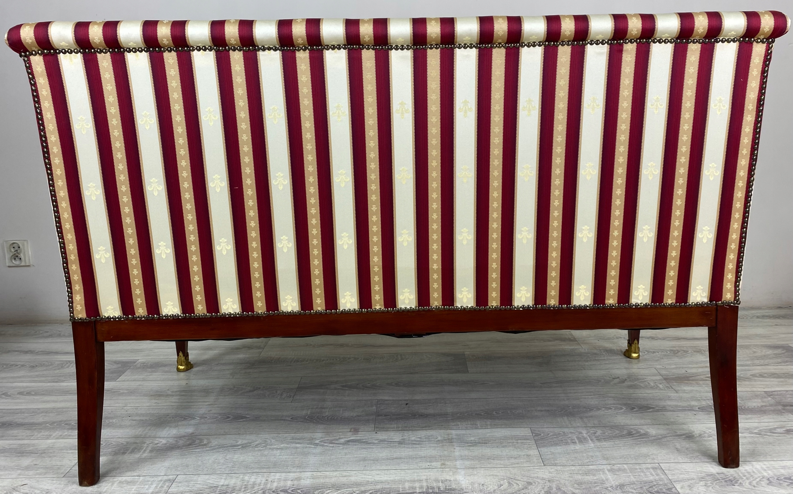 установлен после ремонта. Обновленная древесина и новая обивка.