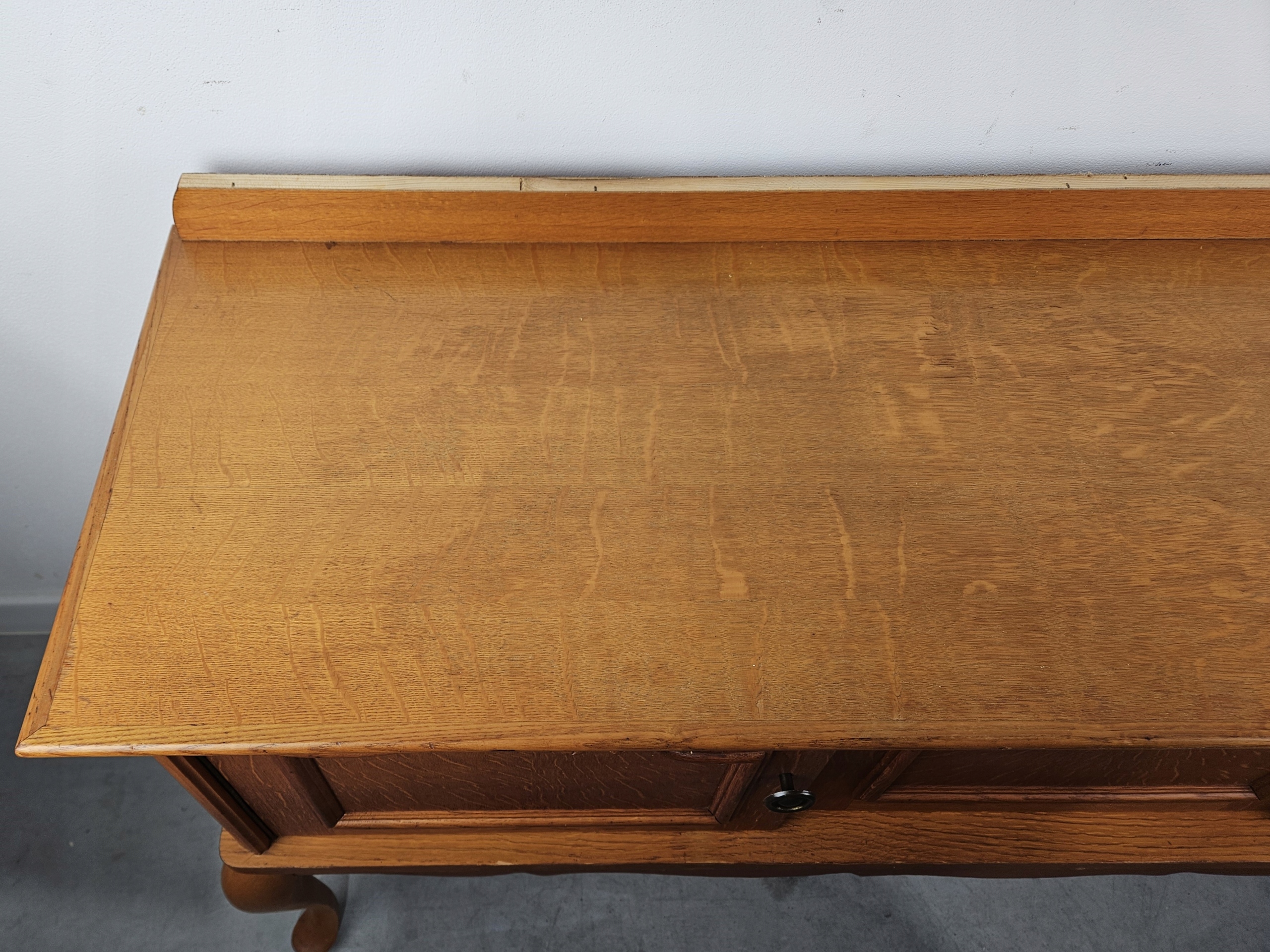Стильный комод под телевизор Ludwik, импортированный из Франции. Немного потрудившись, тумбу можно адаптировать под регулируемый или встраиваемый умывальник. Дубовая структура, затем дубовый шпон. Имеются следы использования в виде царапин, потертостей, следов ремонта (фото). Подробности показаны на фотографиях.