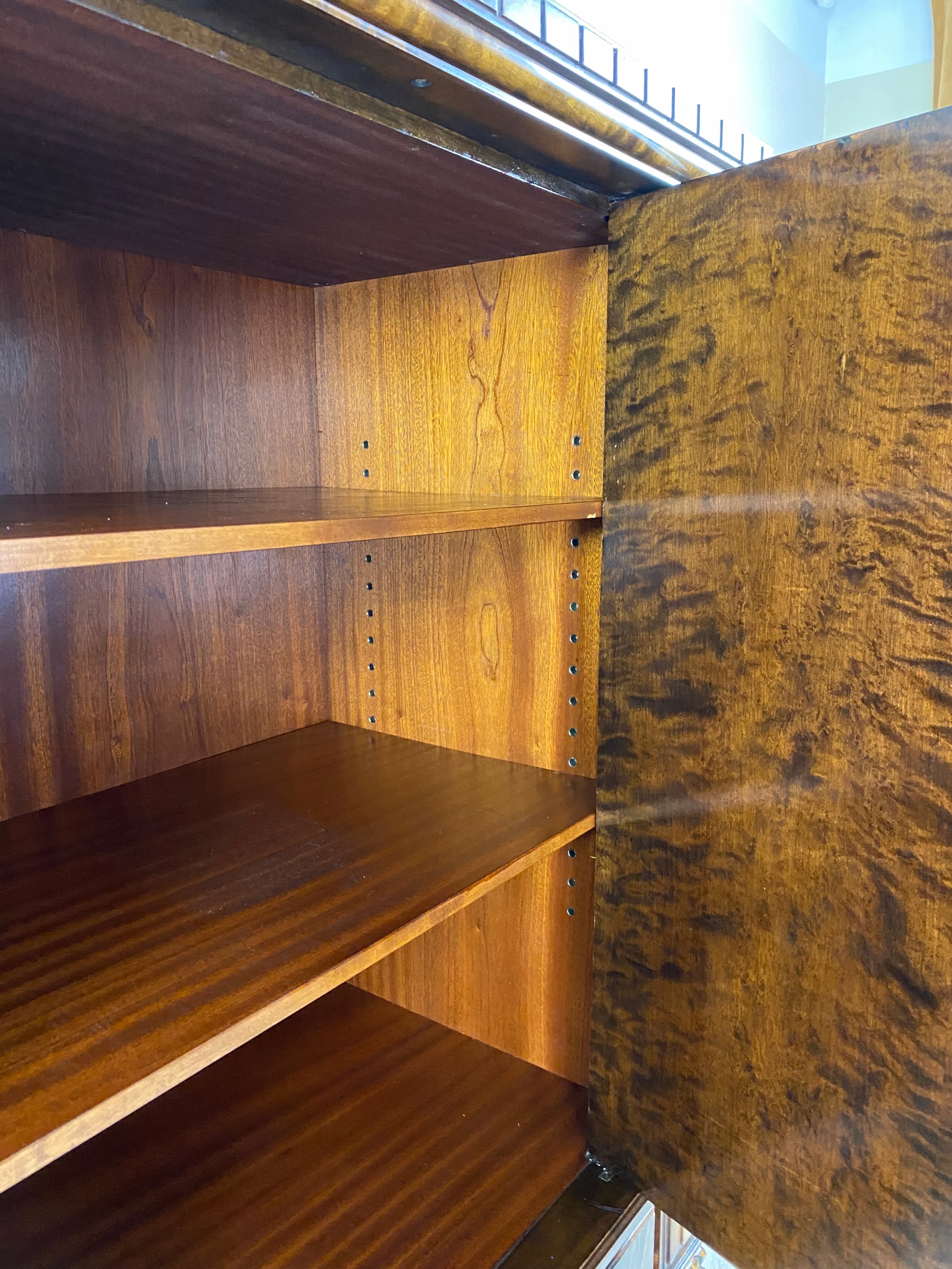 На сайте есть две шарнирные фронты внутри полки. Кроме того, два ящика.
