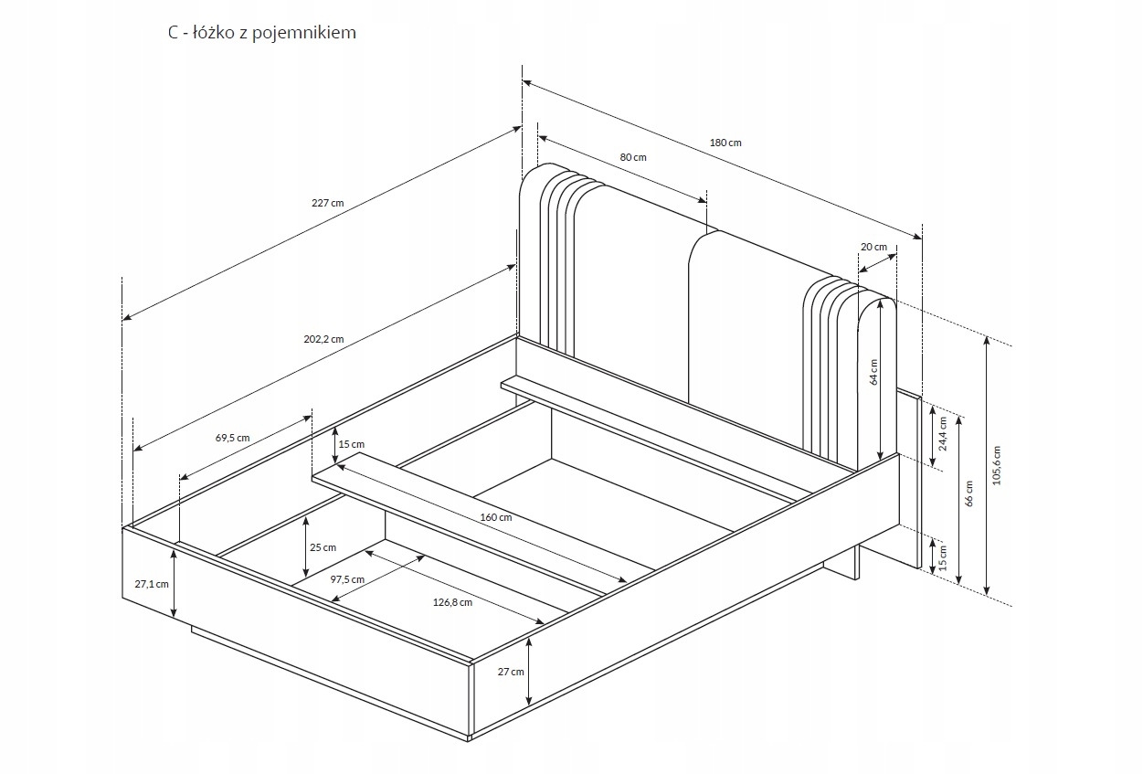 - Кровать с ящиком для постельного белья, мягкие подушки в изголовье, светодиодное освещение с USB-розеткой