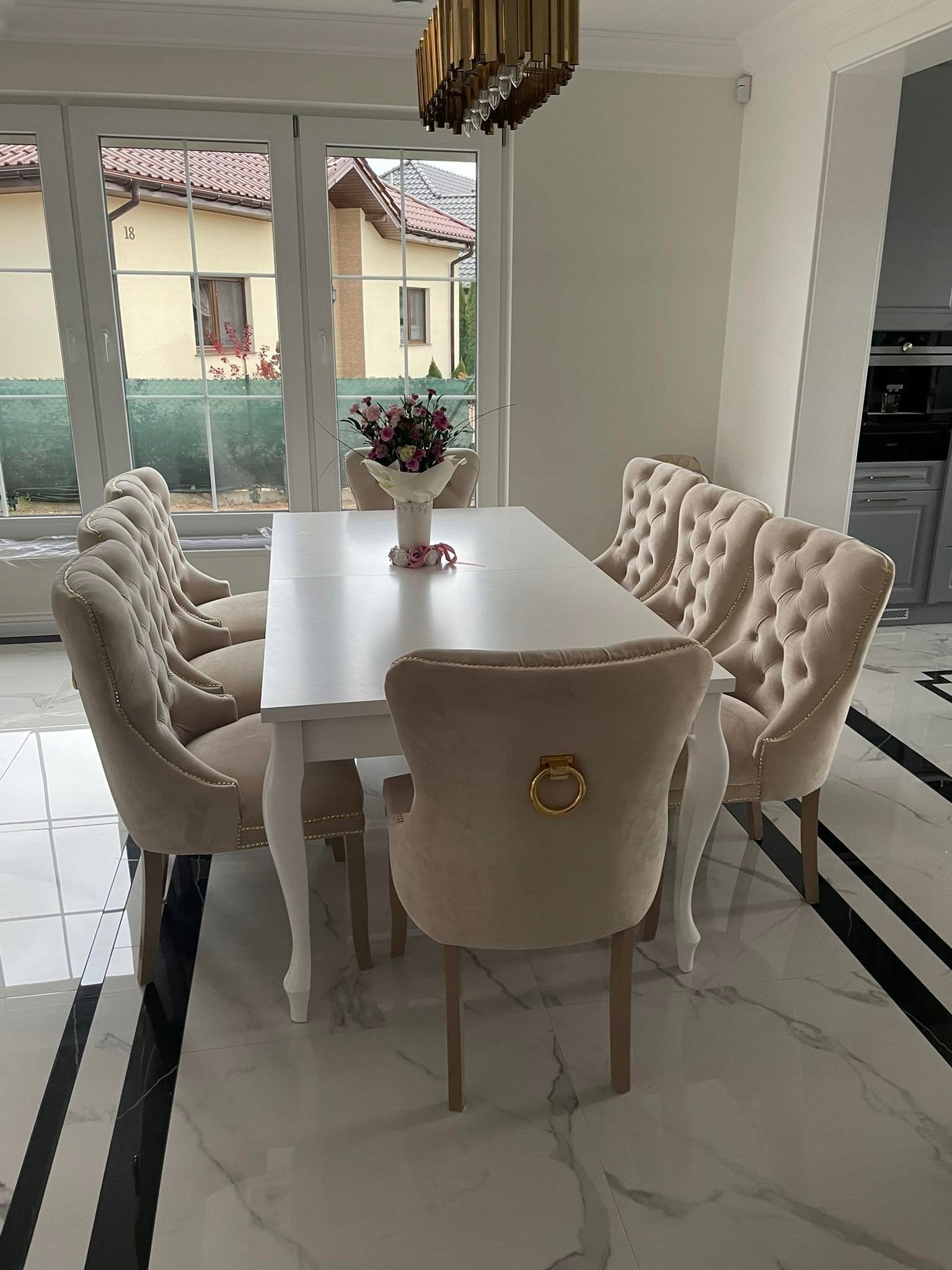 STYLOWY ZESTAW STÓŁ 100x250/350 +8 krzeseł W STYLU GLAMOUR