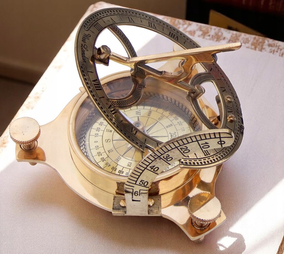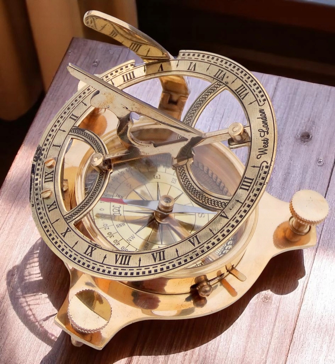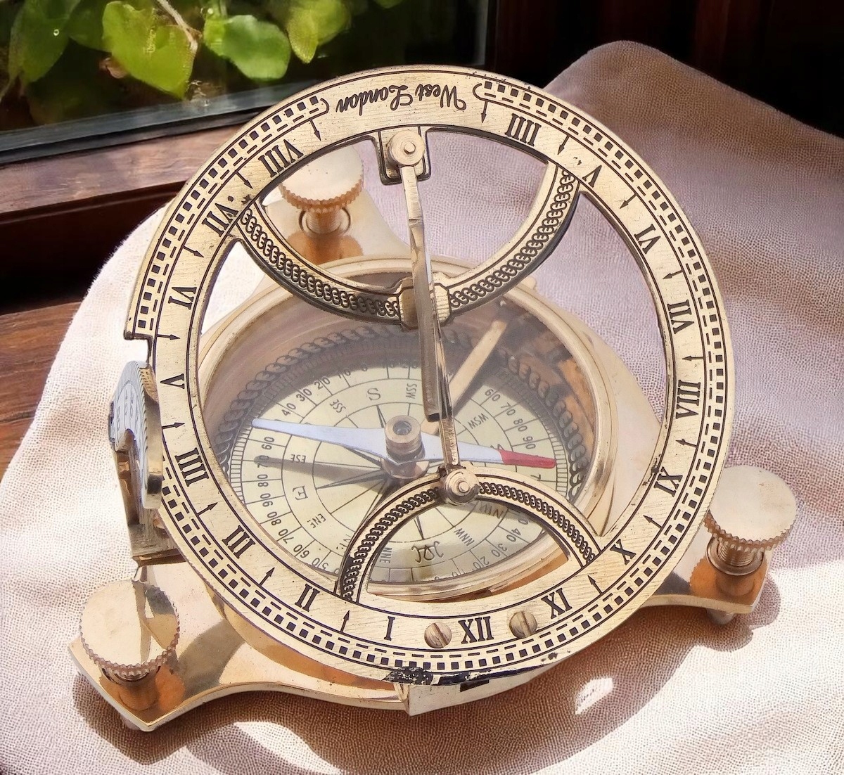 На этом аукционе я предлагаю компас из латуни. Очень привлекательный внешний вид и благородный материал могут стать отличным украшением стола, коллекции или повседневным, но элегантным подарком. Эффективный. Состояние очень хорошее.