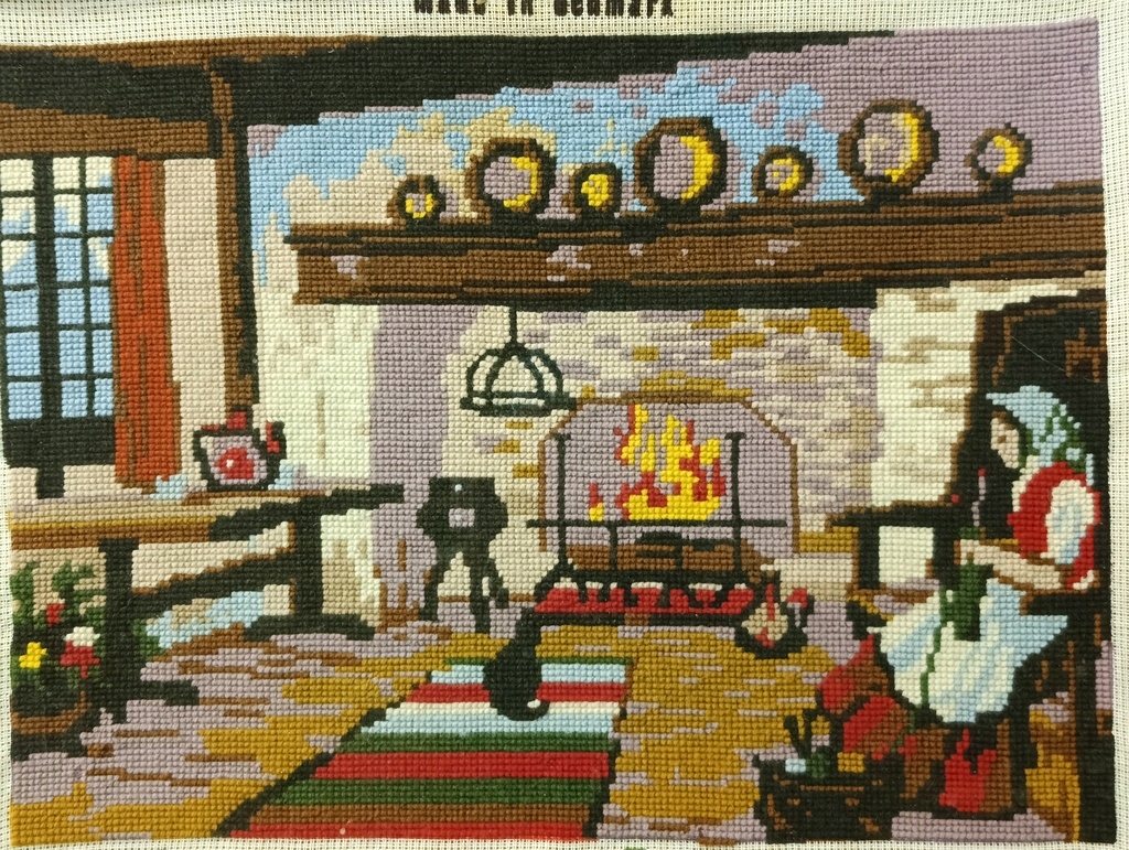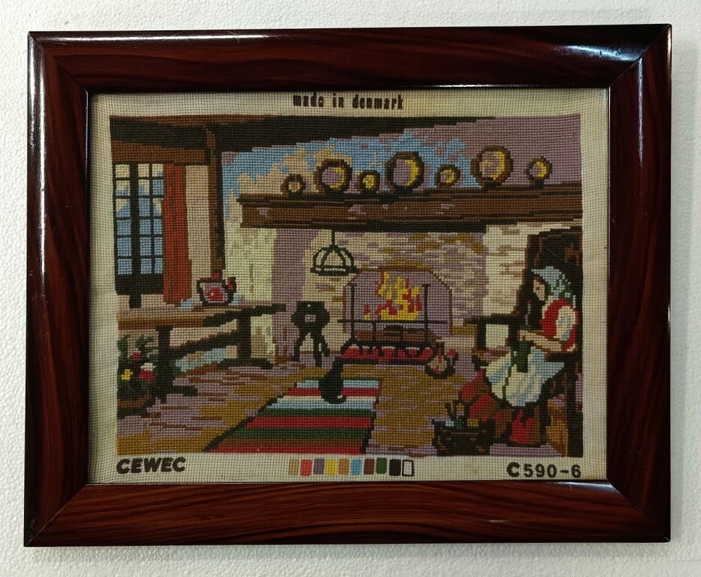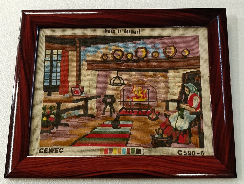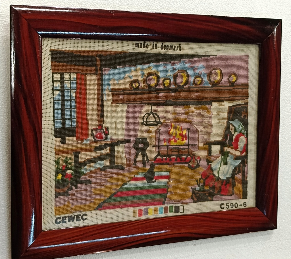Стильний малюнок плетений гобелен «Собака» жанрова сцена дерев’яна рамка 53 х 43 см