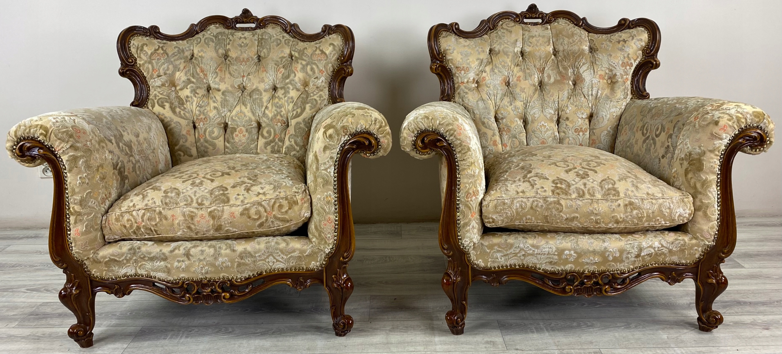 Стильный набор кресел Людвико дивана Ludwik Rococo Rocaille Nut Y94