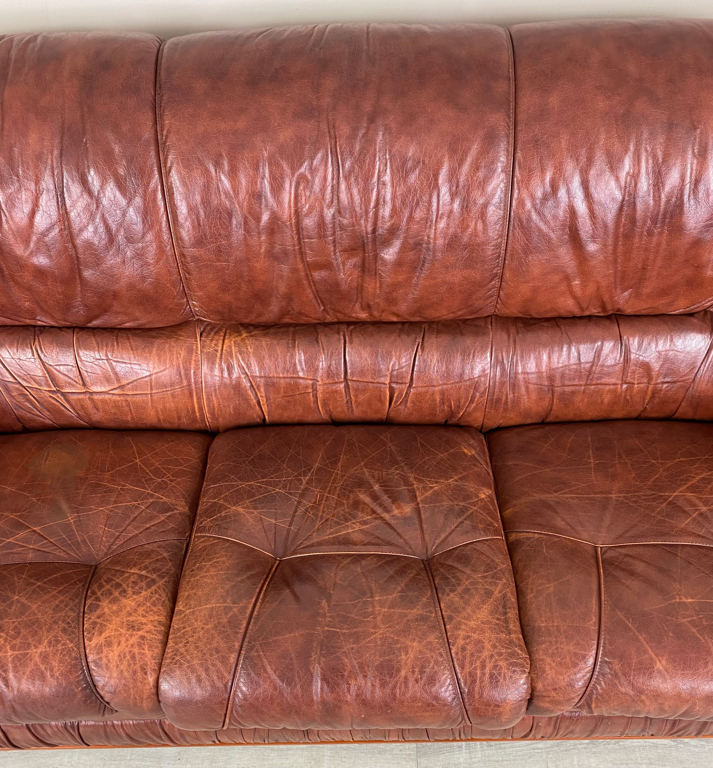 Сиденья и диван, покрытый кожаной обивкой.