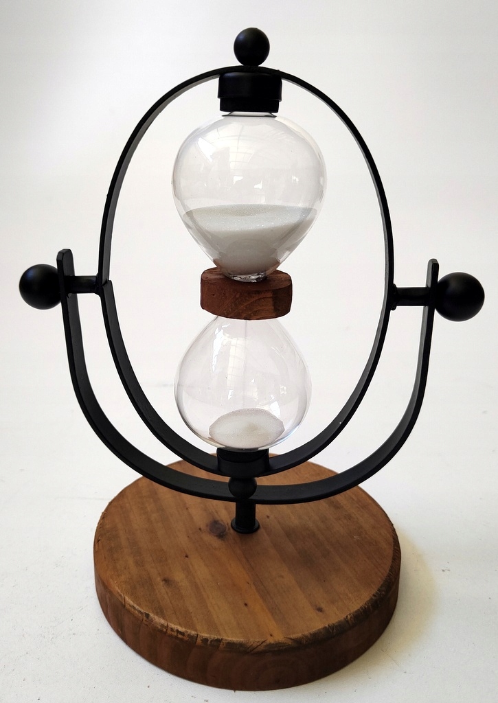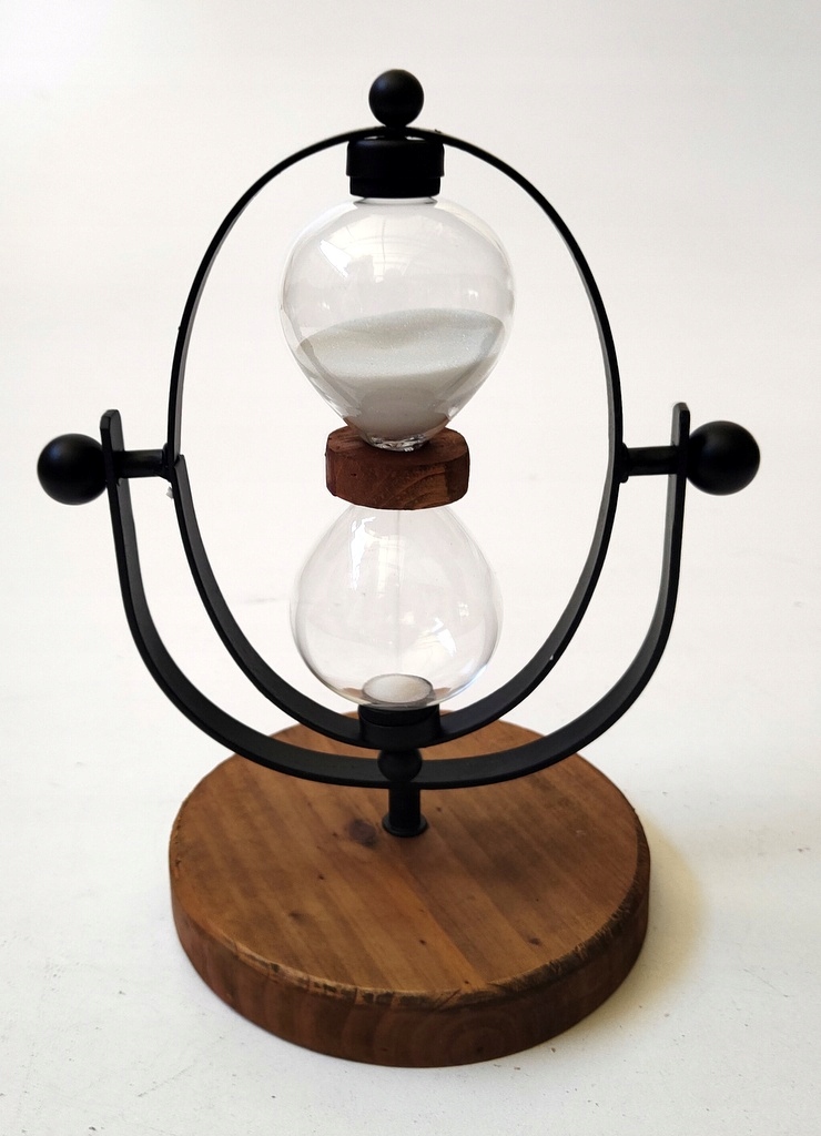 На этом аукционе я предлагаю вам песочные часы из дерева, металла и стекла. Это современный экспонат, но сохранивший старые формы – точная копия. Его очень привлекательный внешний вид и стильмогут стать отличным украшением стола, коллекции или повседневным, но элегантным подарком.