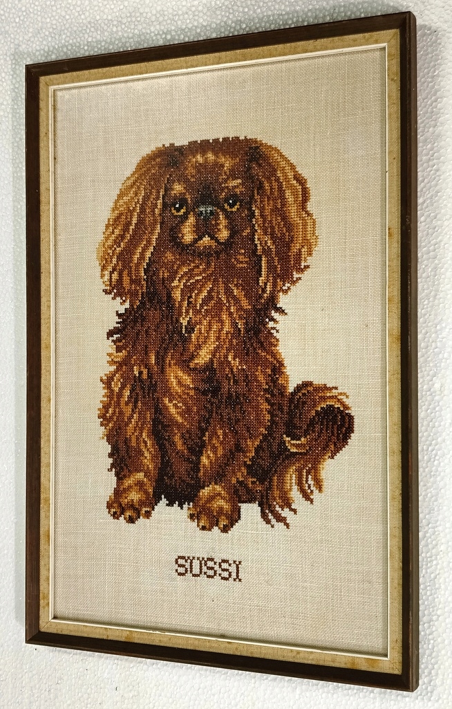 Стильний плетений гобелен із зображенням "Собака" Дерев'яна рамка "Собака" 28 x 42 см