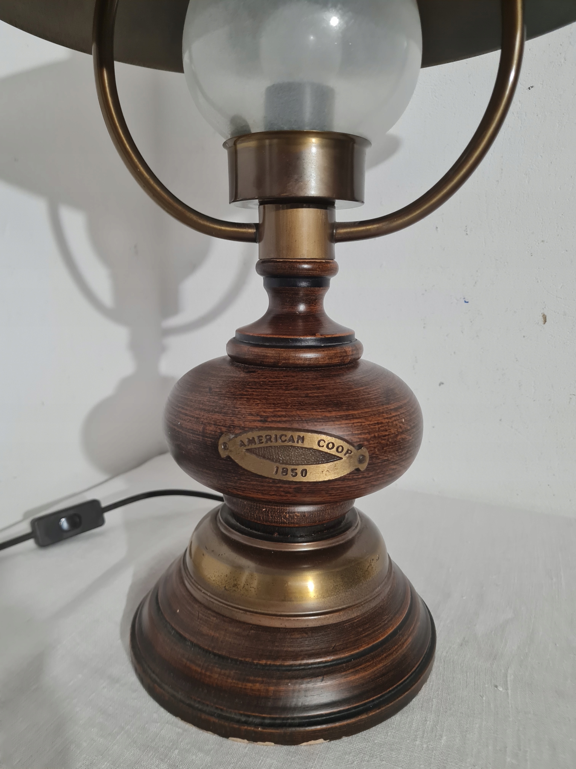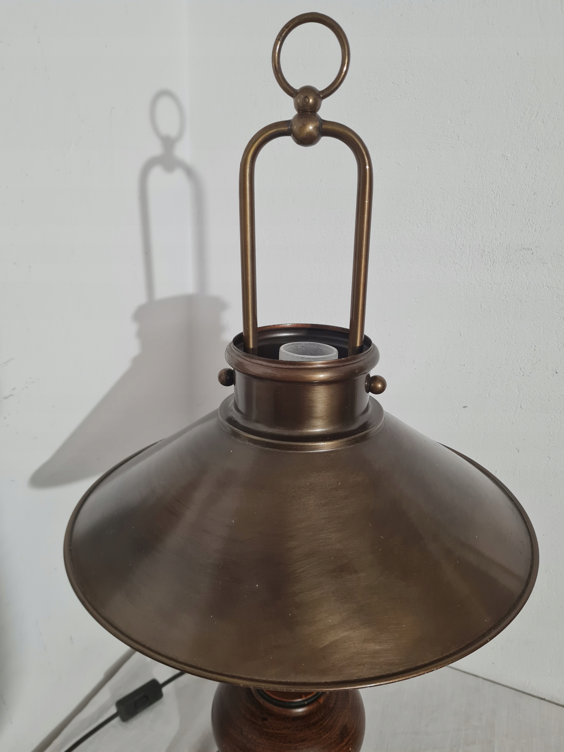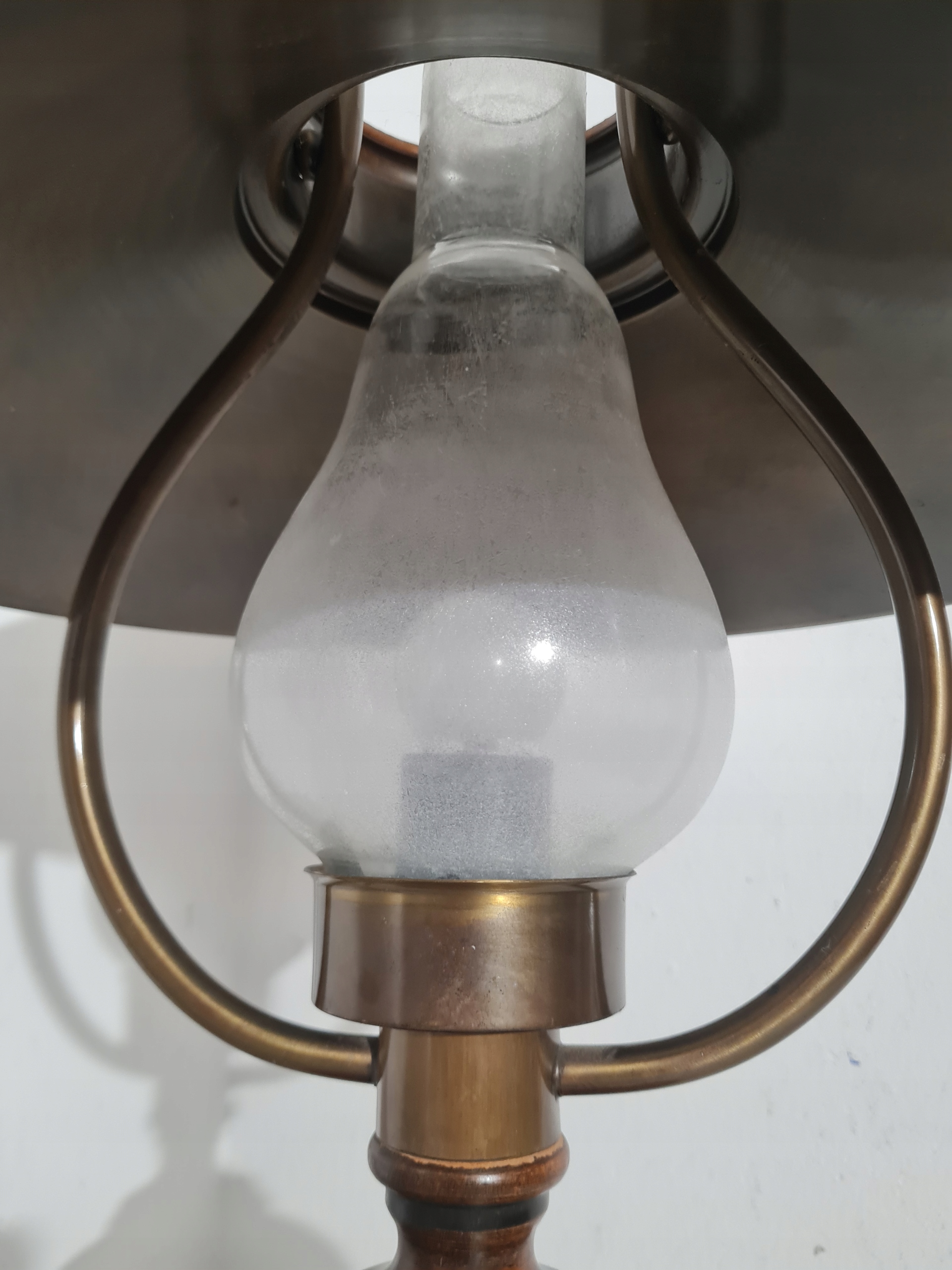 Стильная демонстрационная лампа, стоящая с латунным абажуром