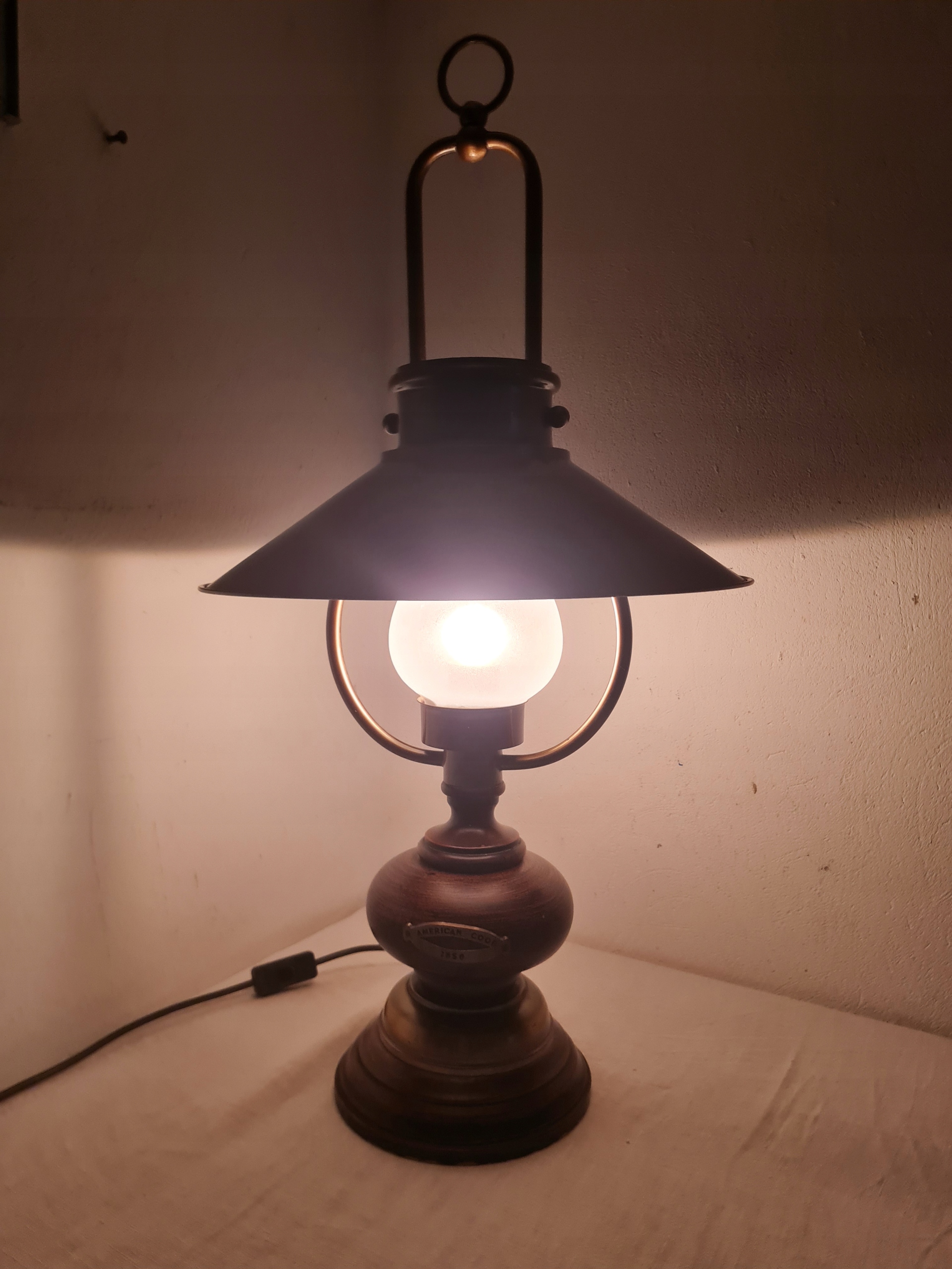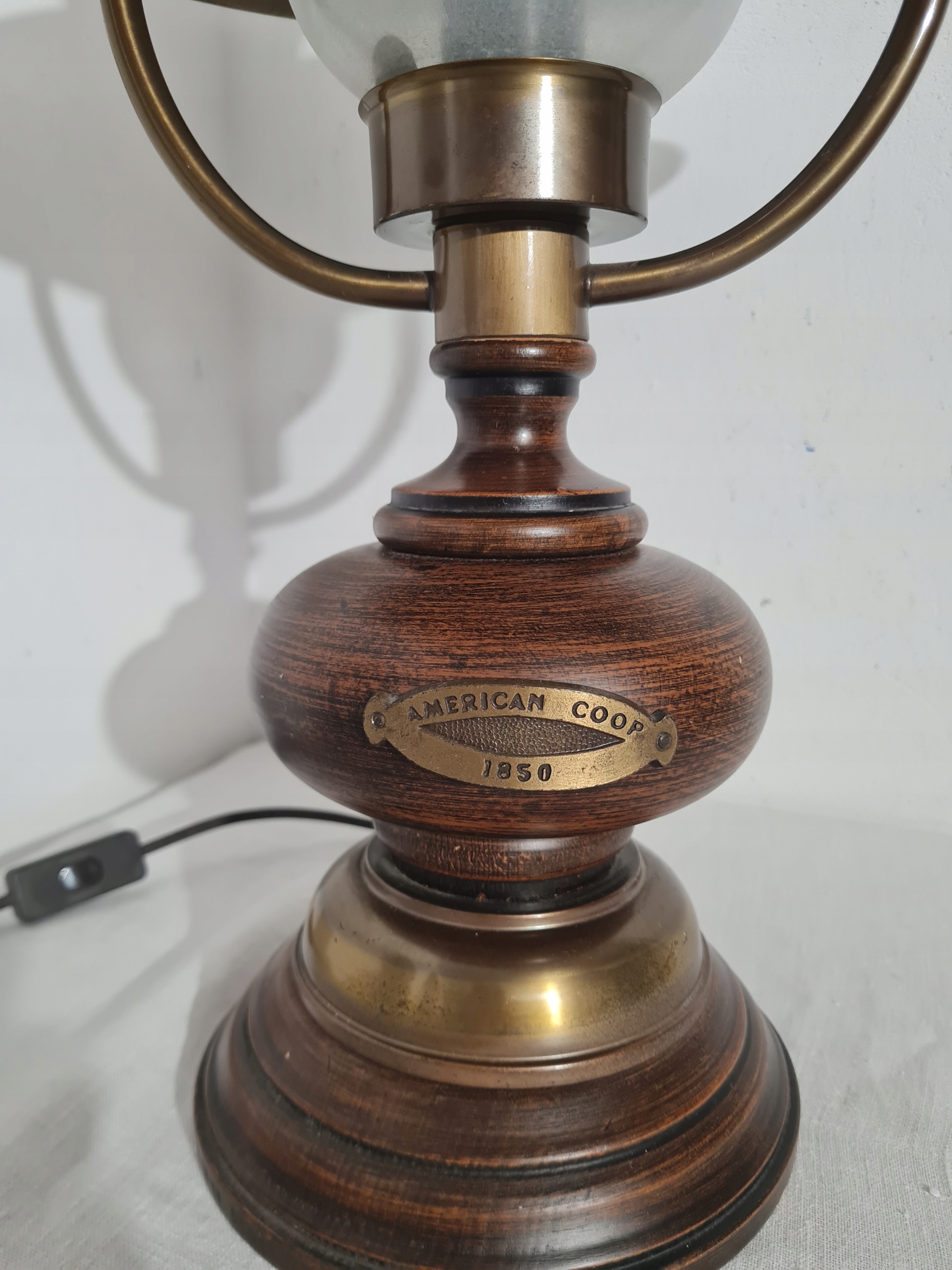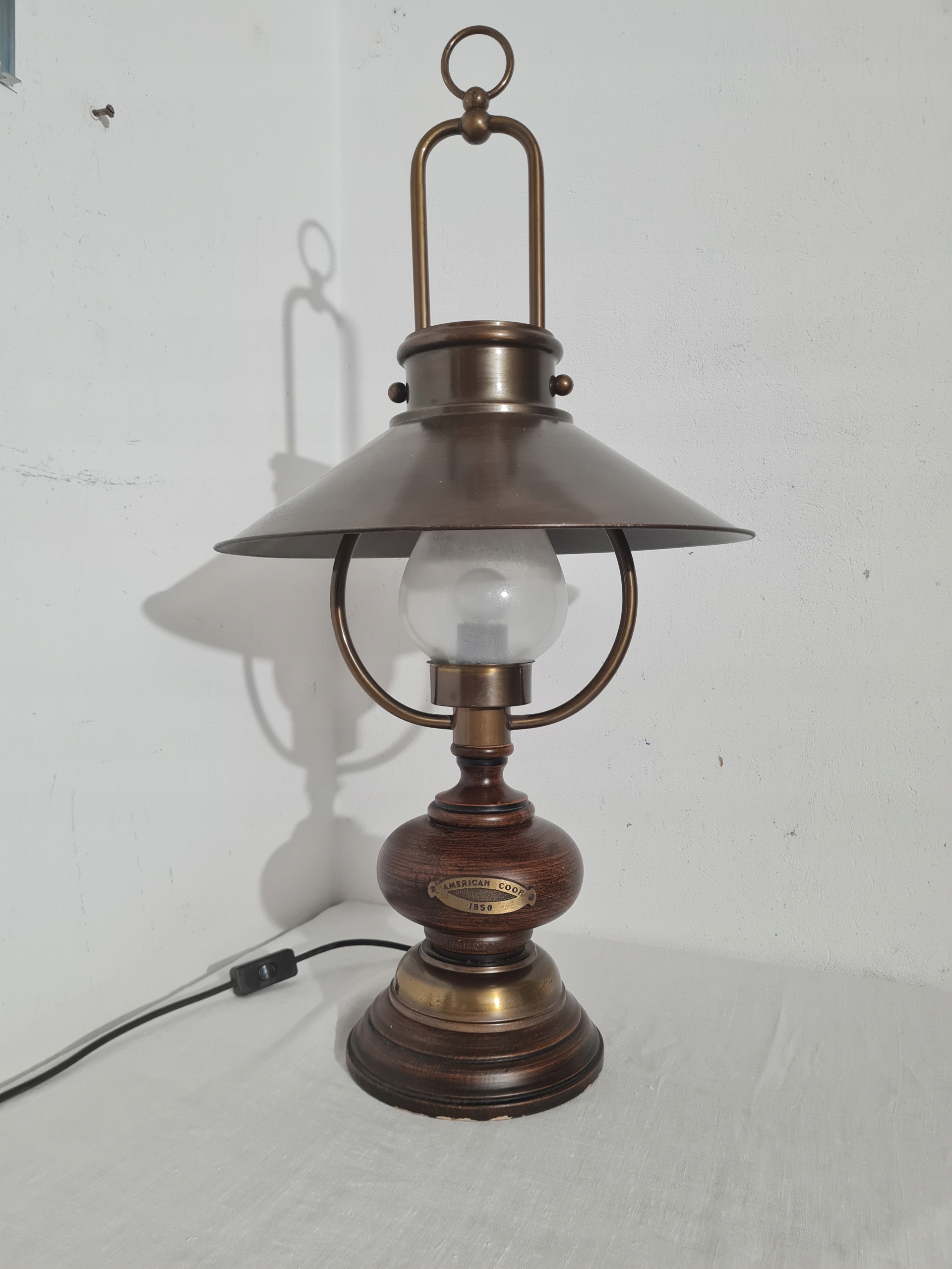 Стильная демонстрационная лампа, стоящая с латунным абажуром