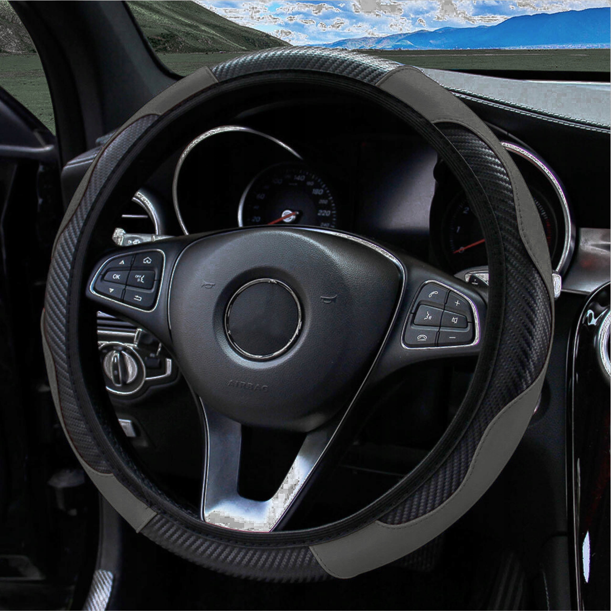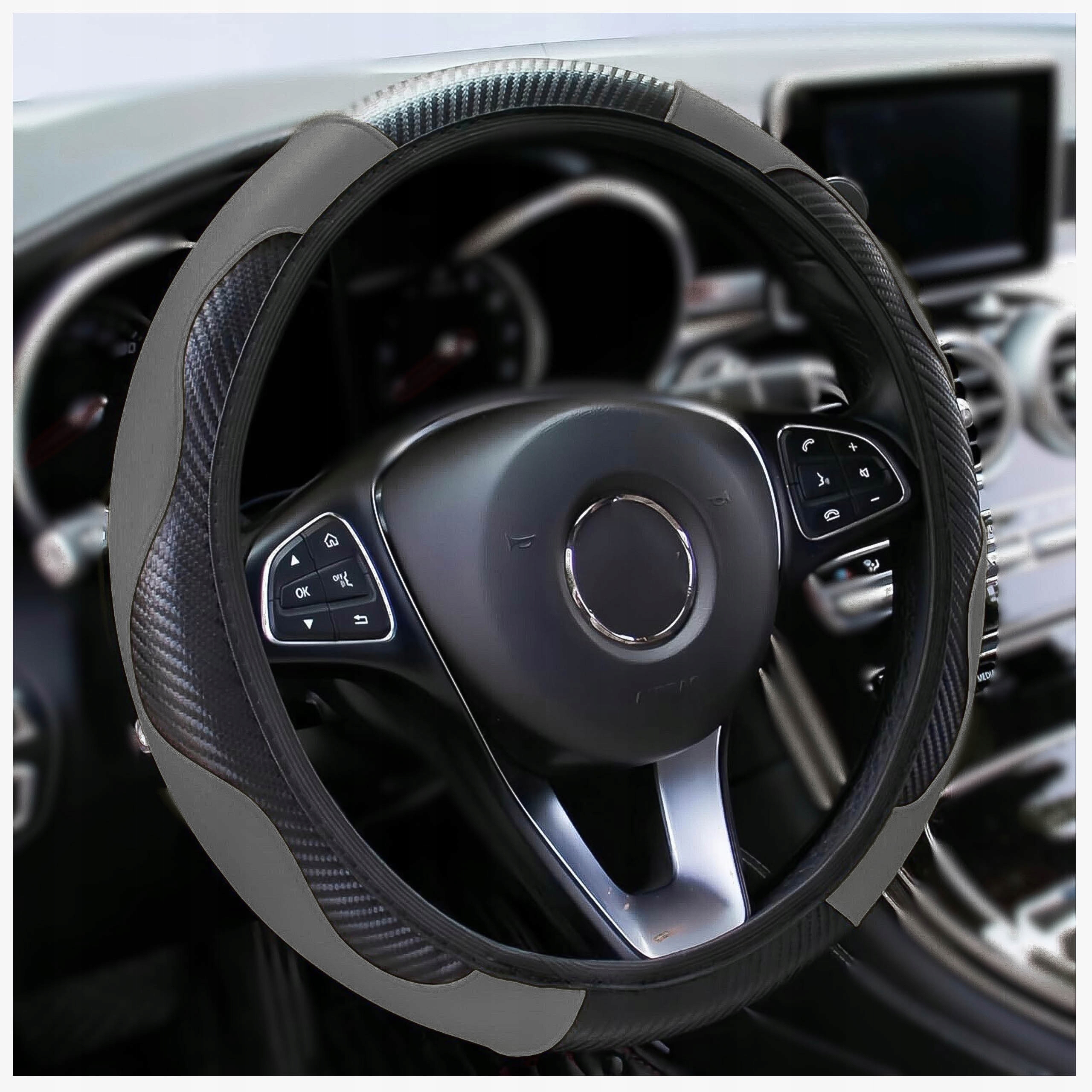 Универсальная крышка крышки для рулевого колеса 36-38 см. Серый черный материал h2>