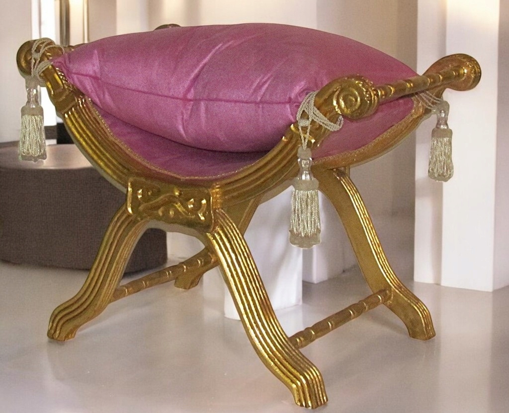 Строительная деревянная мебель на стильных согнутых ногах, тонко вырезанных на всей поверхности. Съемная подушка, украшенная в углах с пирогами; Очень хорошее состояние. h1> можно использовать в качестве подвески для ног, сиденья в зале при смене обуви в ванной во время туалета или в качестве дополнительного места в гостиной, посещая больше гостей.