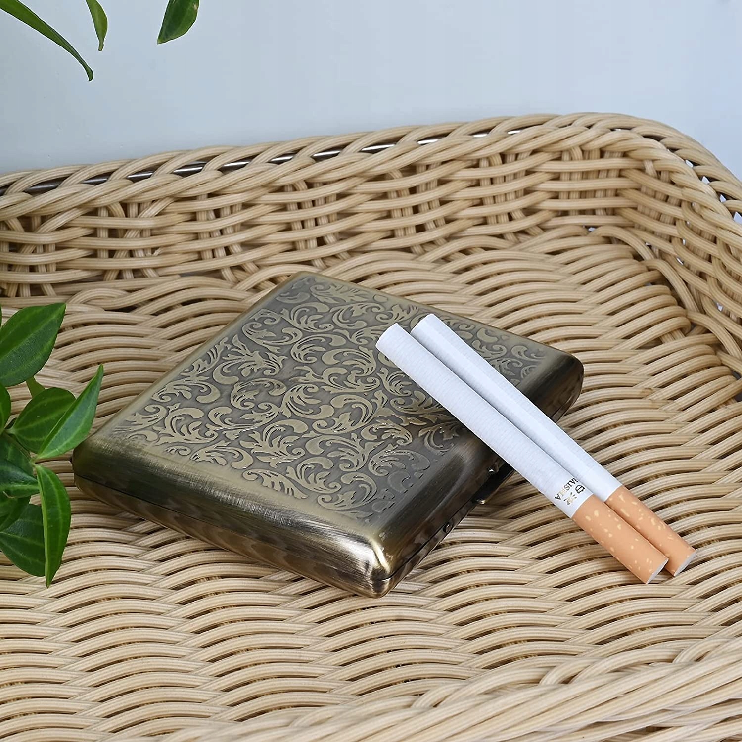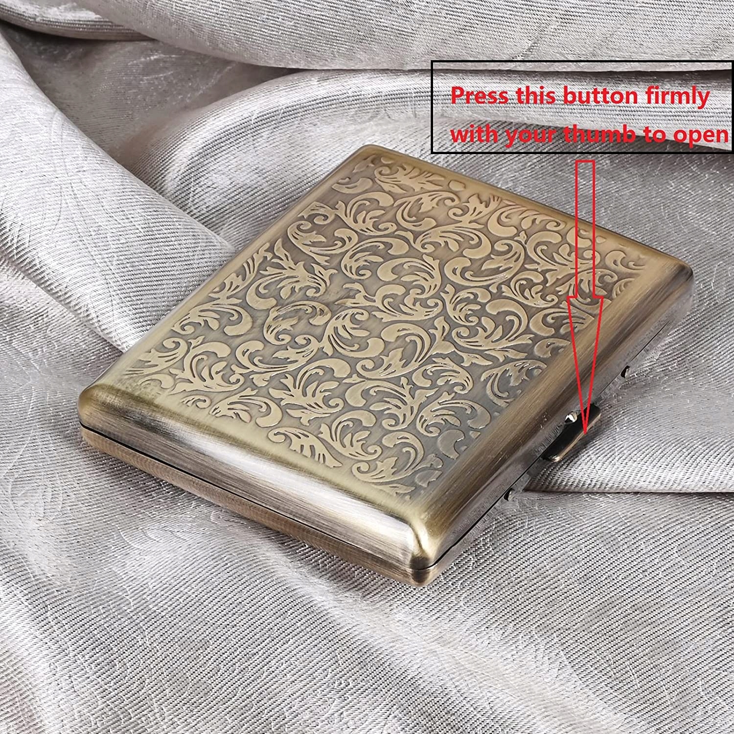 Металлический портсигар в стиле ретро для женщин и мужчин, портативный двусторонний пружинный зажим, открытый портсигар/коробка, вмещает 18-20 сигарет диаметром 100 мм (бронза)