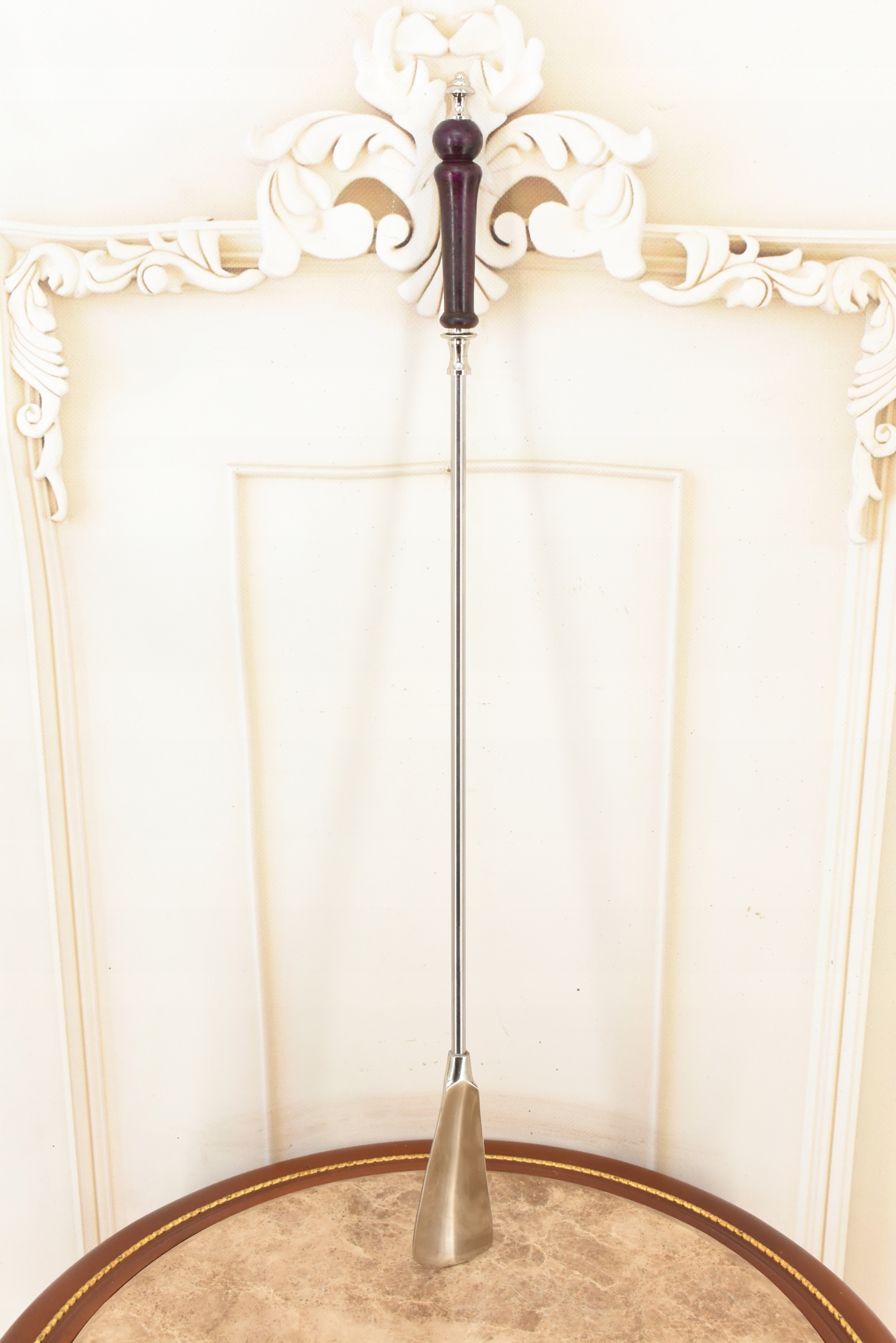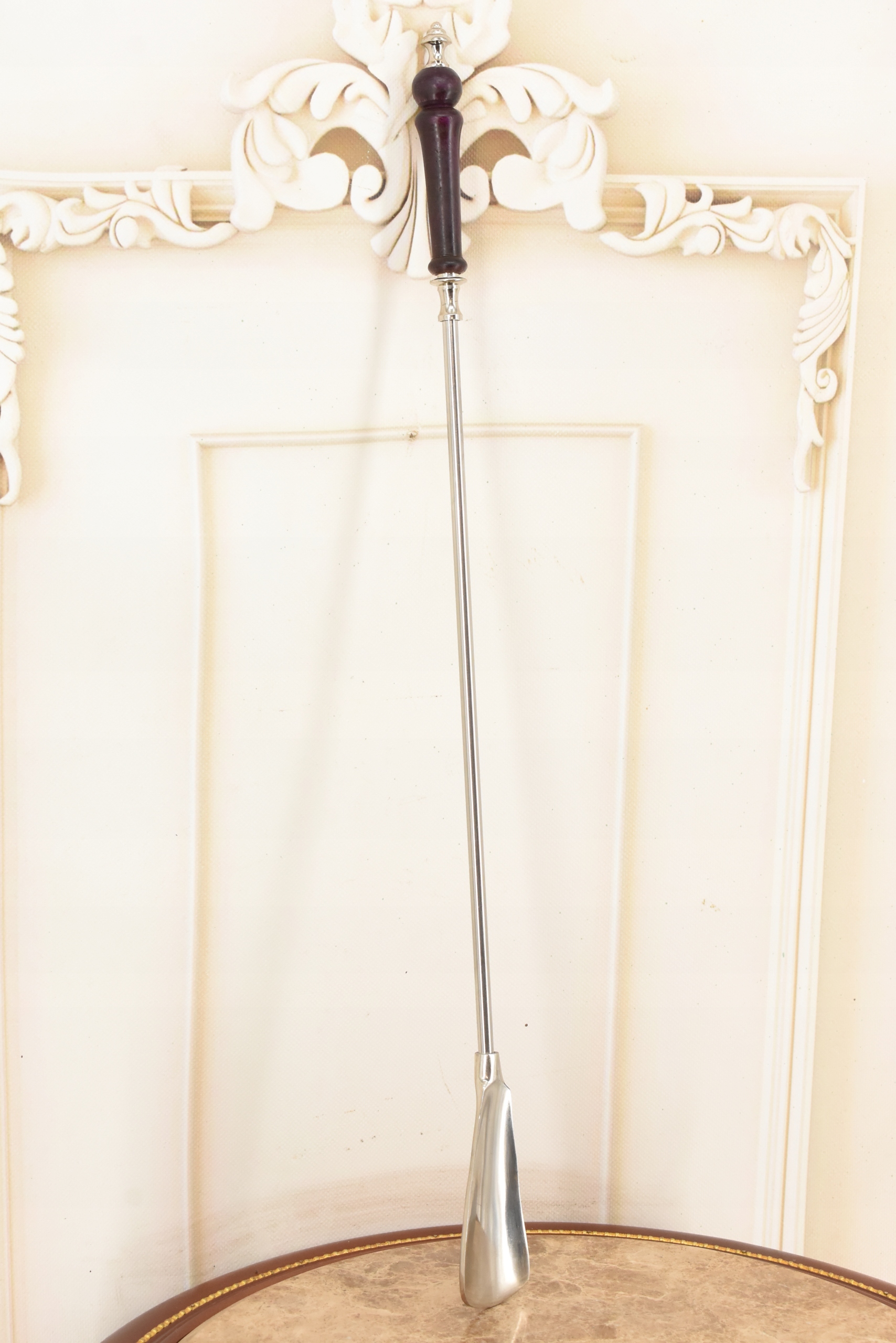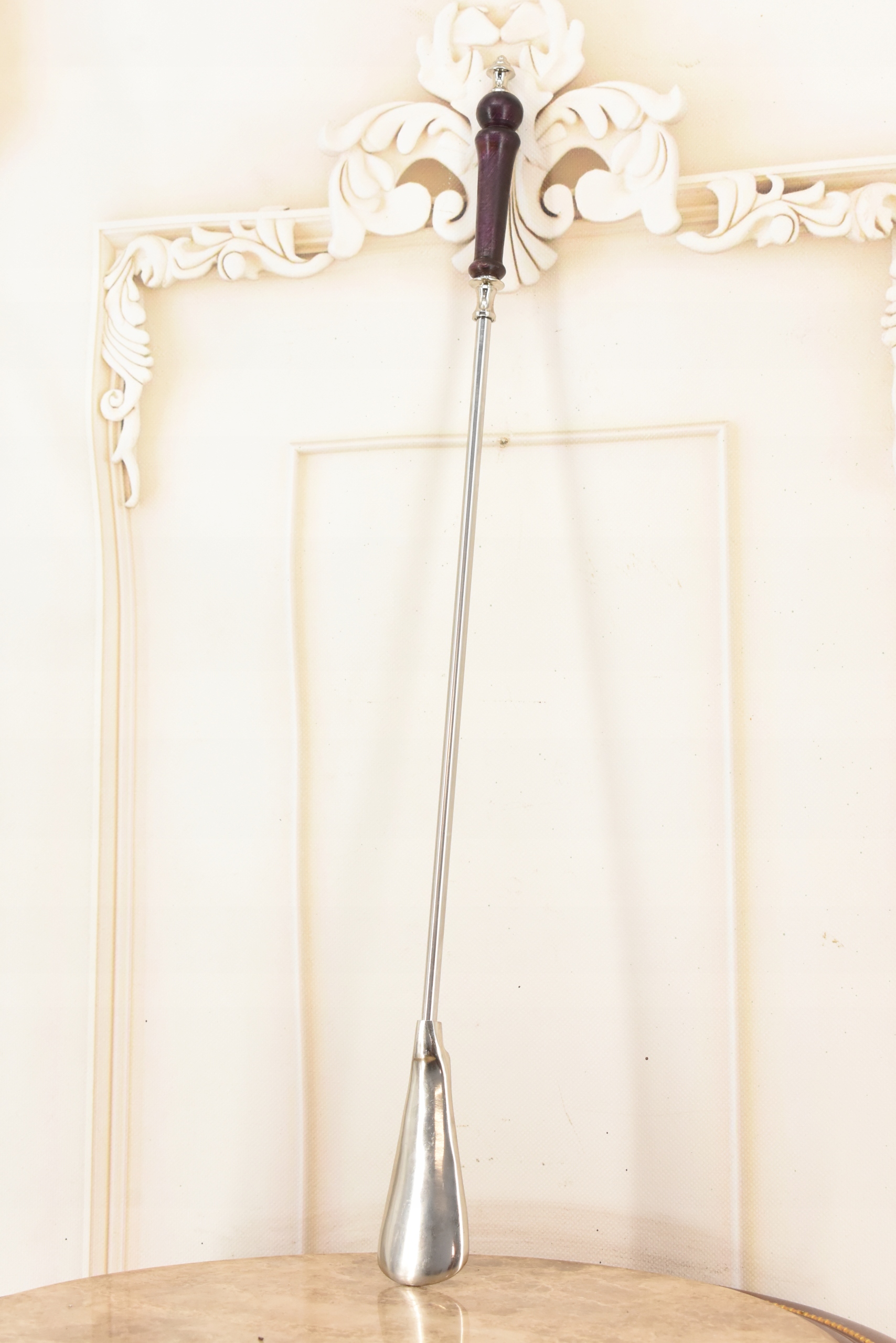 Стильный рожок для обуви - Латунь + Дерево - Серебро 62 см