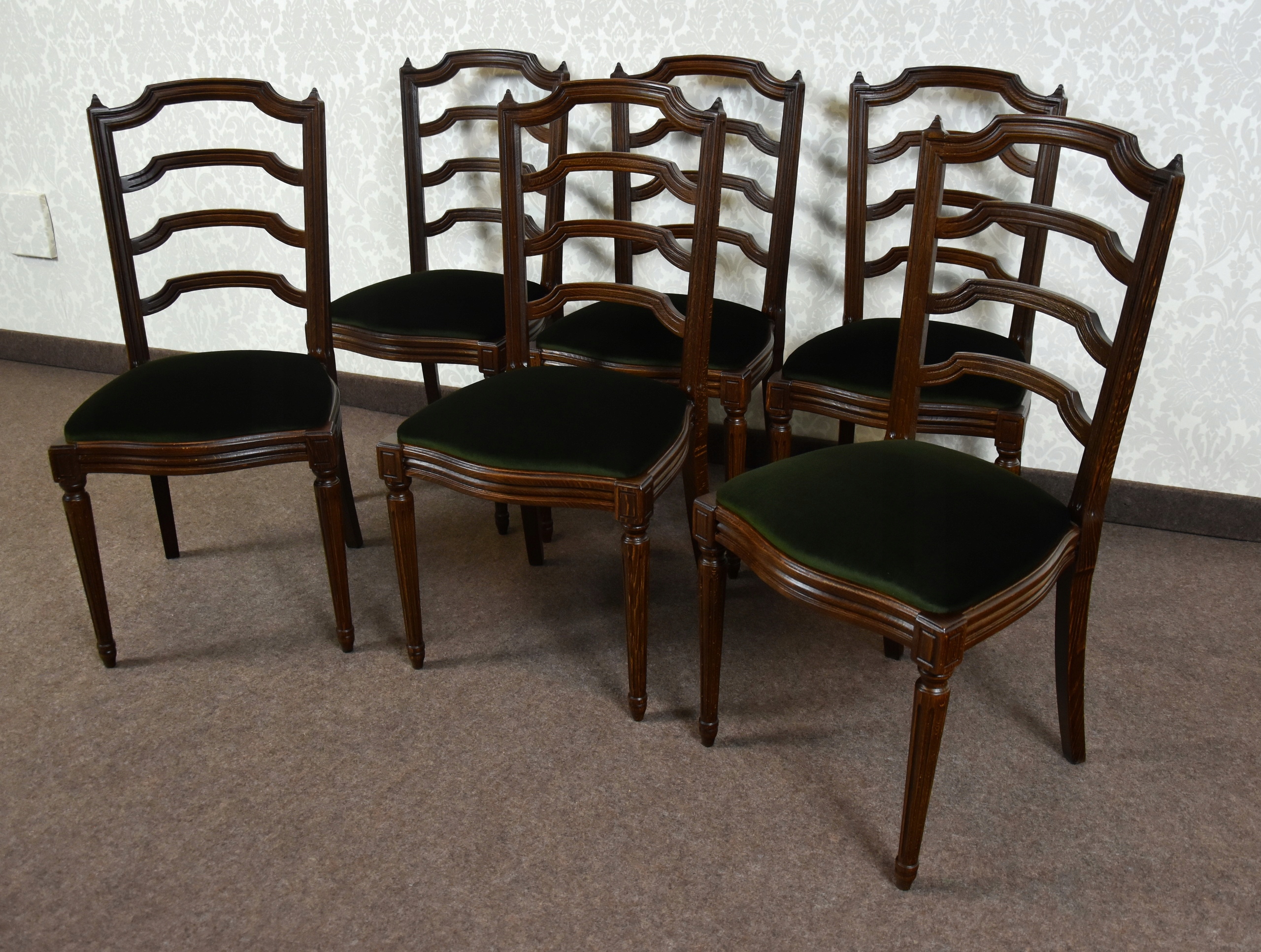 Стулья обязаны своим внешним видом уникальному стилю, который подчеркивает темно-зеленый цвет. использована обивочная ткань. Обивочная ткань представляет собой очень плотный плюш, который привнесет в интерьер много элегантности и шика. Стоит отметить, что обивка совершенно новая. В сиденье использованы пружины, благодаря которым сохраняется комфорт сидения.