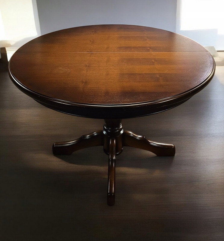 Стол из дуба в деревенском стиле. Его поставили на тонкую ножку. Несмотря на возраст 1980-1990-х годов, мебель находится в хорошем состоянии – устойчивая и без каких-либо дефектов. Очень практичный и в то же время декоративный, он, безусловно, станет отличным практичным украшением любой гостиной и свидетелем многих великих событий. Стол указан как бывший в употреблении и имеет незначительные следы использования, которые практически невозможно запечатлеть глазом камеры