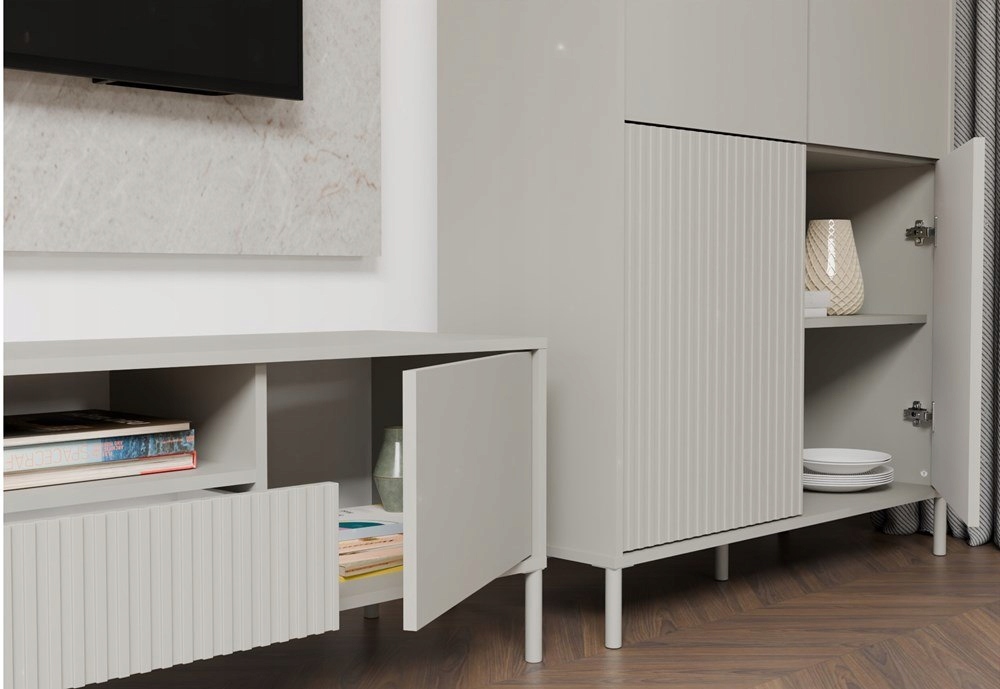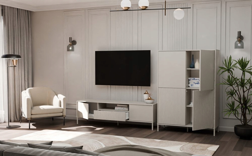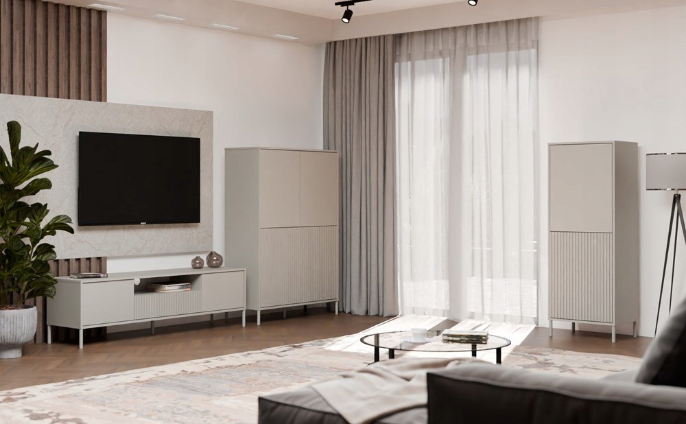 Сайт представляет собой современный и функциональный предмет мебели, который будет отлично поработать в гостиной, комнате для гостей, спальне или офисе. Благодаря большей ширине (103,5 см), он предлагает еще больше места для хранения, поддерживая элегантный и чердак. Комбинация двери с гладким фронтом и дверью с искалеченной отделкой добавляет стильный контраст, а система наконечника допускает удобное открытие без ручек. Нейтралитет, которая легко вписывается в различные декоративные стили