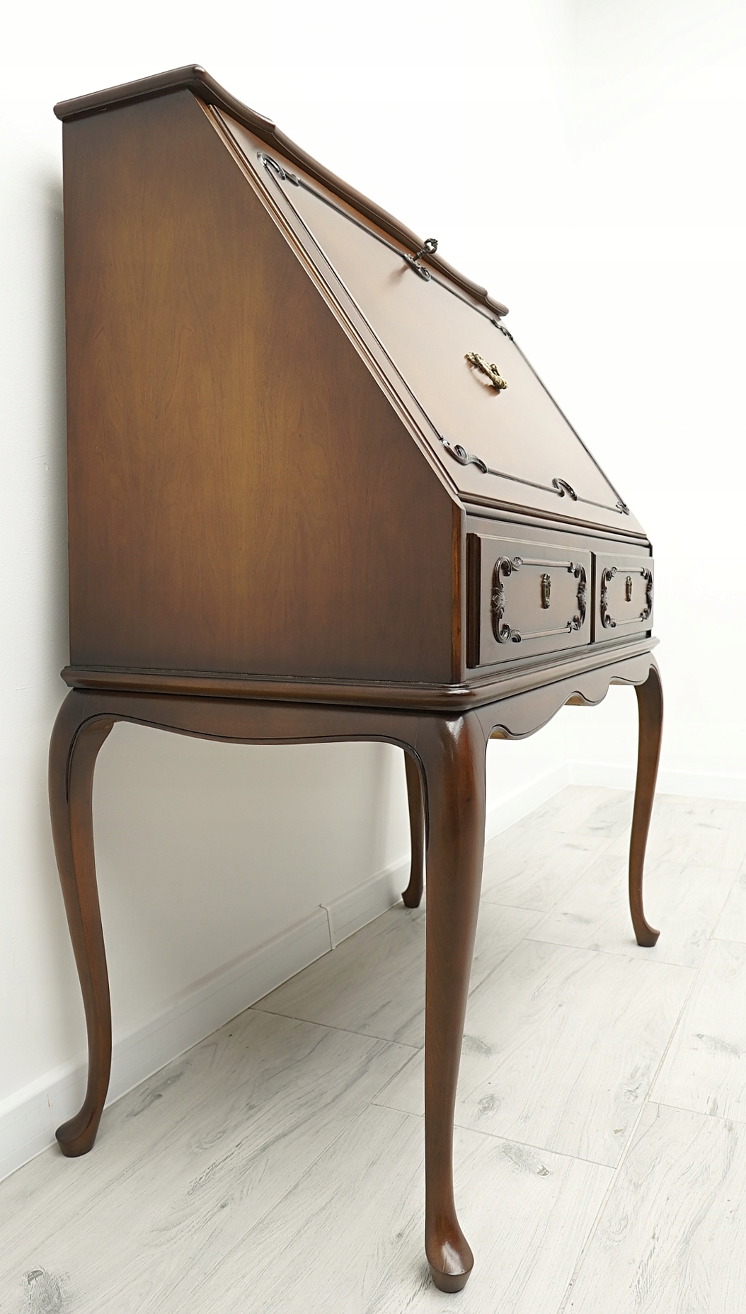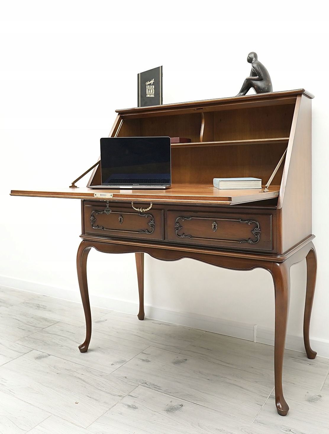 Этот очаровательный секретер изготовлен из древесины тополя. Складная столешница и два выдвижных ящика делают его чрезвычайно функциональным и вместительным предметом мебели, который впишется в любой, даже самый требовательный интерьер. Идеально подходит в качестве комода, письменного стола или шкафа для документов. Высокие ножки, на которых она стоит, и ажурный красивый декор делают мебель очень элегантной и шикарной.