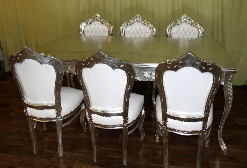 СЕРЕБРЯНЫЙ СТОЛ + 6 СТУЛЬЕВ