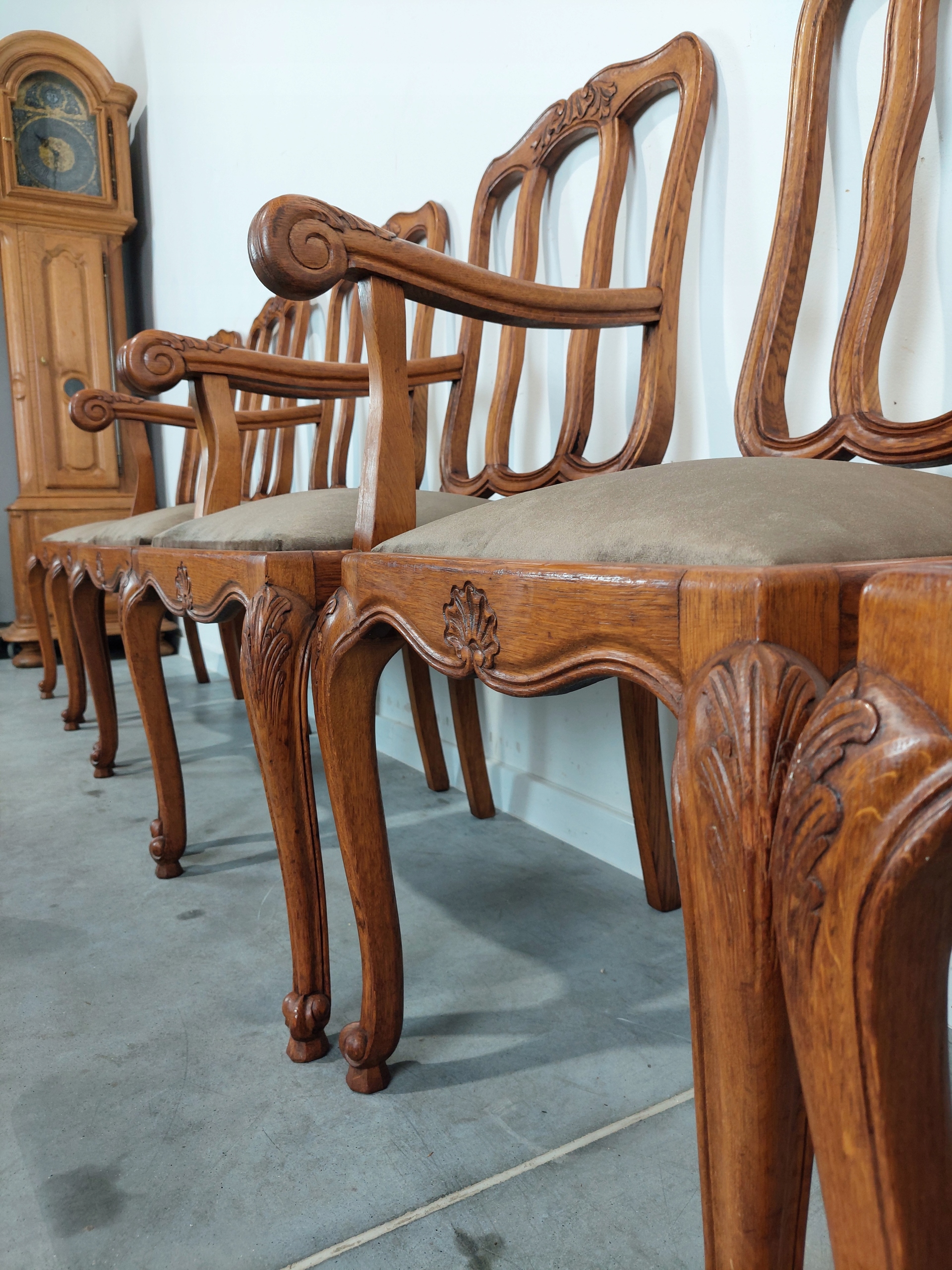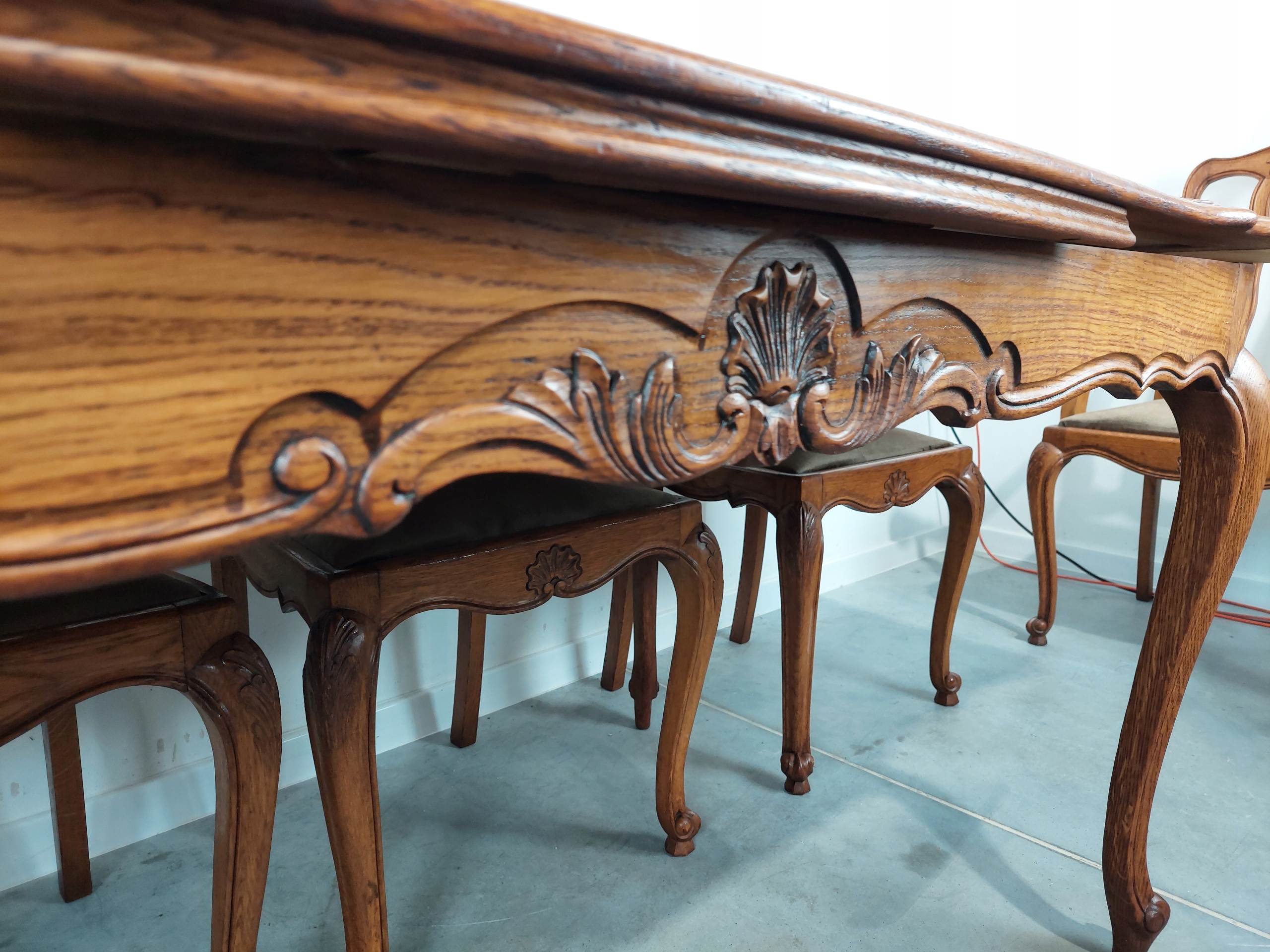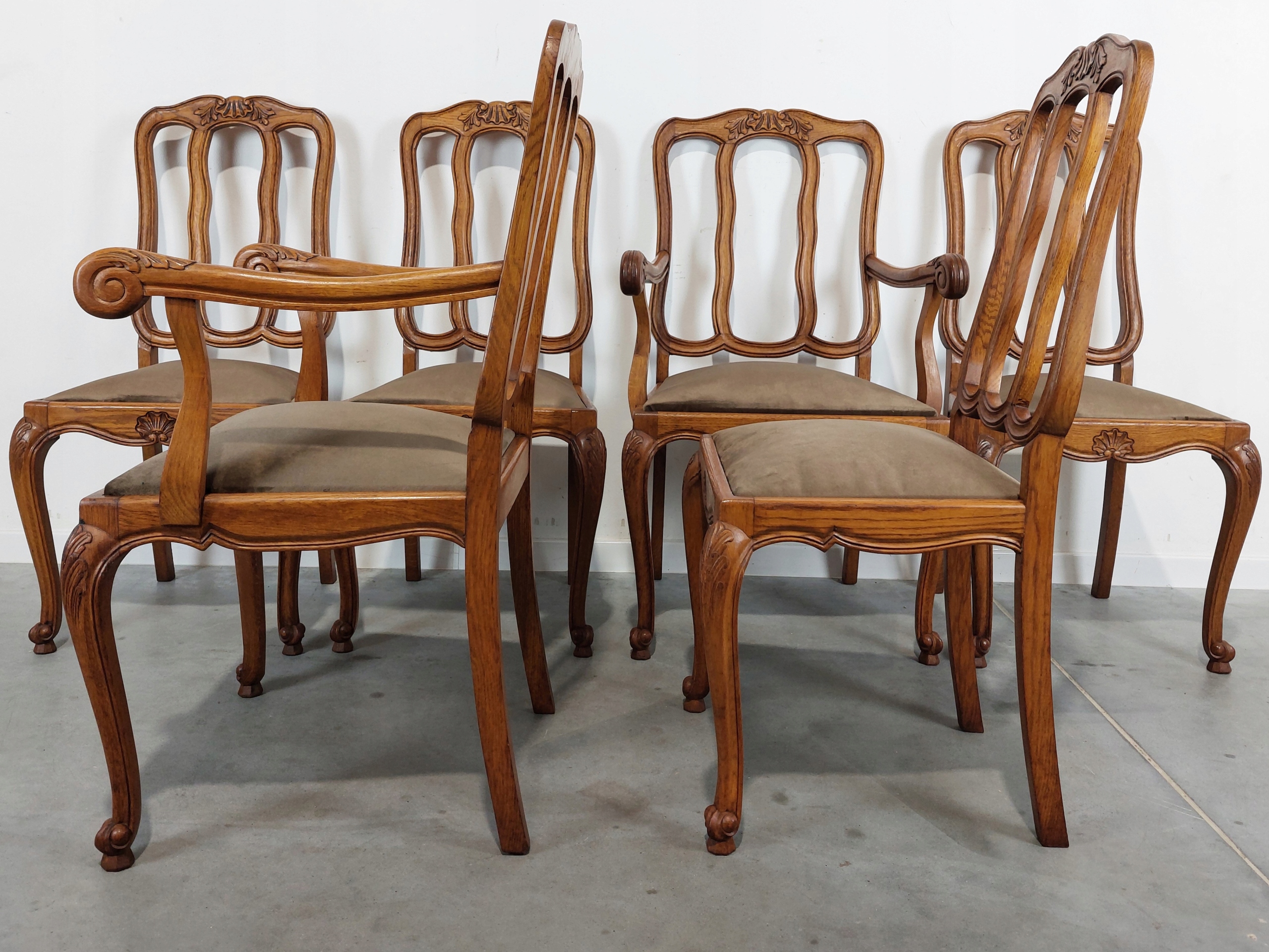 Стильный складной стол Ludwikowski с 4 стульями плюс 2 кресла. Мебель, сделанная из Динбины, сделана во Франции. Текущие коммерческие знаки, то есть царапины или обесцвечивание. Стабильные кресла сиденья на пружинах, покрытые новым мягким велюром в молочном шоколаде. Таблица распространяется эффективно, вставки, охватываемые под столешницей. Цена на набор стола и 6 стульев. Подробная информация, показанные на изображениях ниже