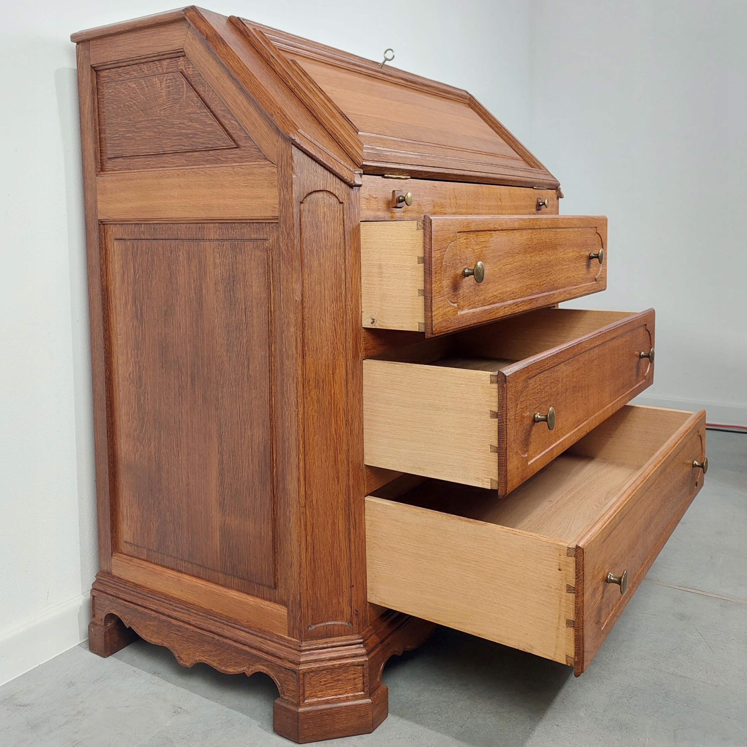 СТИЛЬНЫЙ ДУБОВЫЙ СТОЛ СЕКРЕТАРЯ МАССИВ ДУБА УНИКАЛЬНЫЙ ВИНТАЖНЫЙ МАССИВНЫЙ СЕКРЕТАРЬ