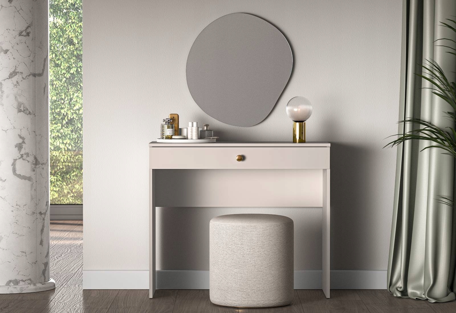 Стильный туалетный столик SELGIN 09 с ящиком, ручки золотые.