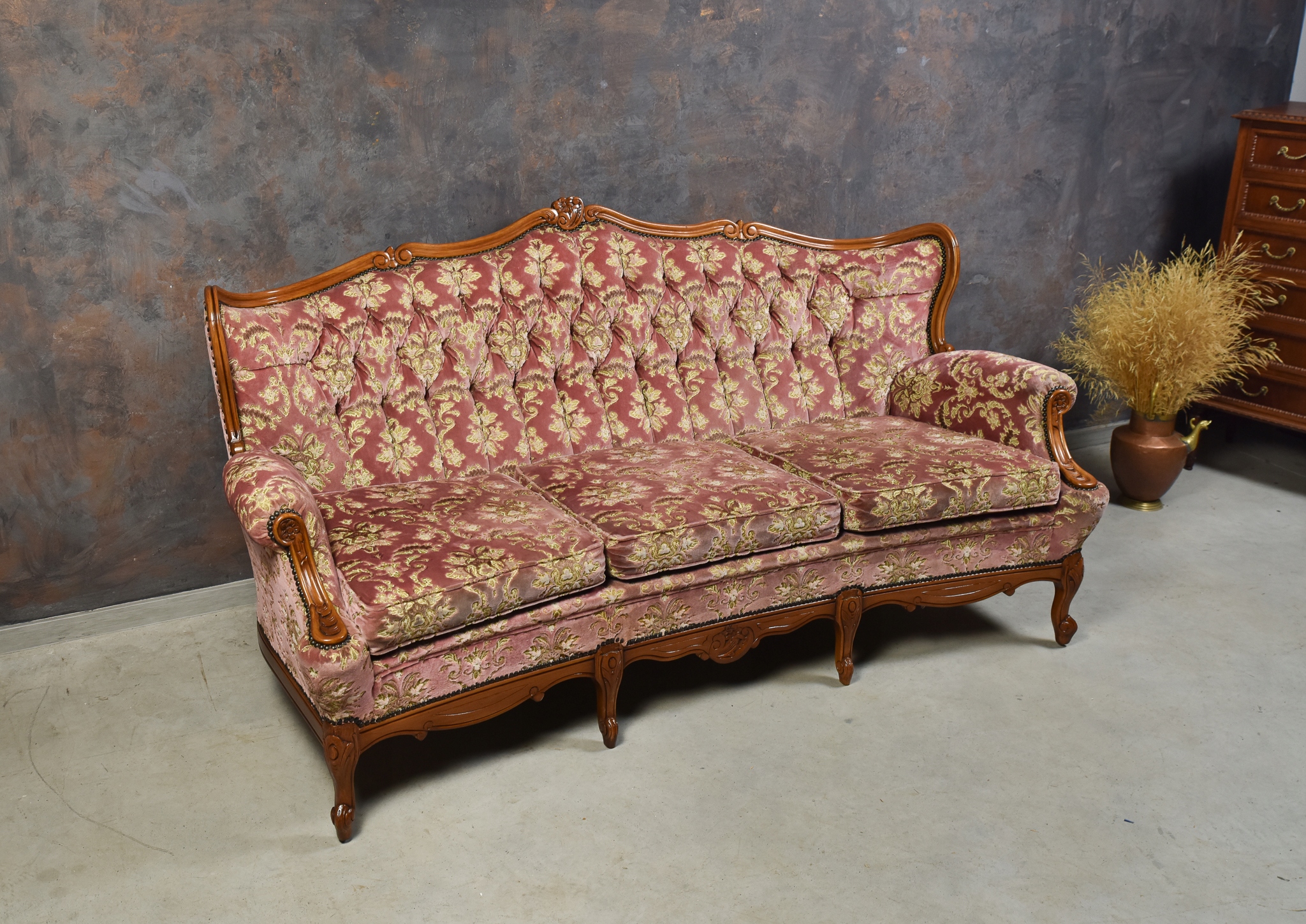 СТИЛЬНИЙ ВЕЛЮРОВИЙ ДИВАН, ОББИВКА В КВІТКИ, КОНСТРУКЦІЯ З МАСІВНОГО ГОРІХУ