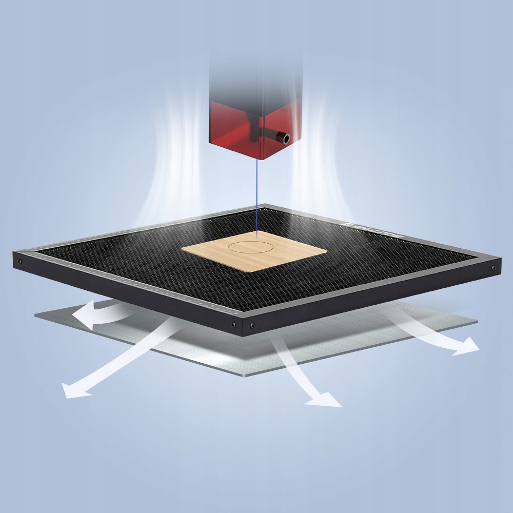Стол имеет продуманную конструкцию «разрезай и смотри». Когда лазер прорезает дерево или акрил, металлическая пластина у основания сот излучает ясный свет, сигнализируя, что материал полностью разрезан. Эта функция помогает определить, полностью ли проколот материал, что делает стол идеальным инструментом для точной резки и гравировки.