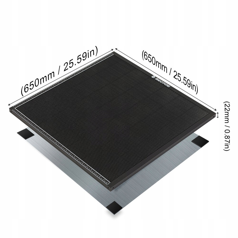Размеры сотового рабочего стола H66 составляют 650x650 мм, что обеспечивает достаточно места для гравировки более крупных изделий или одновременной обработки нескольких более мелких деталей.